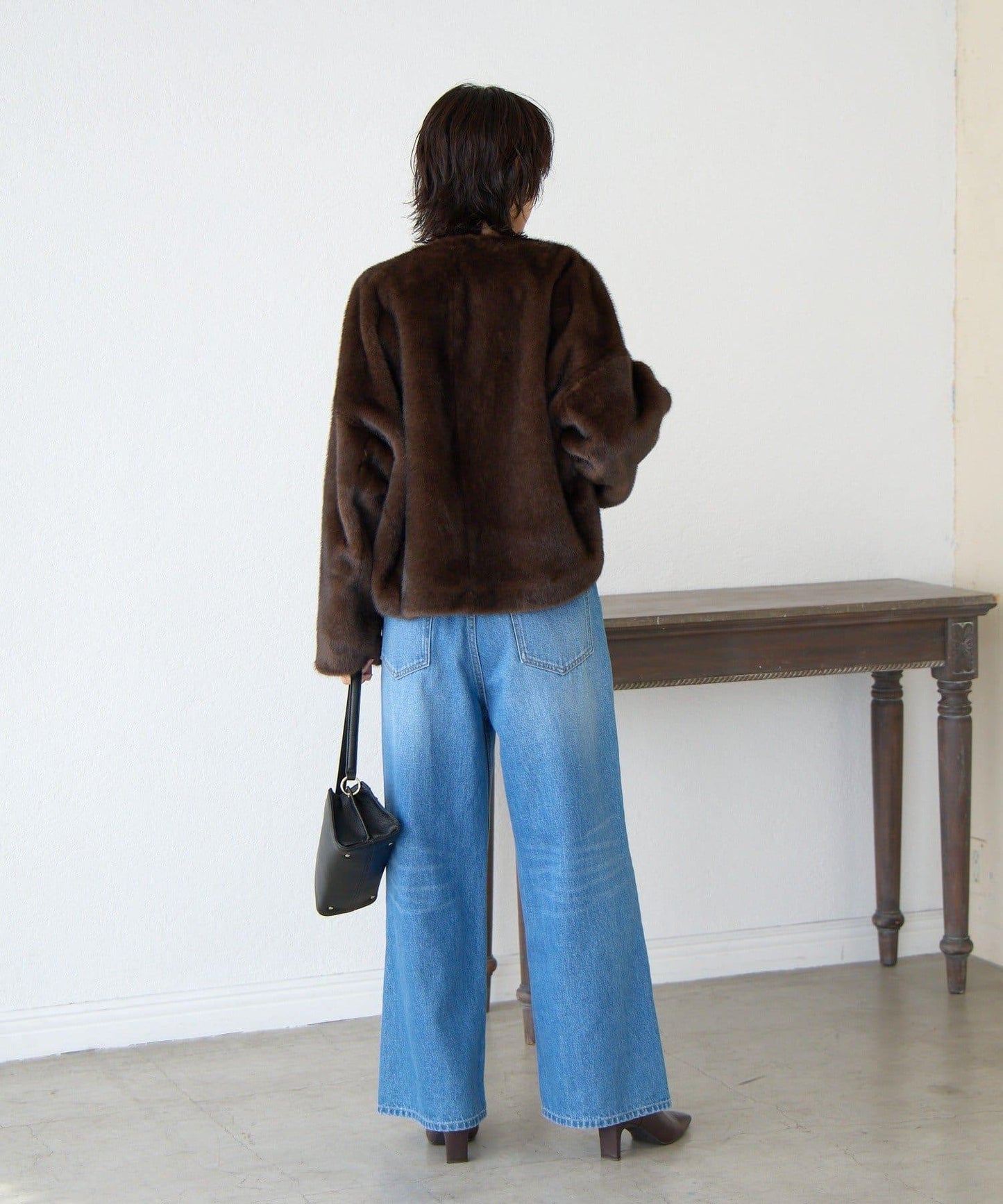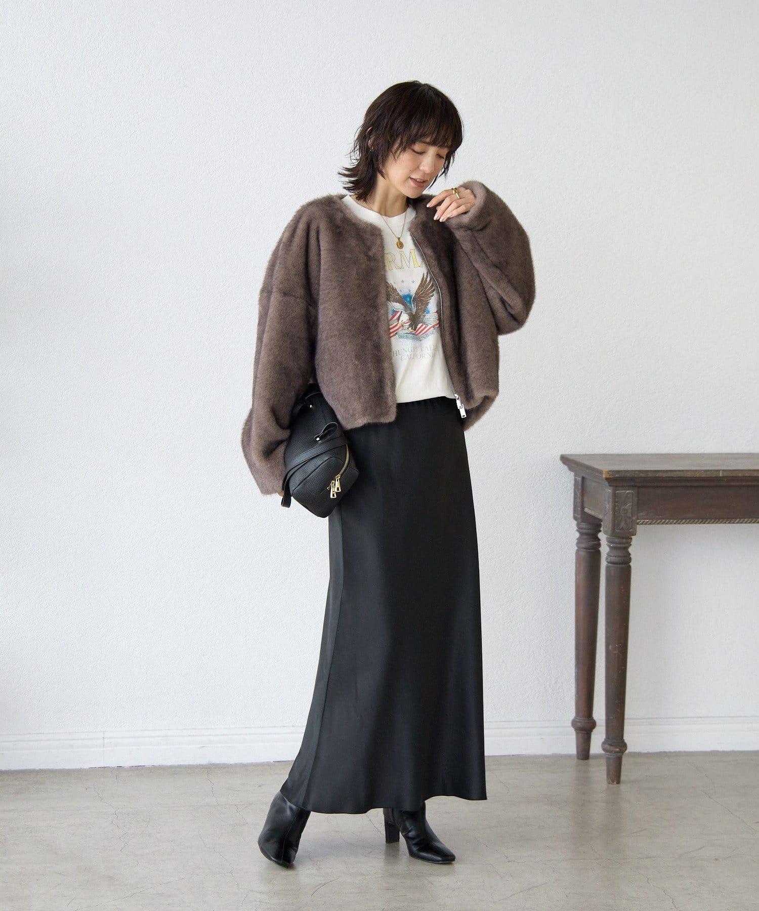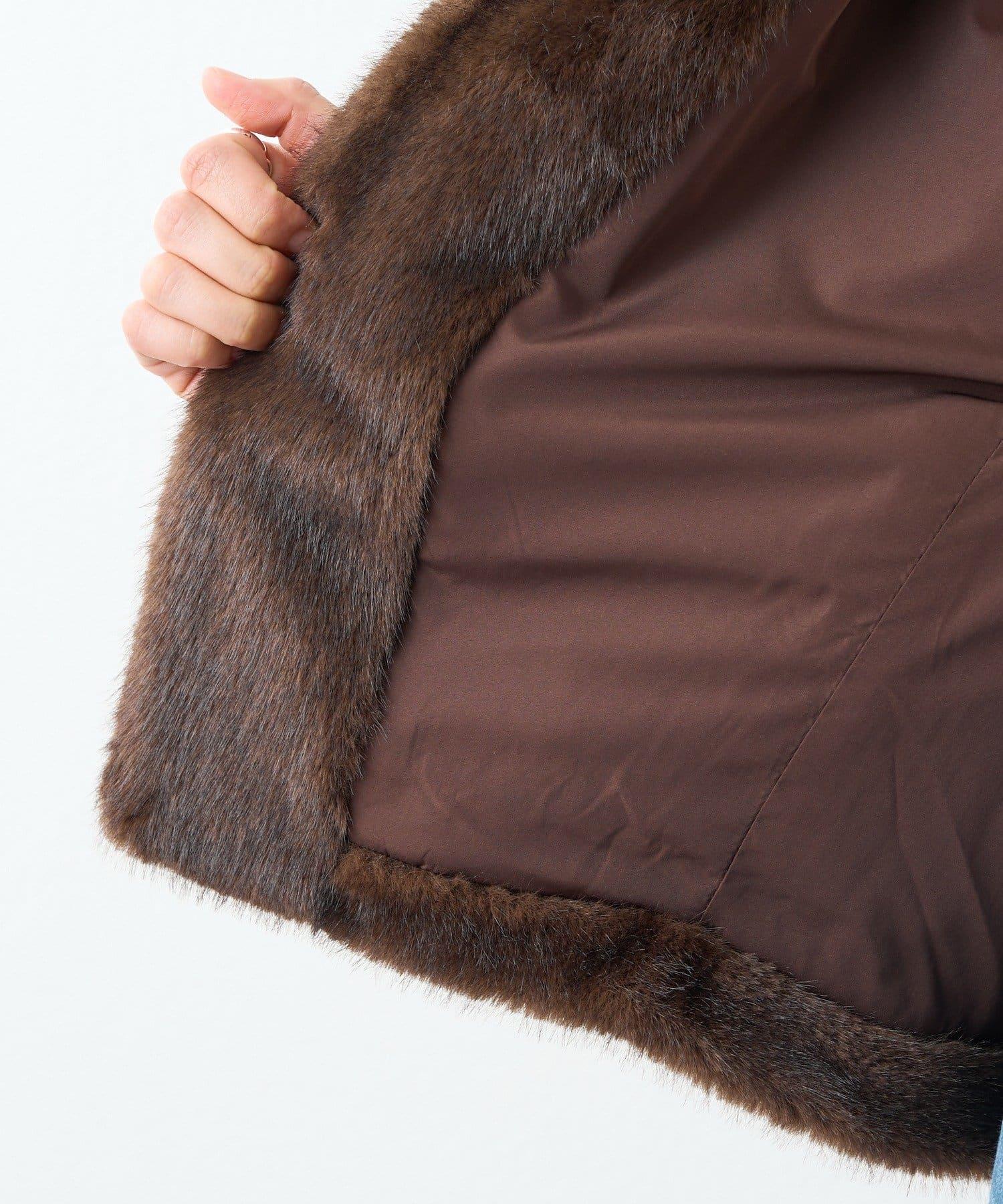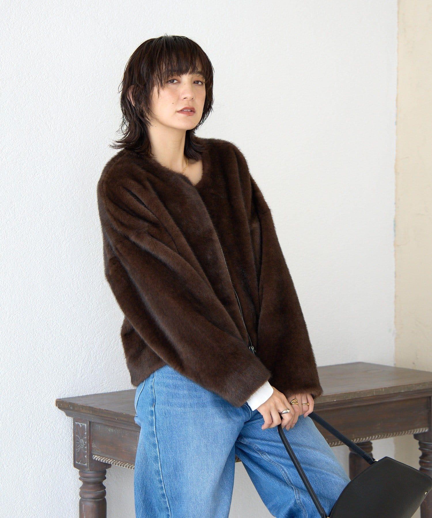 此款皮草採用仿貂皮製成,散發著優雅的光澤,只需穿上它,就能烘托出秋冬的氣氛。