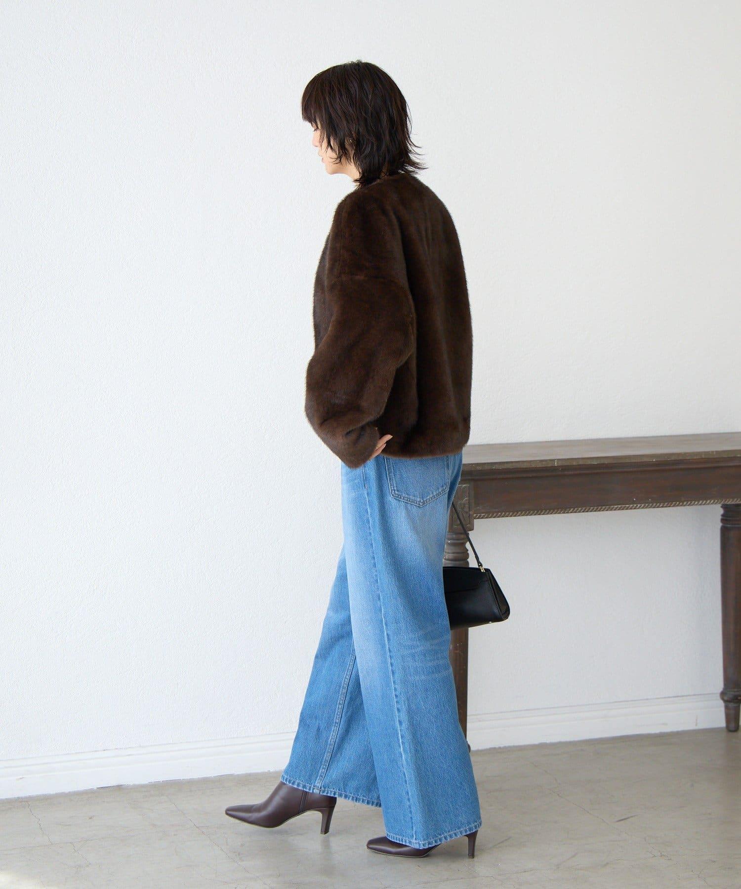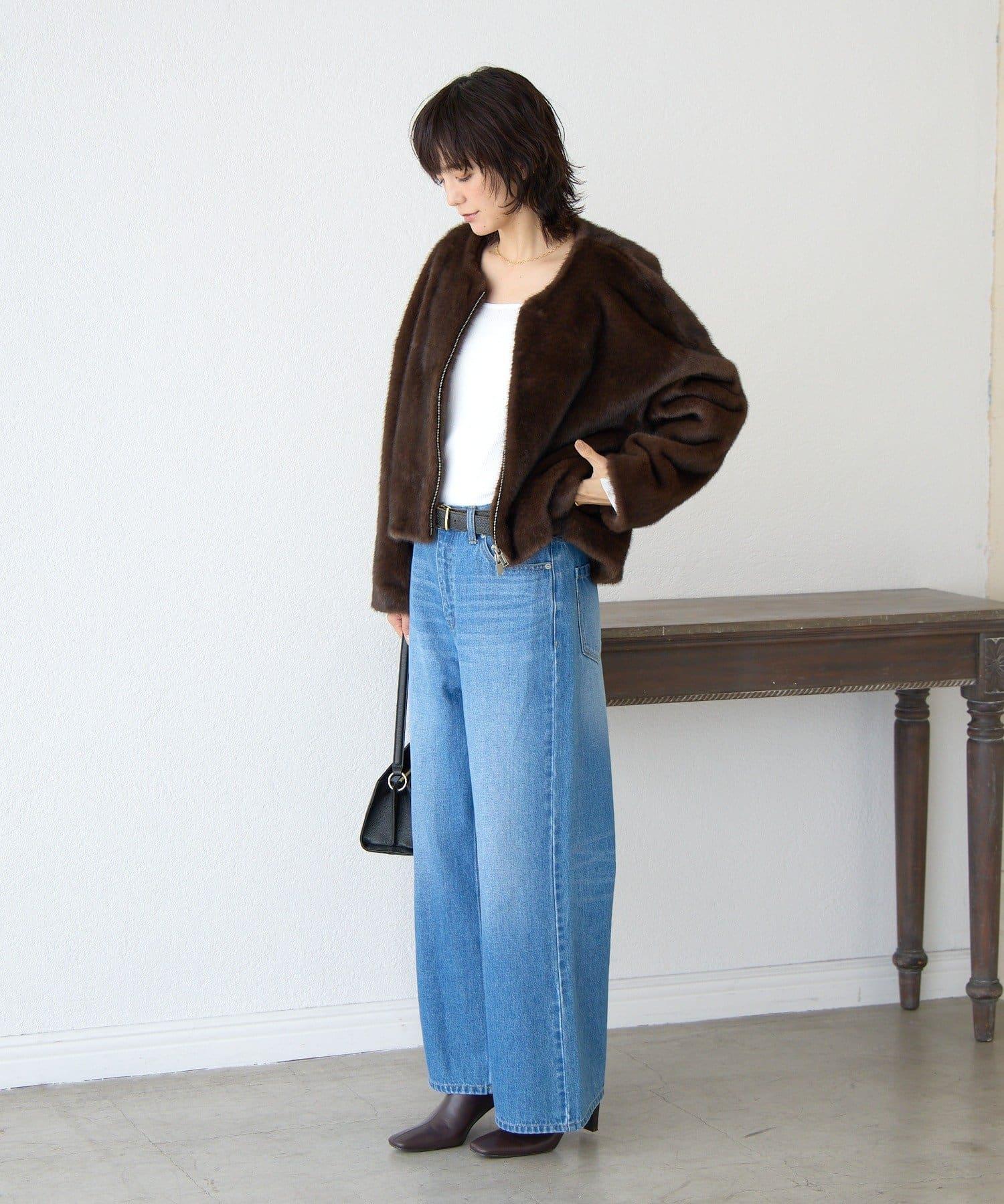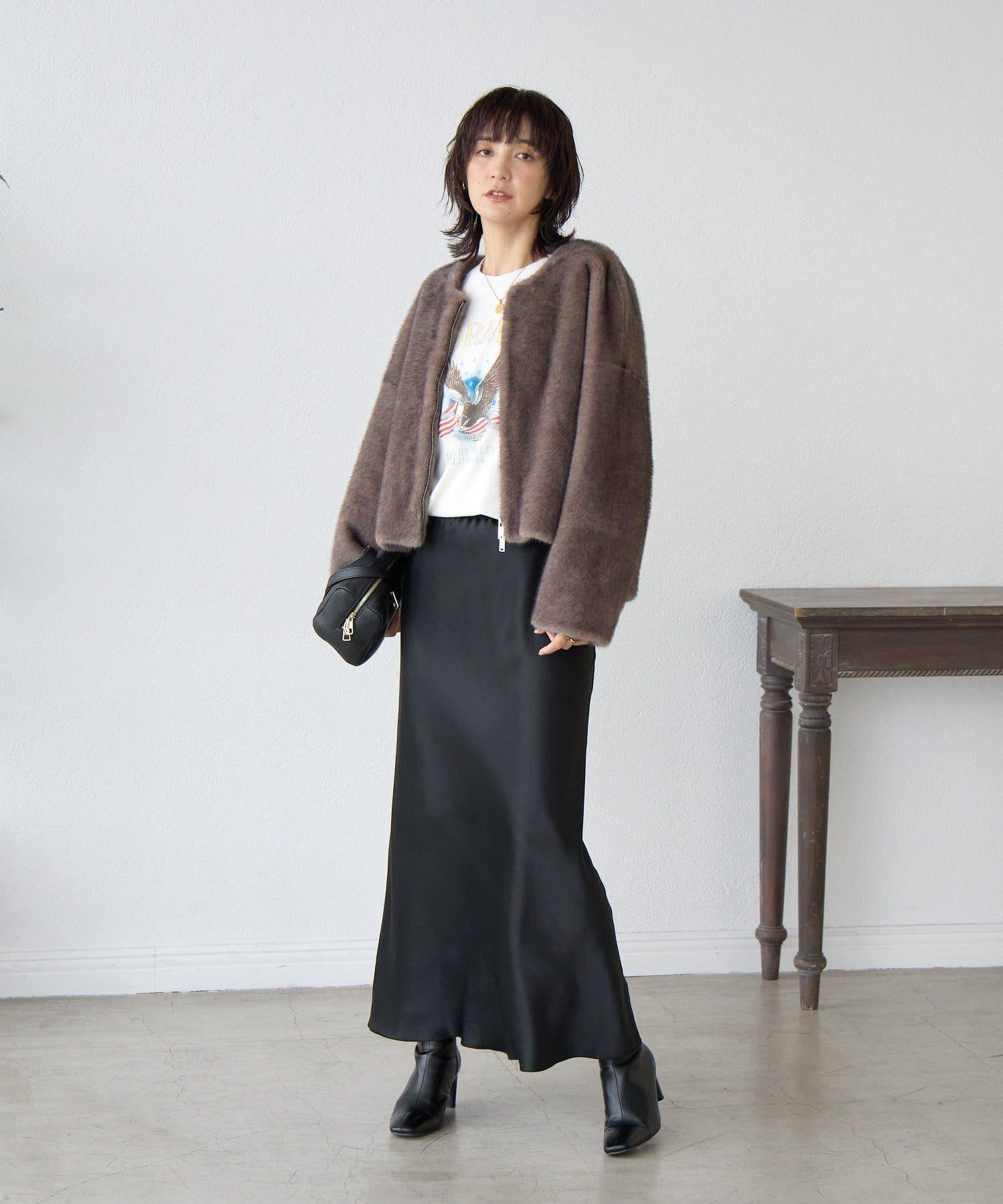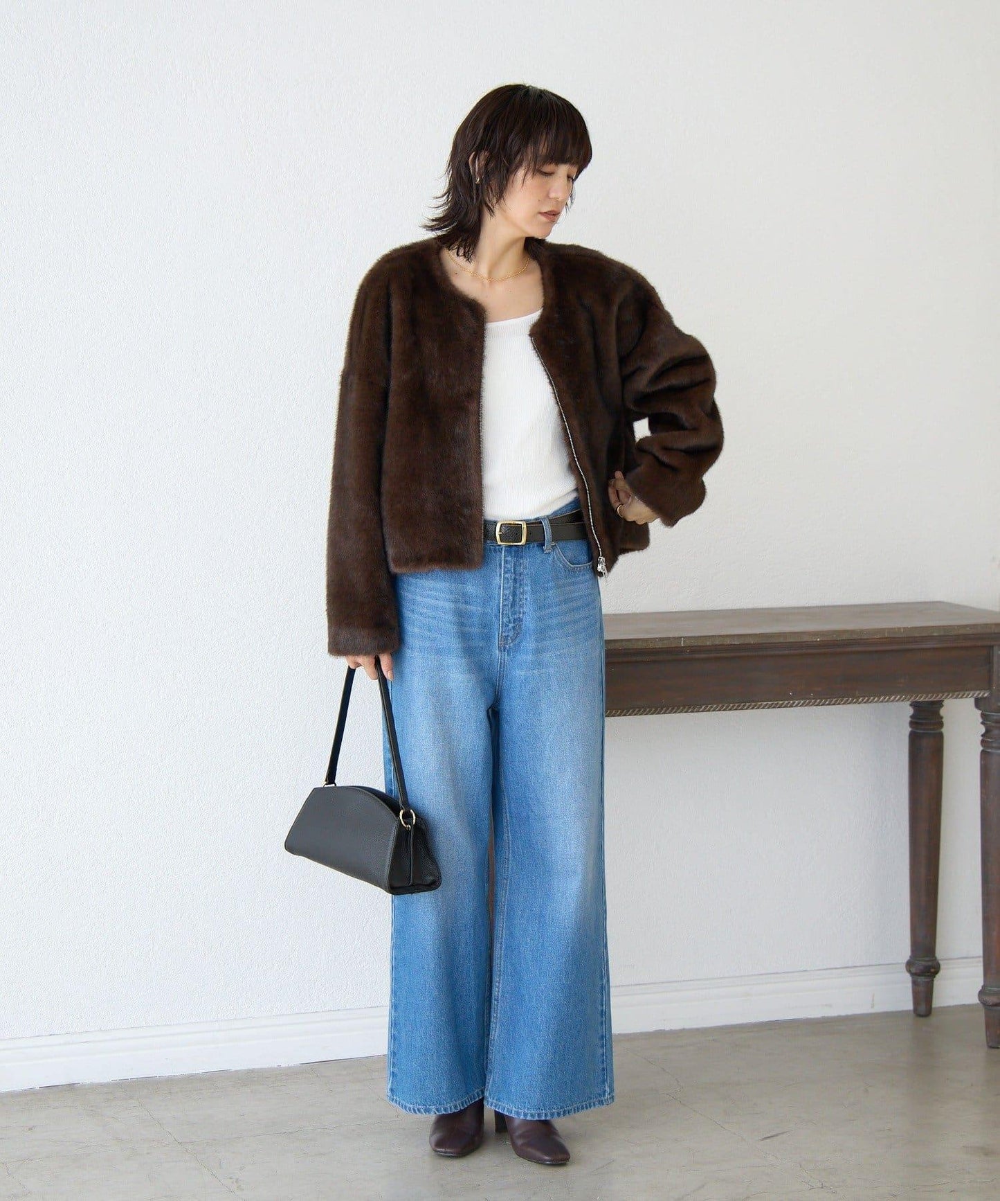 此款皮草採用仿貂皮製成,散發著優雅的光澤,只需穿上它,就能烘托出秋冬的氣氛。
