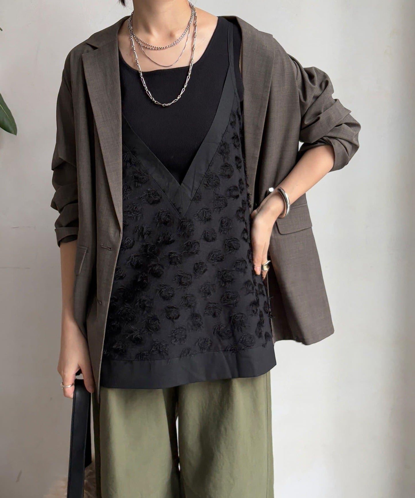 立體編織圖案的提花面料,只需穿上它,就能提升你的座標。