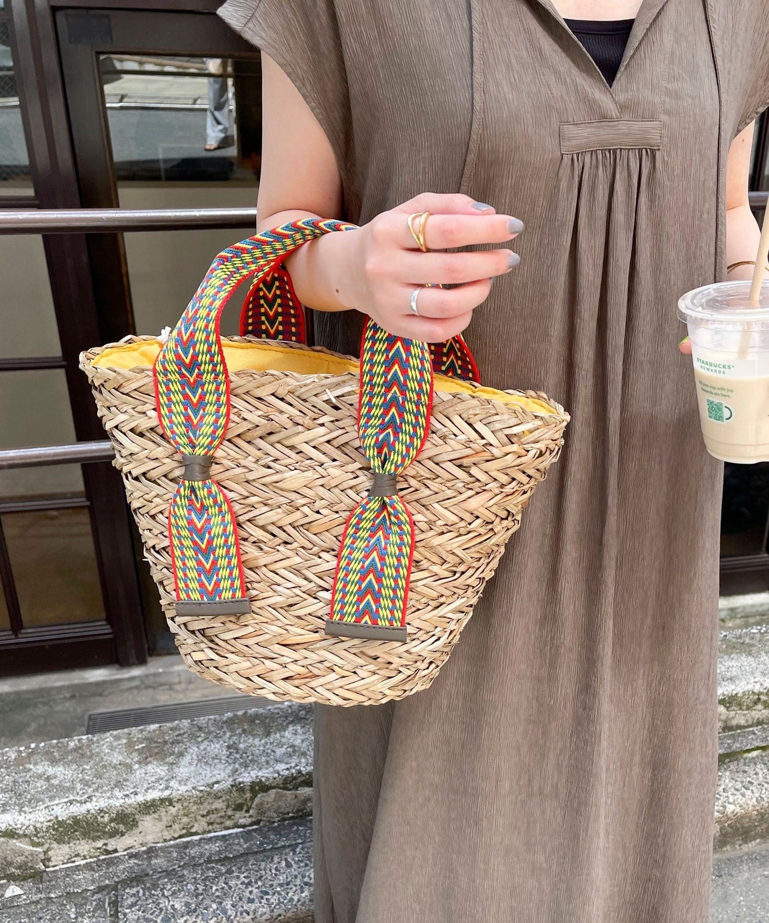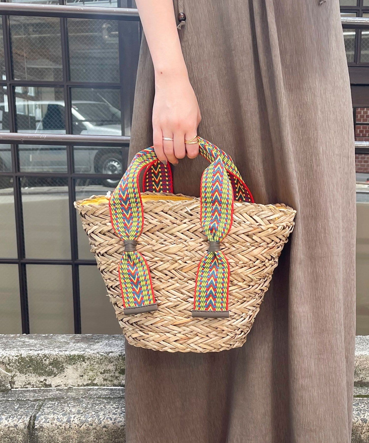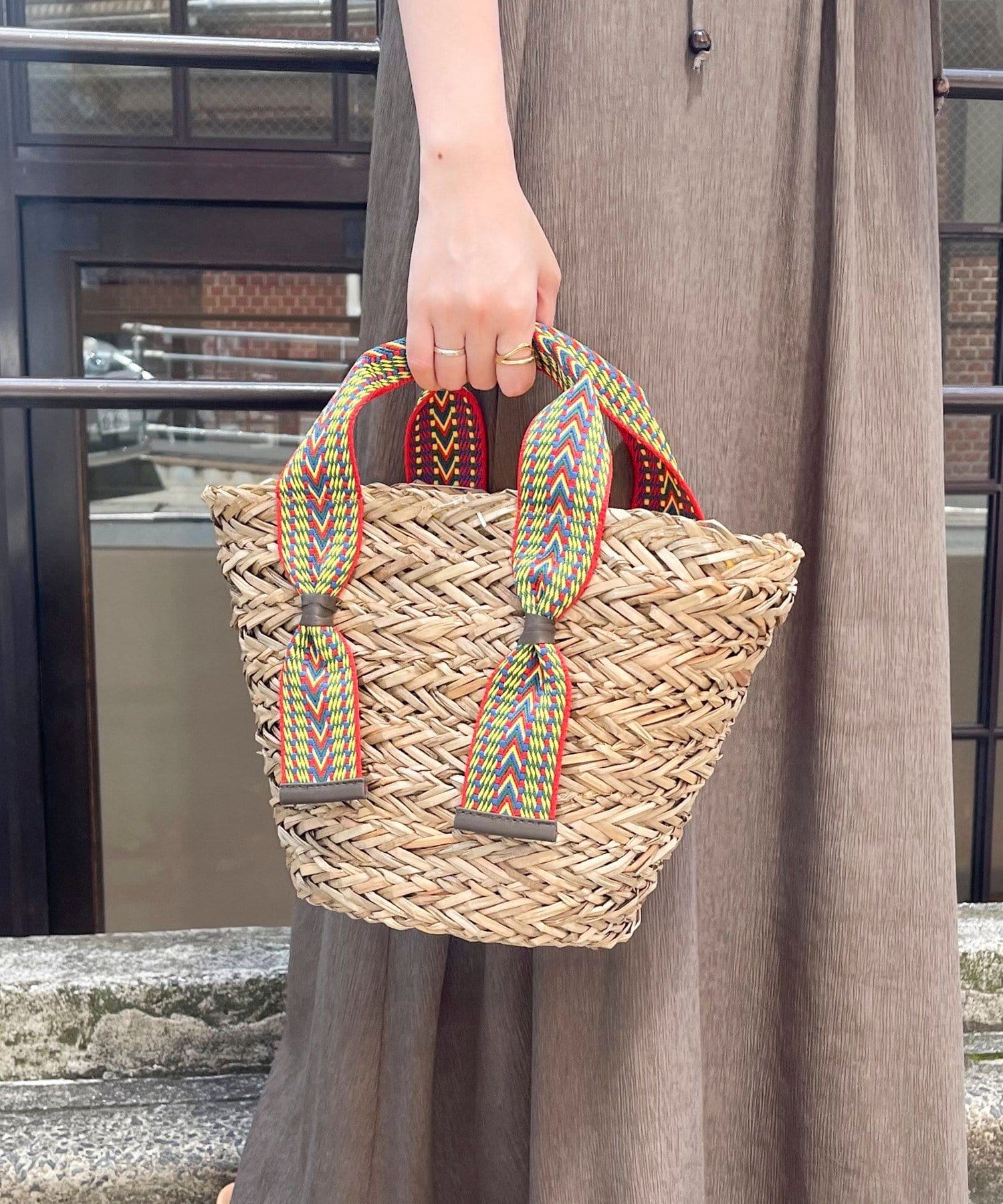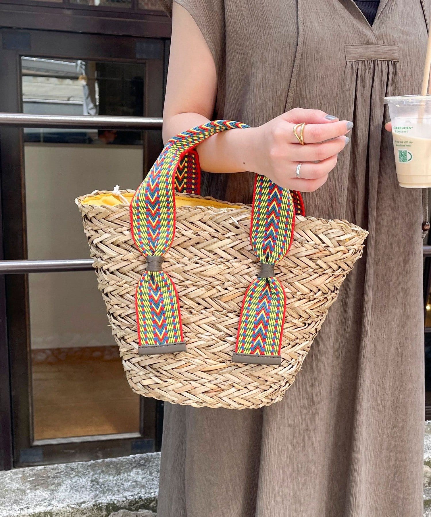 鮮豔的提花帶和籃子包的材質讓它看起來更有春夏季節的氣息。