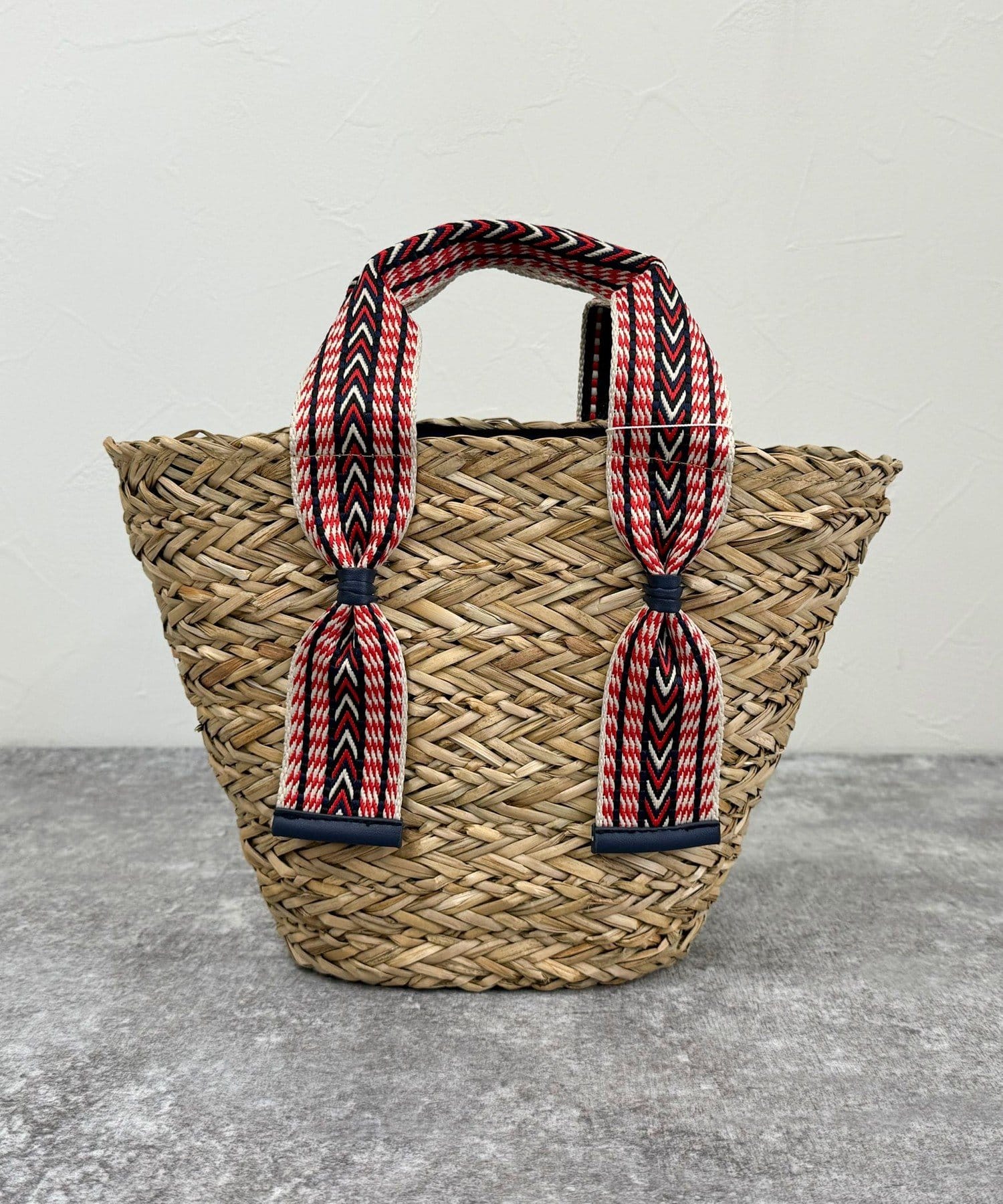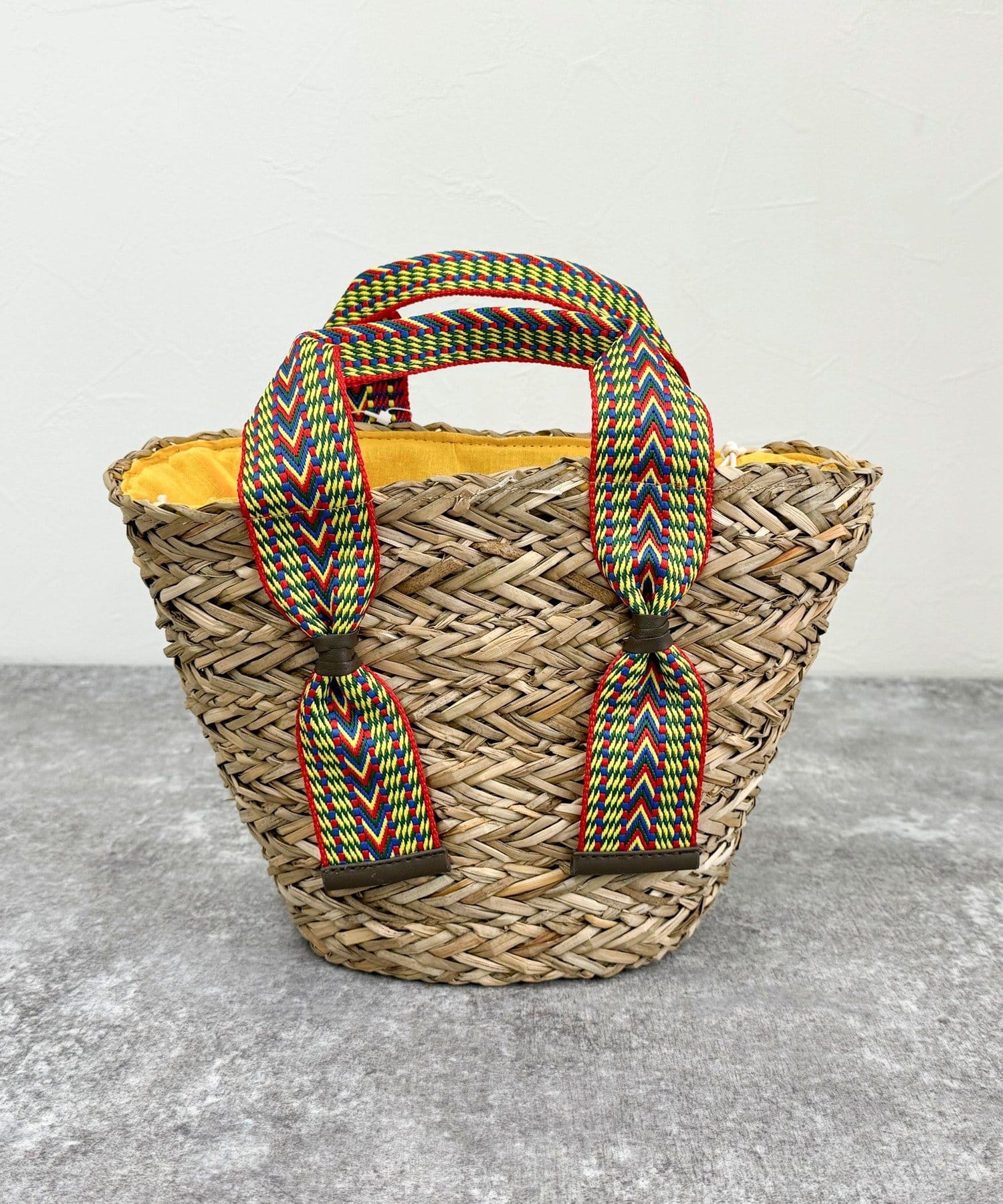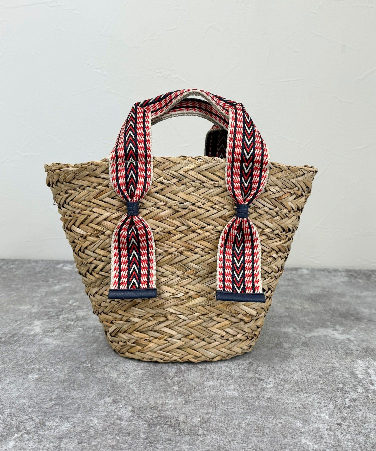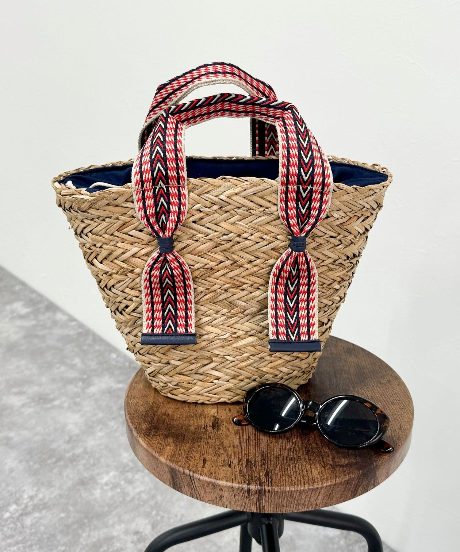 鮮豔的提花帶和籃子包的材質讓它看起來更有春夏季節的氣息。