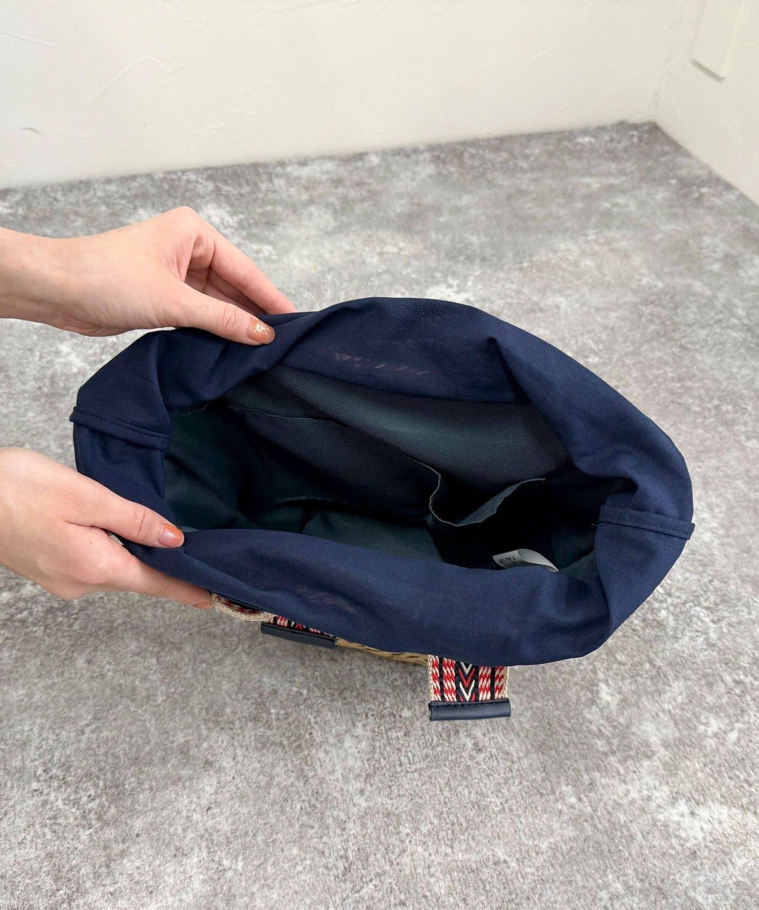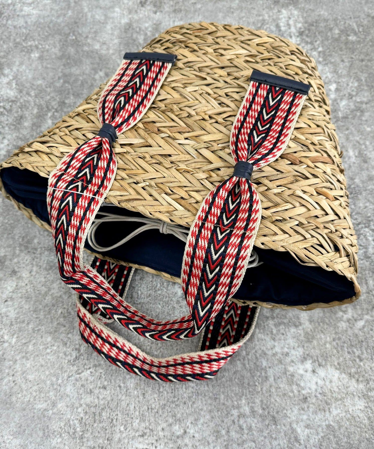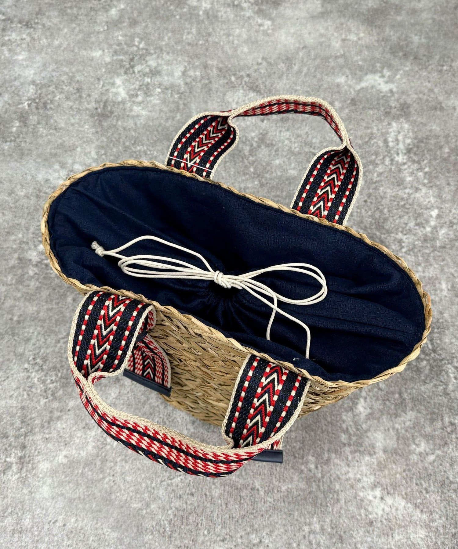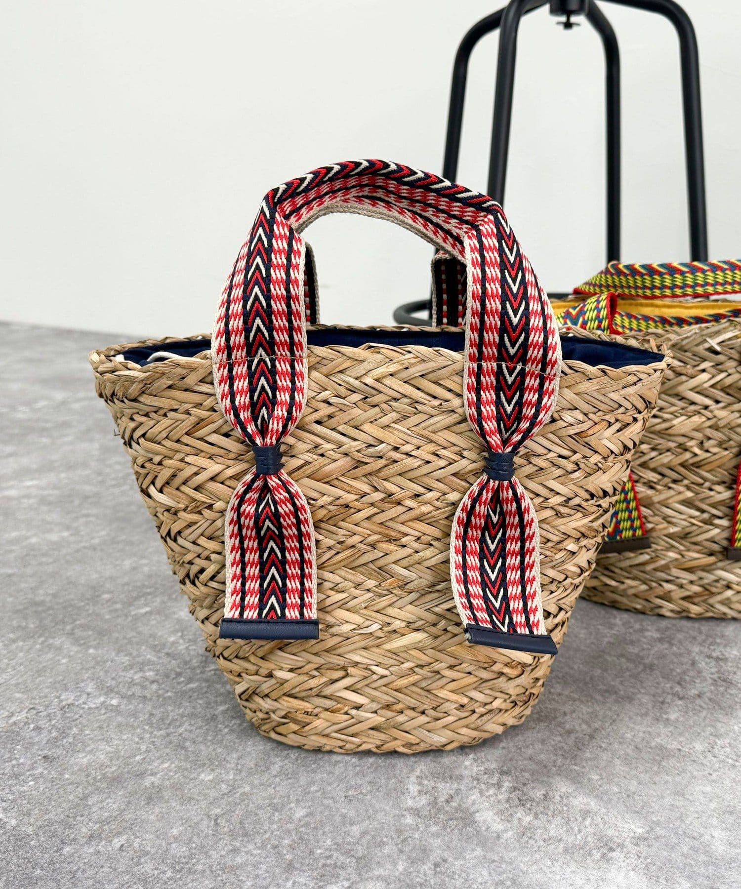 鮮豔的提花帶和籃子包的材質讓它看起來更有春夏季節的氣息。