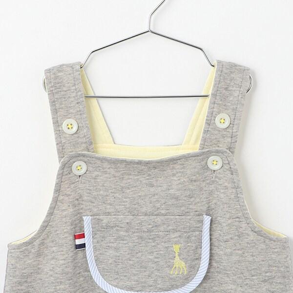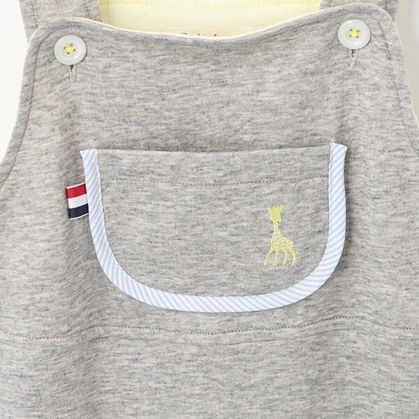 胸前口袋設計有長頸鹿蘇菲刺繡和清新的條紋滾邊。
