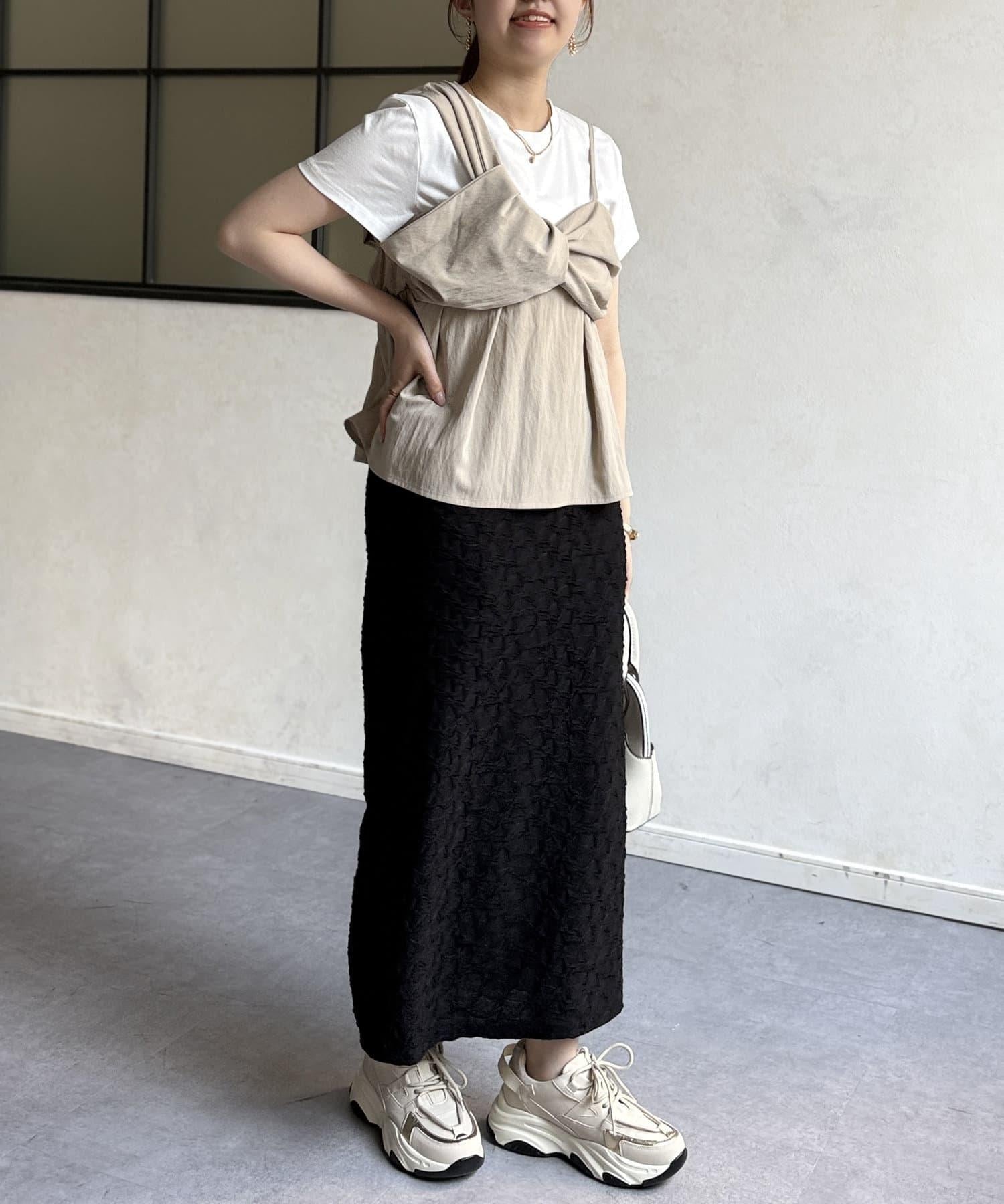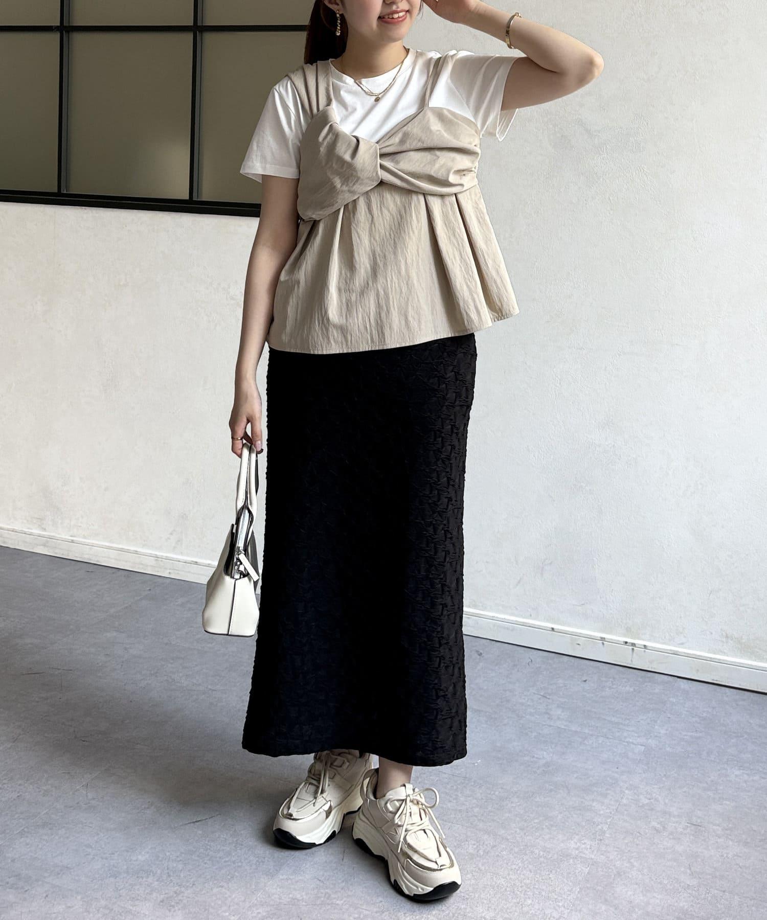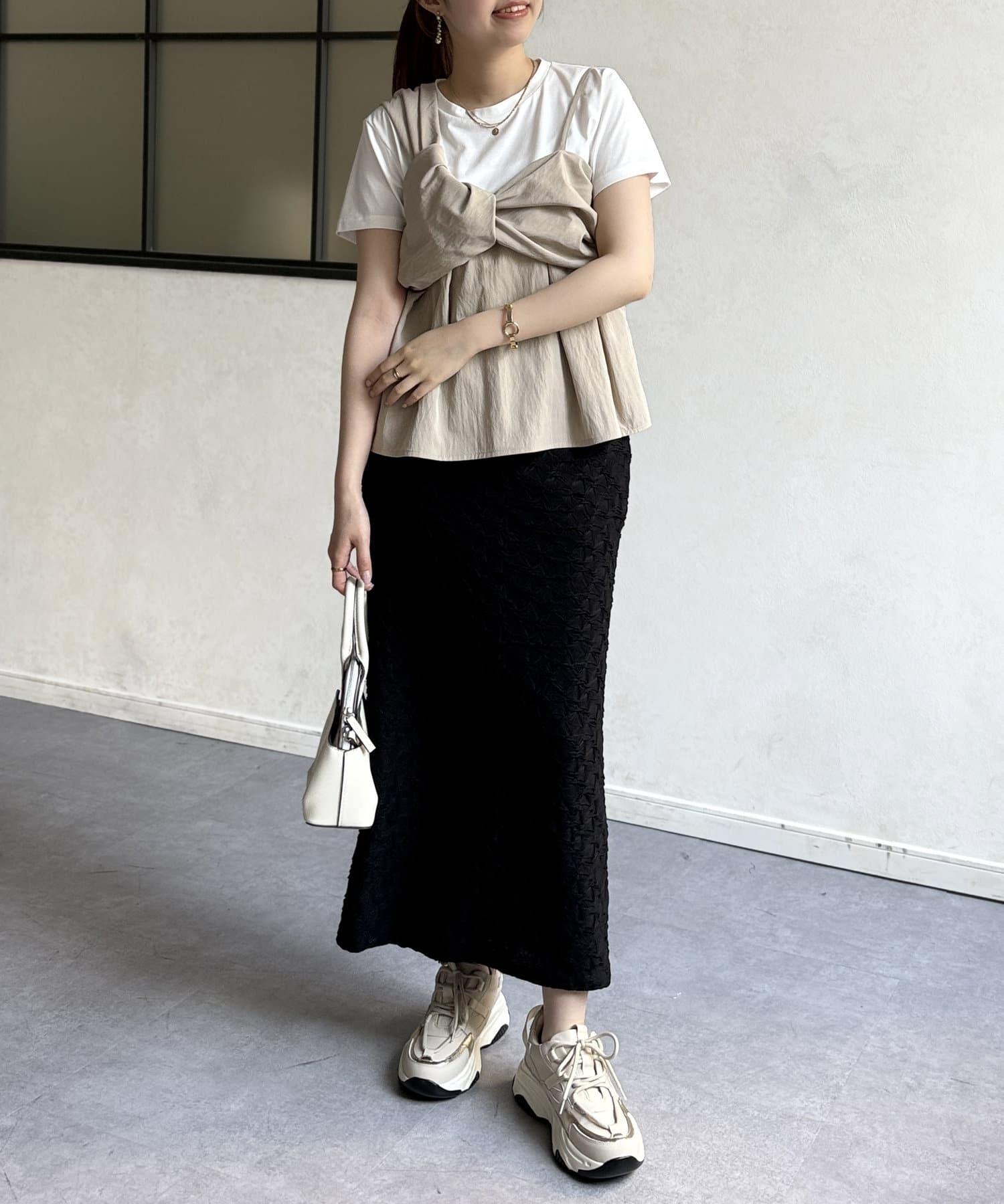 向下擺柔和展開的輪廓給人可愛的成人印象。