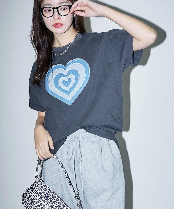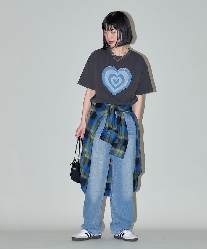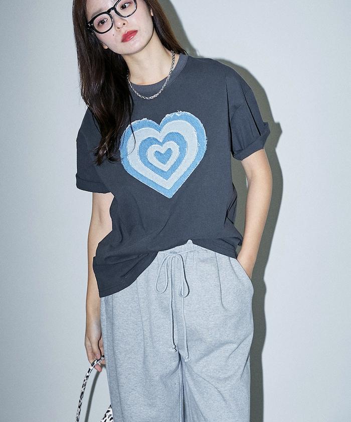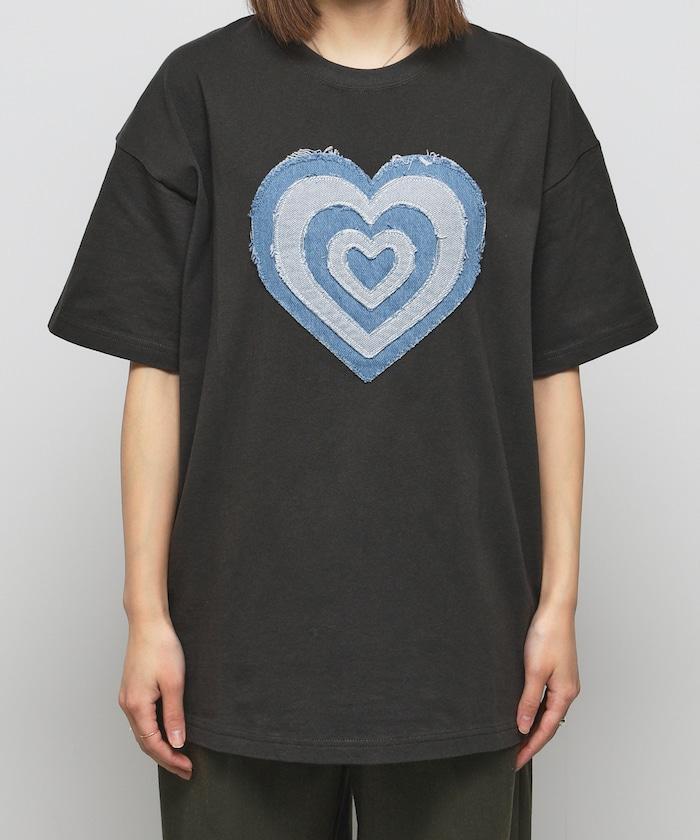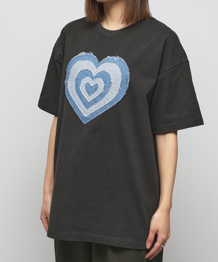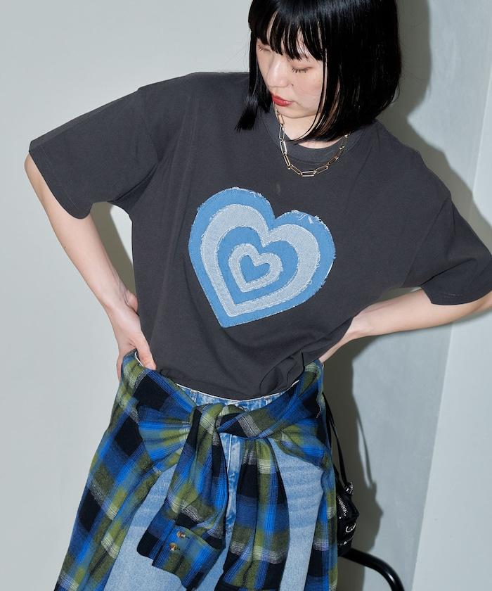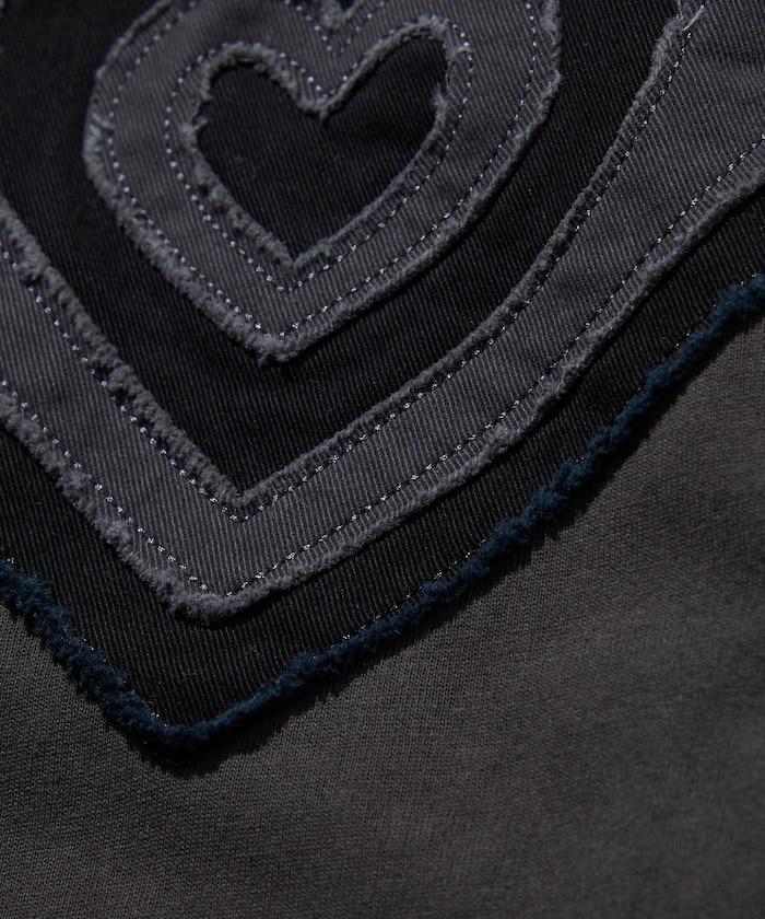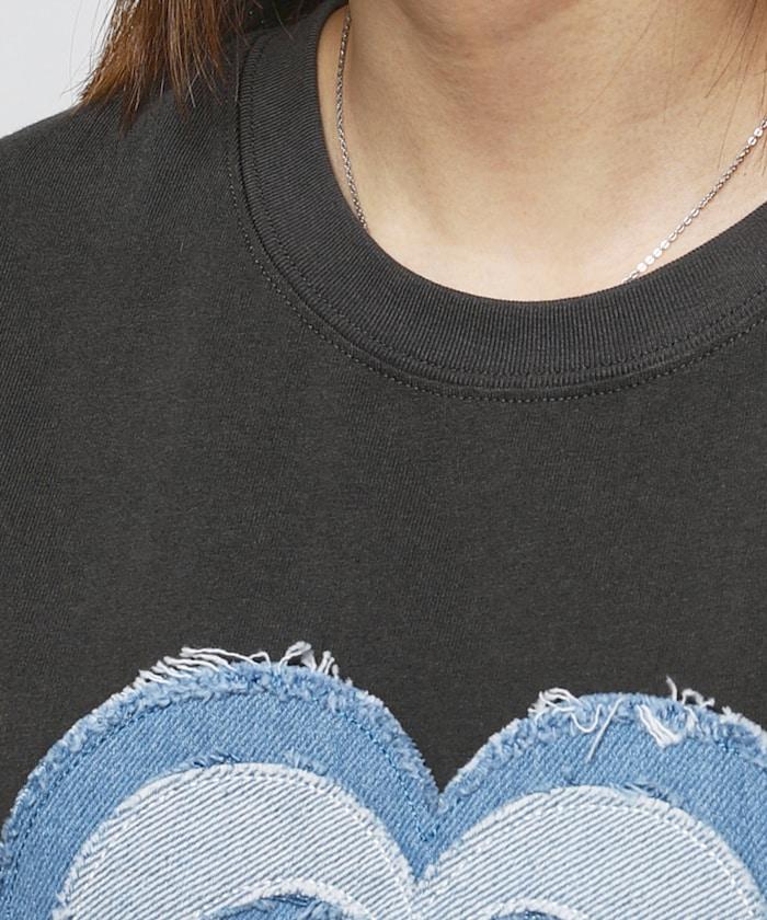 這款 T 恤通過層疊的牛仔面料表現出一顆立體的心。