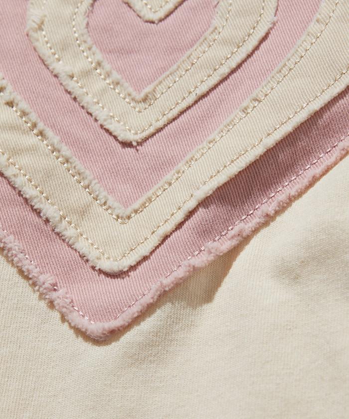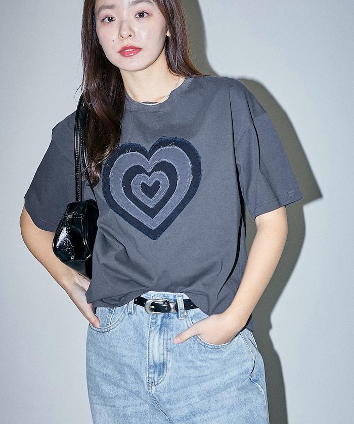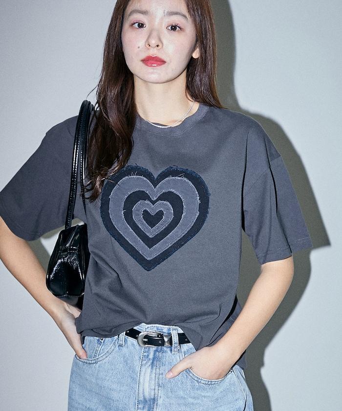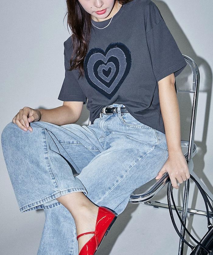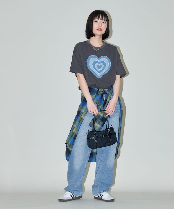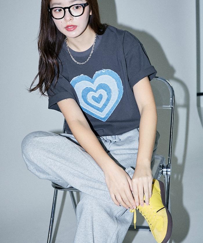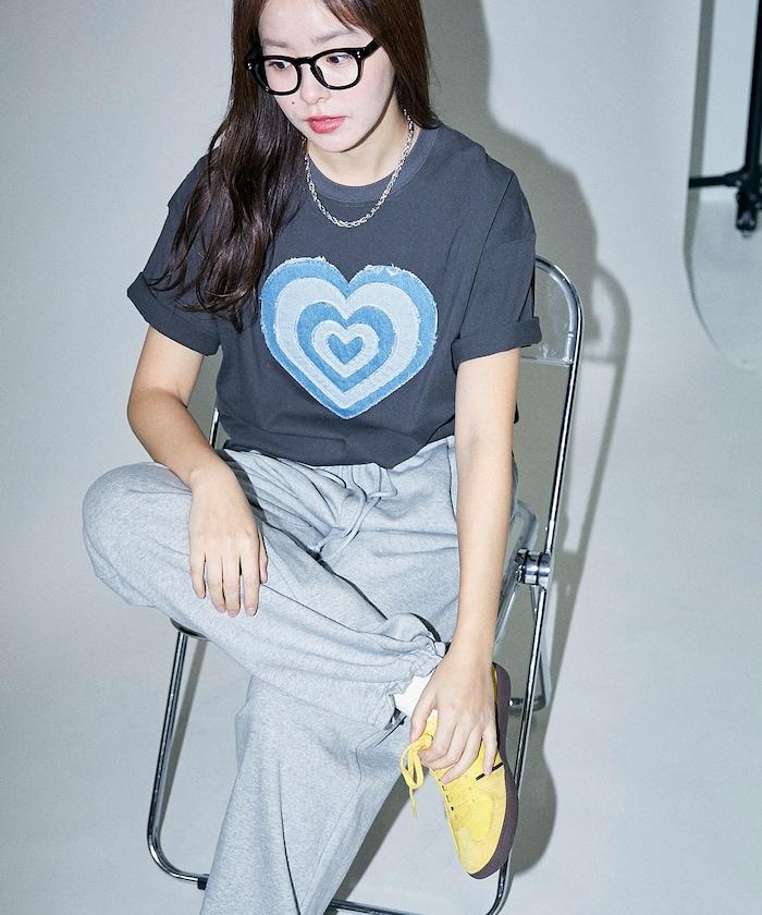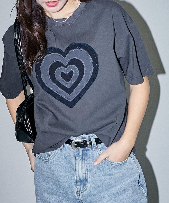 這款 T 恤通過層疊的牛仔面料表現出一顆立體的心。