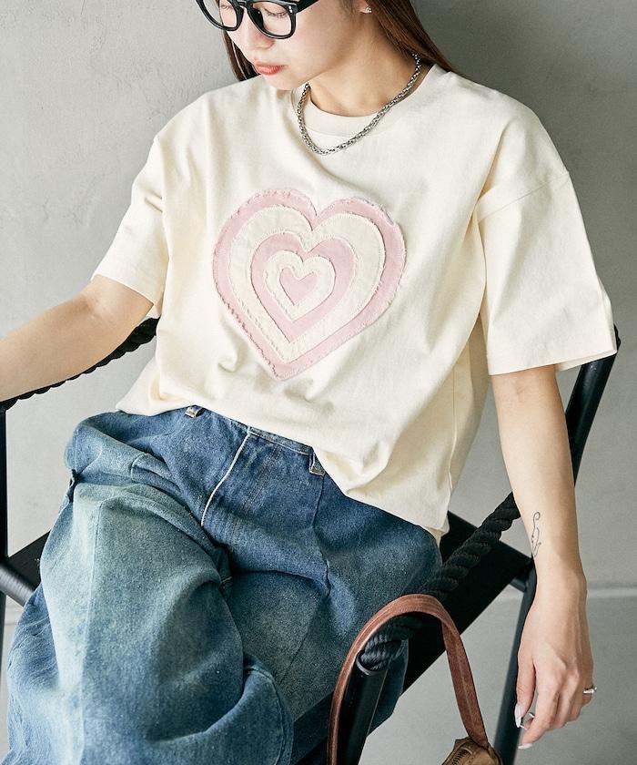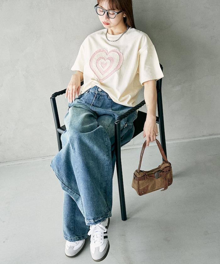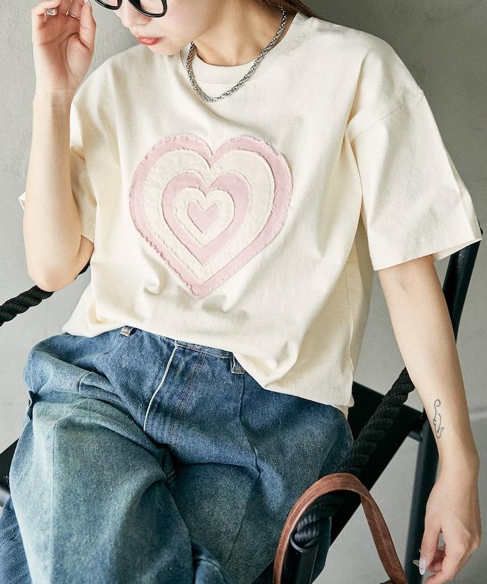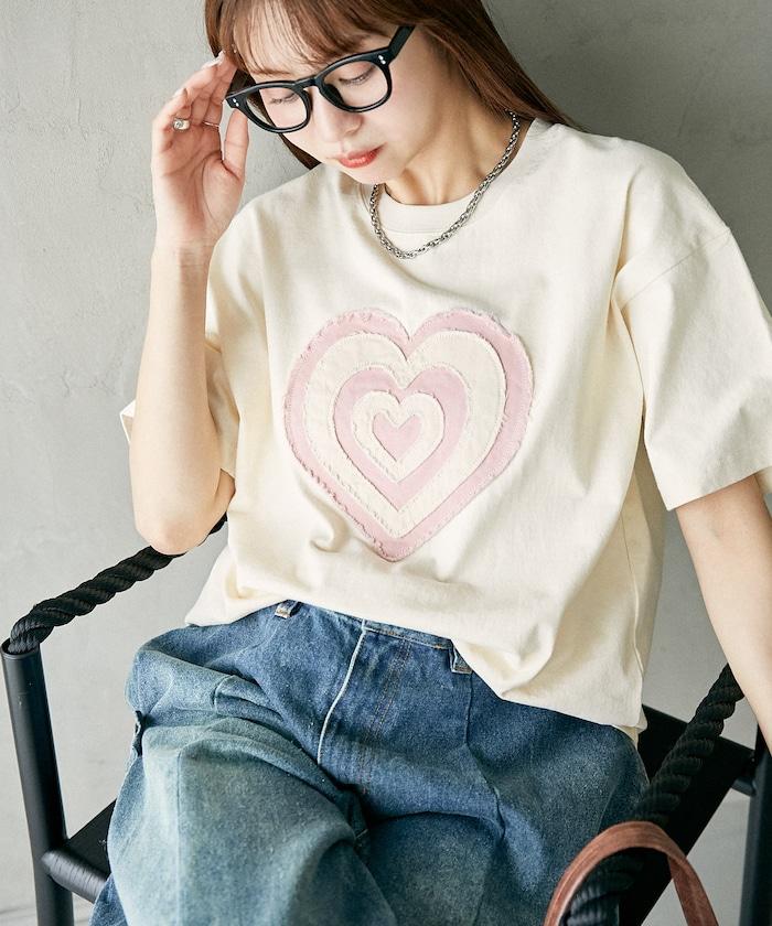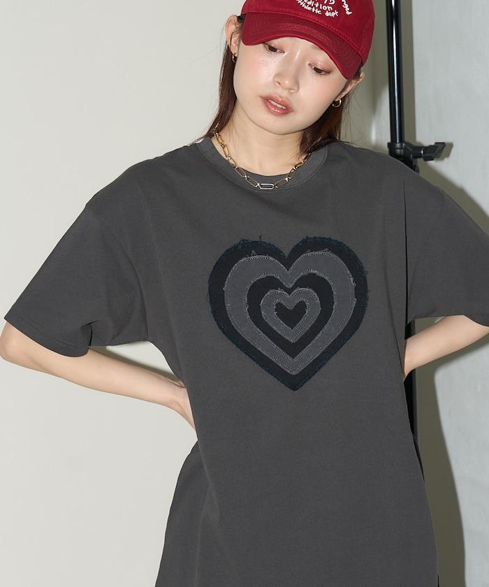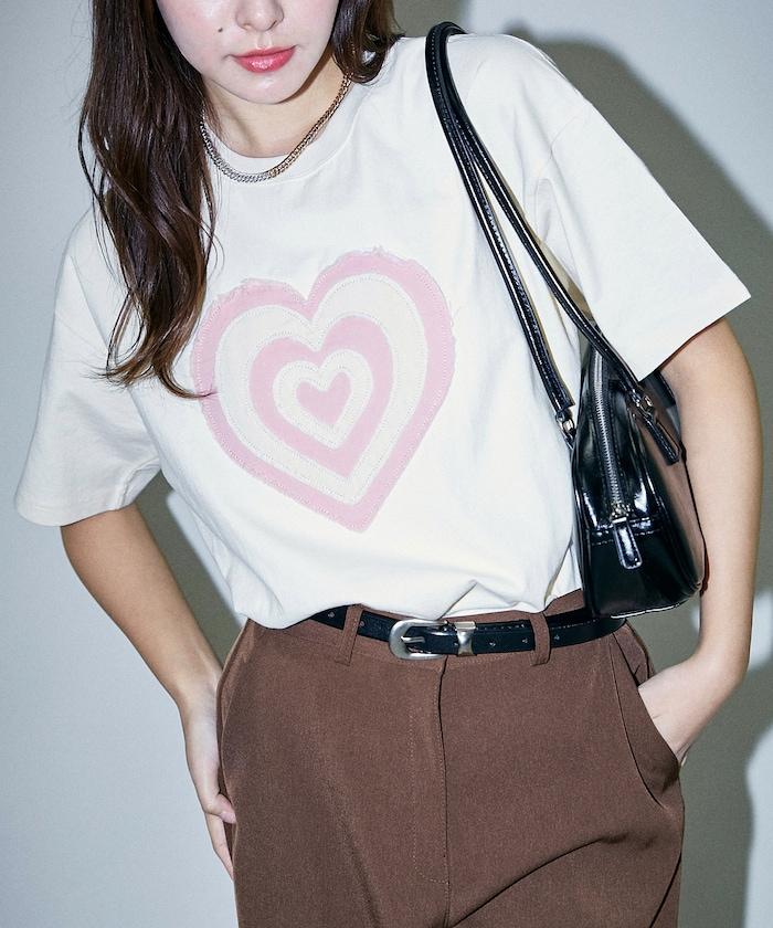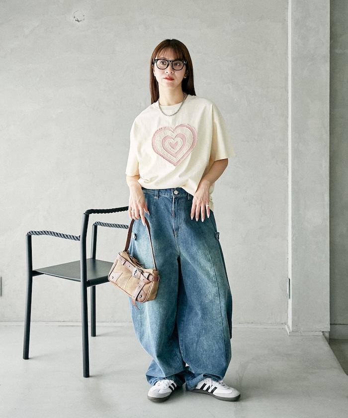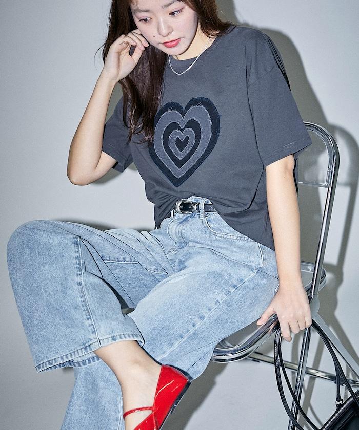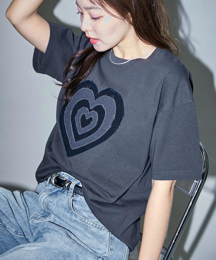 這款 T 恤通過層疊的牛仔面料表現出一顆立體的心。