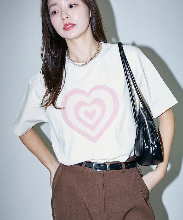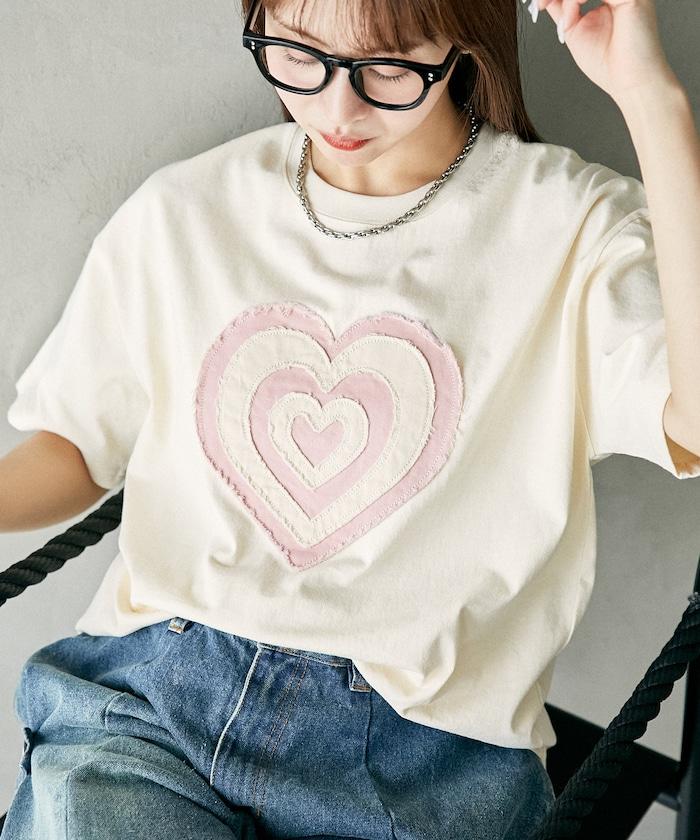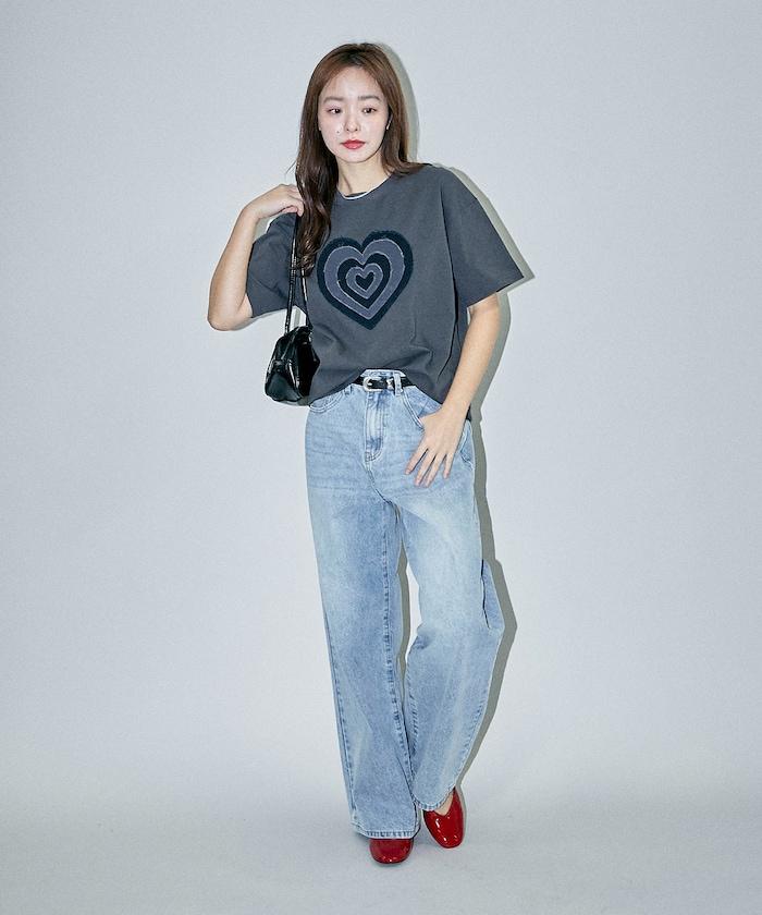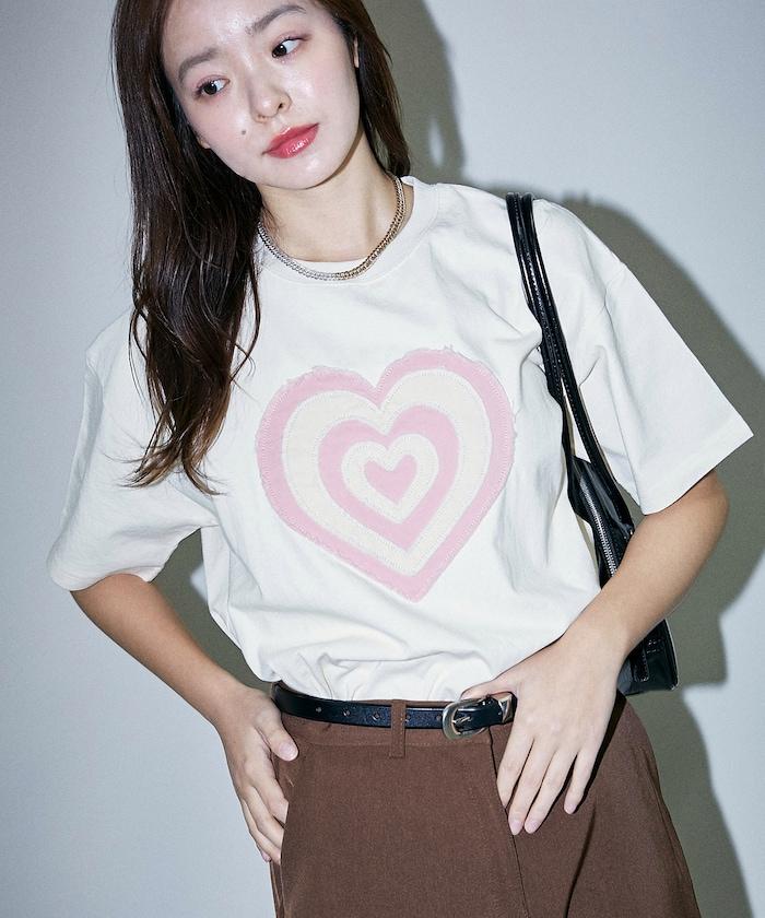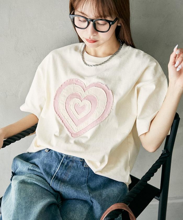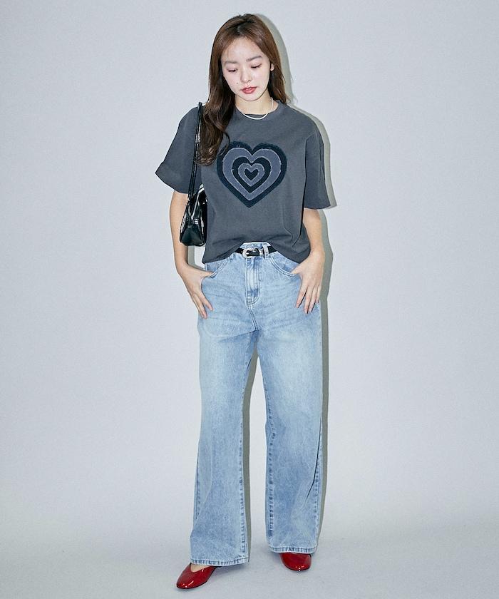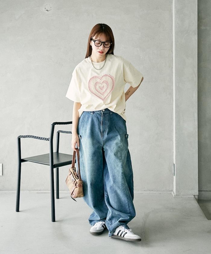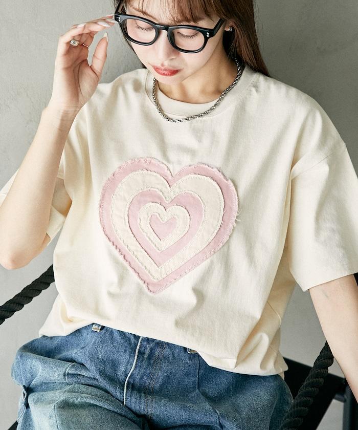 這款 T 恤通過層疊的牛仔面料表現出一顆立體的心。