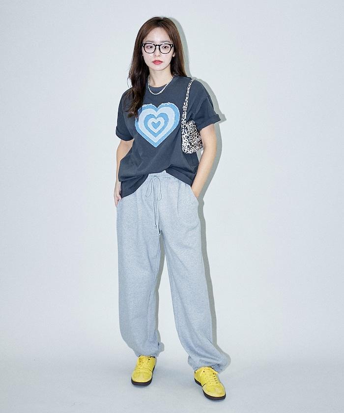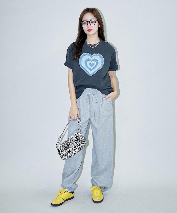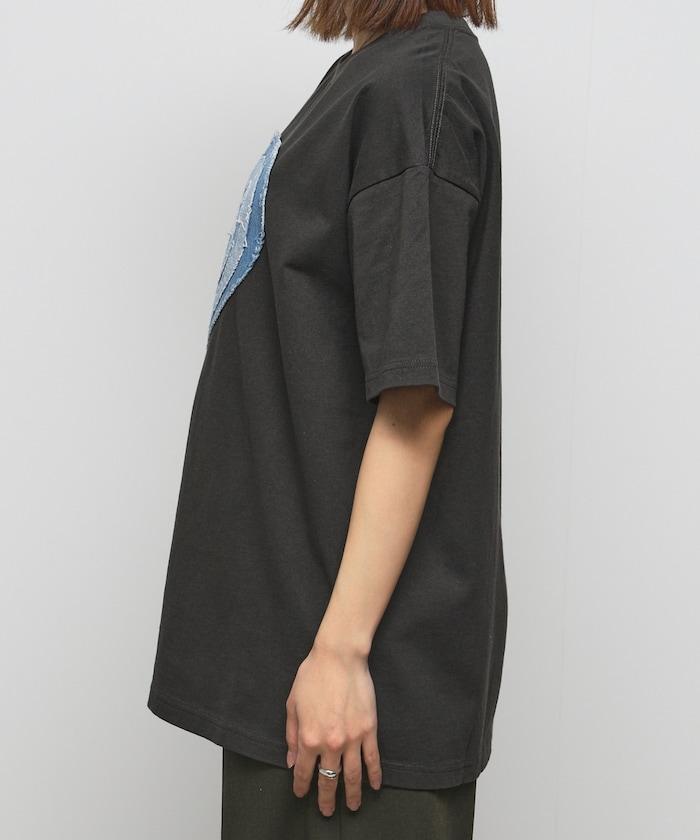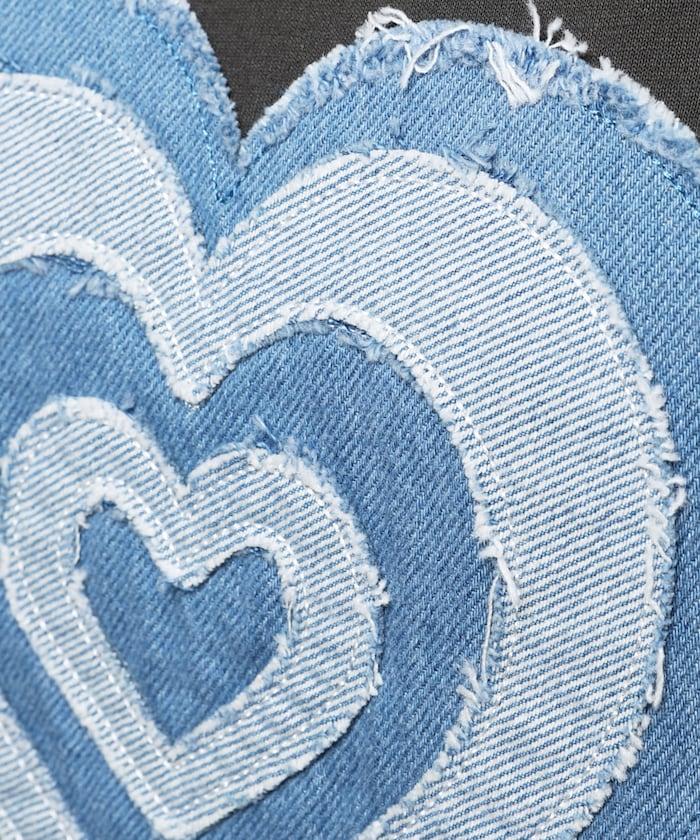 牛仔布和心形圖案為這款對接 T 恤增添了時尚氣息。