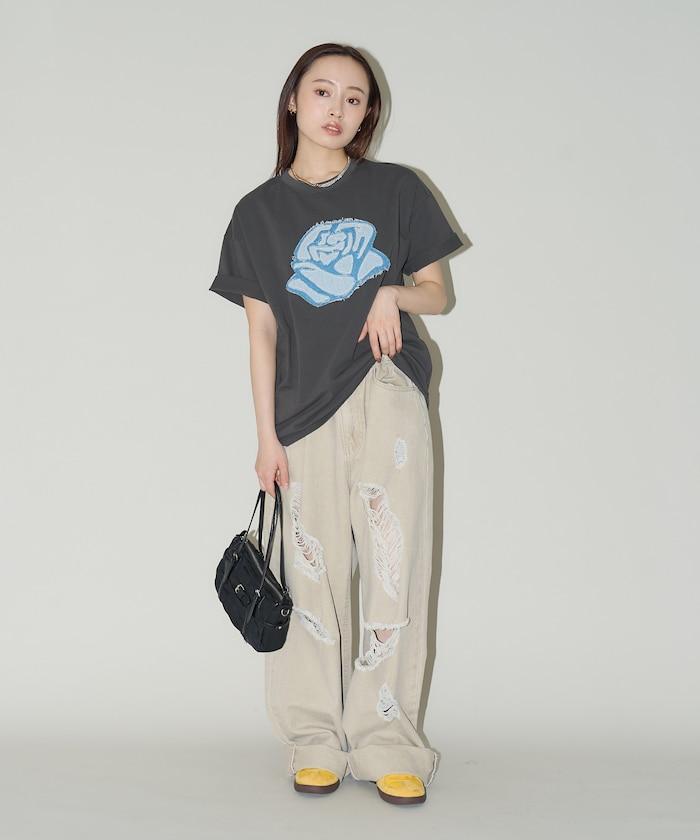 損傷 玫瑰 對接T恤 限定推出