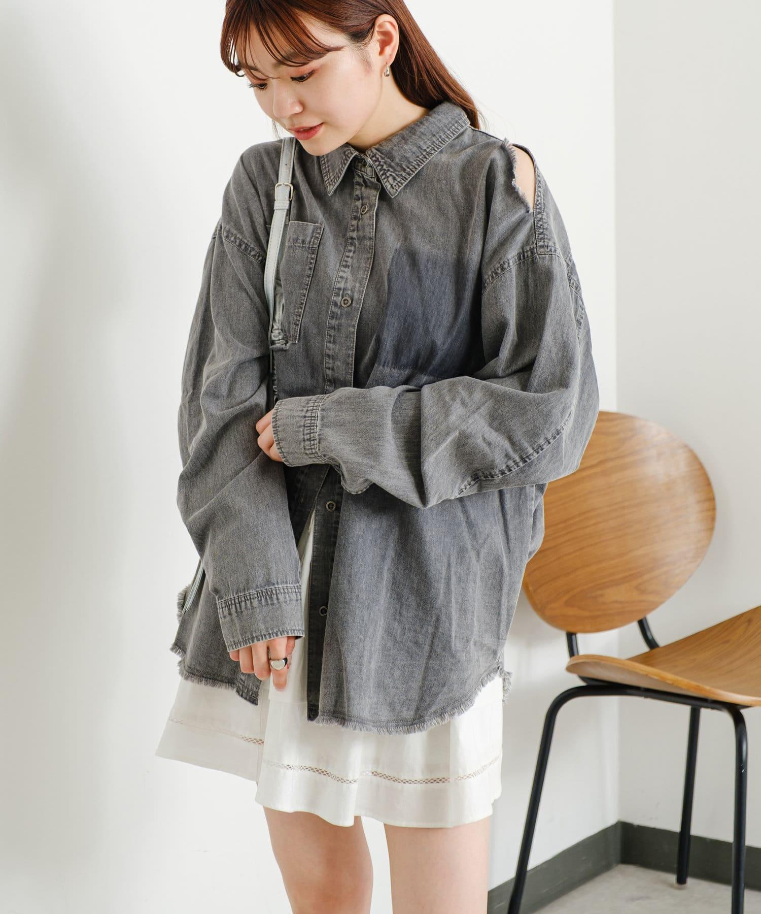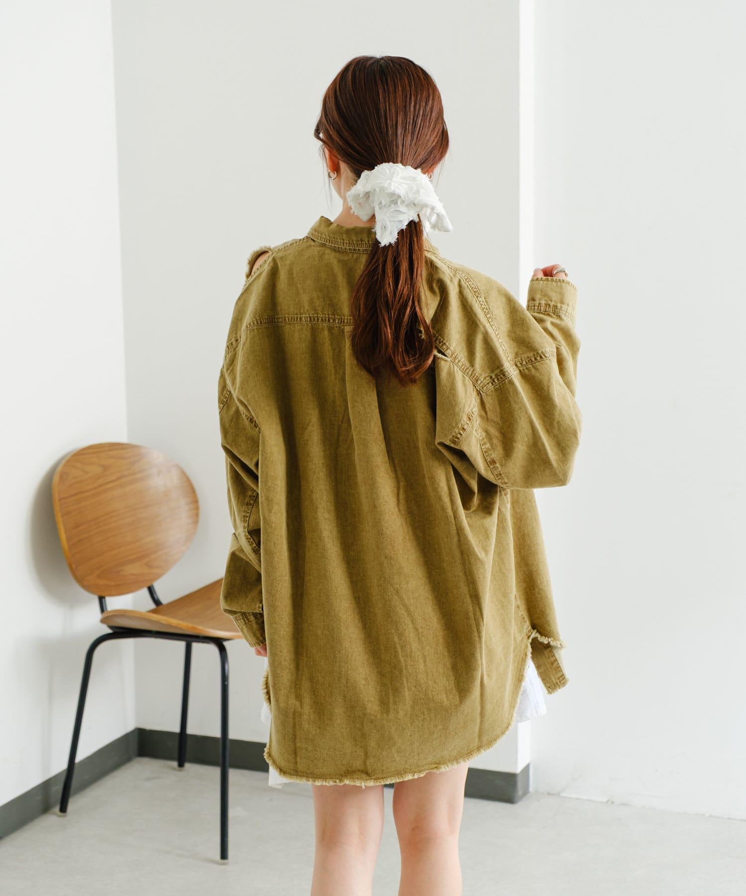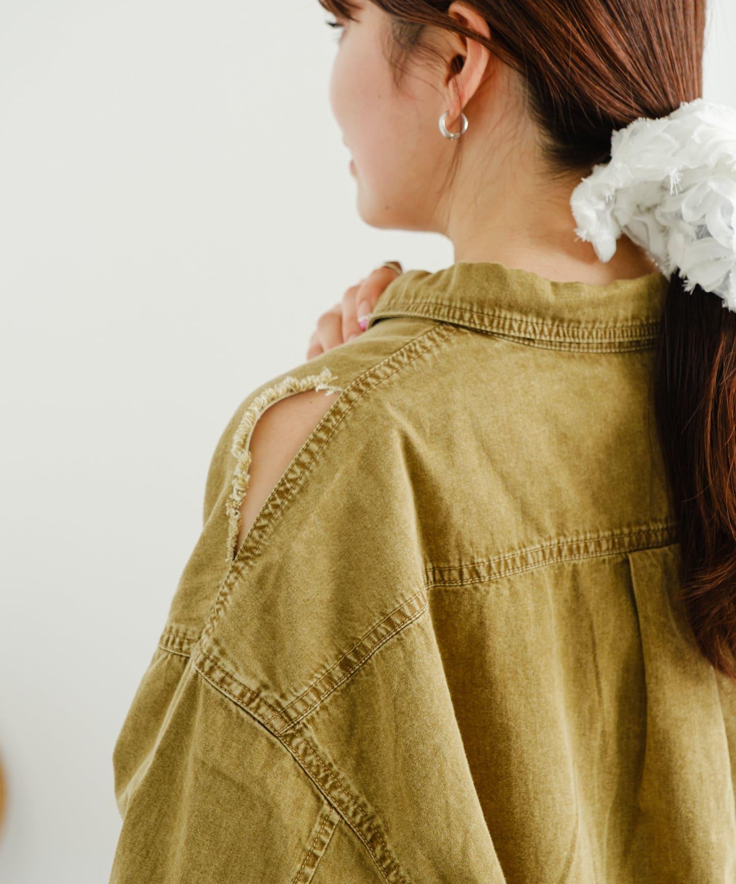 損壞效果寬鬆牛仔襯衫