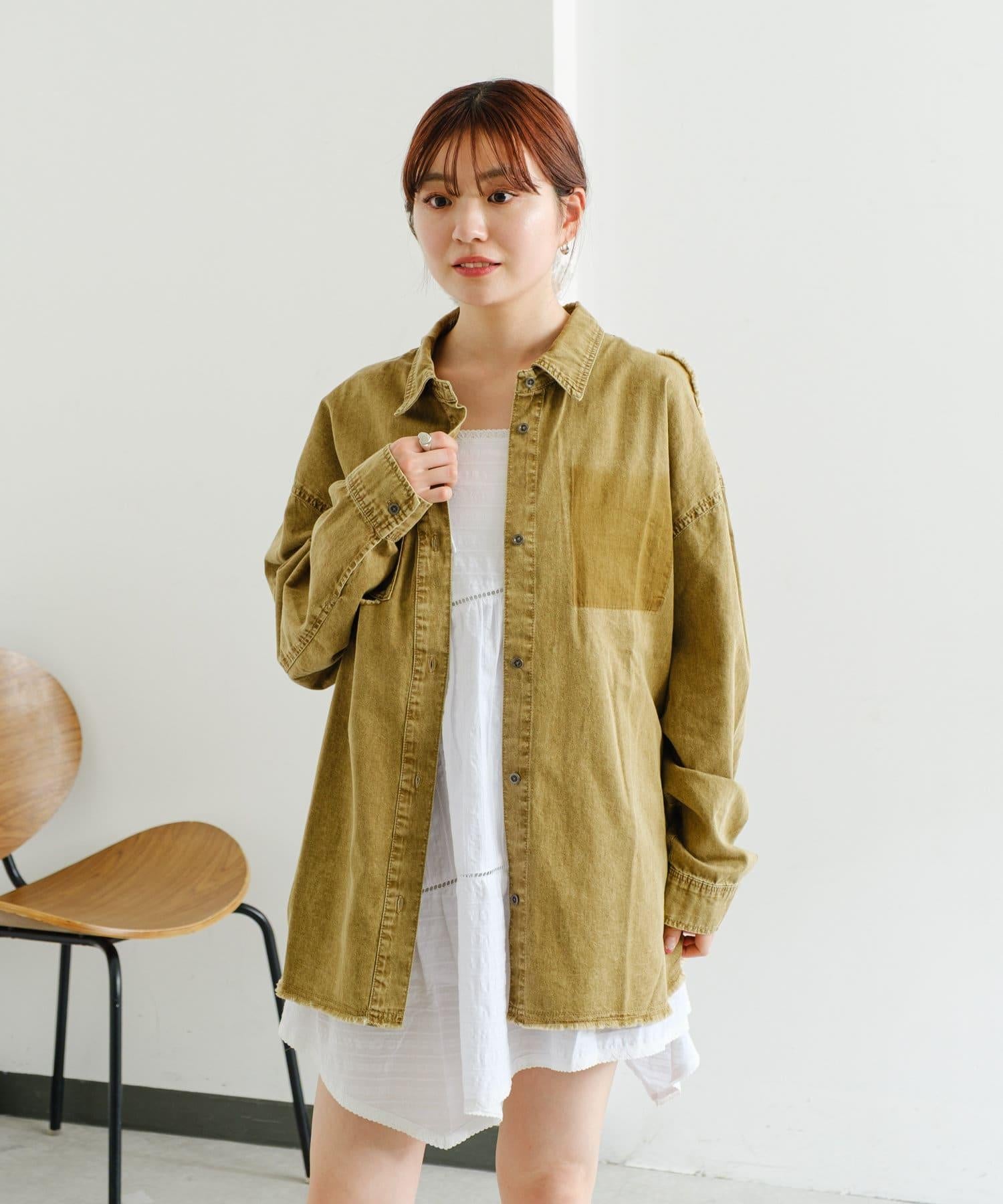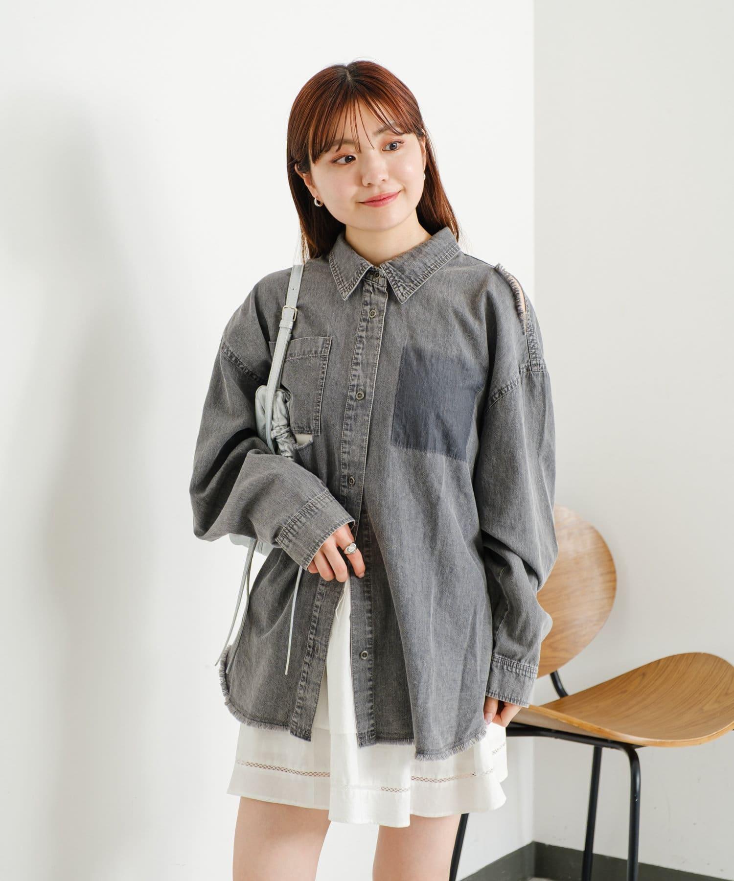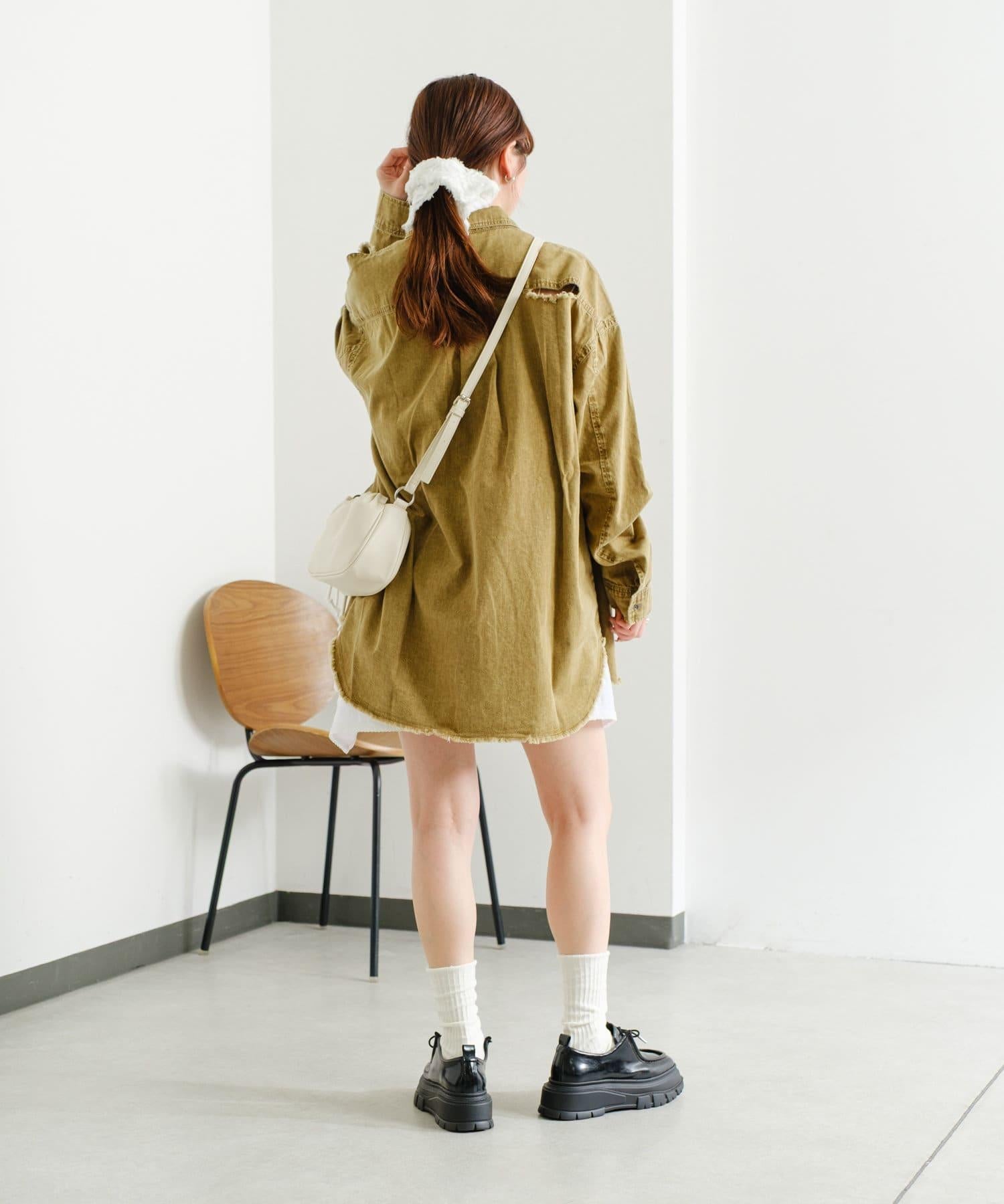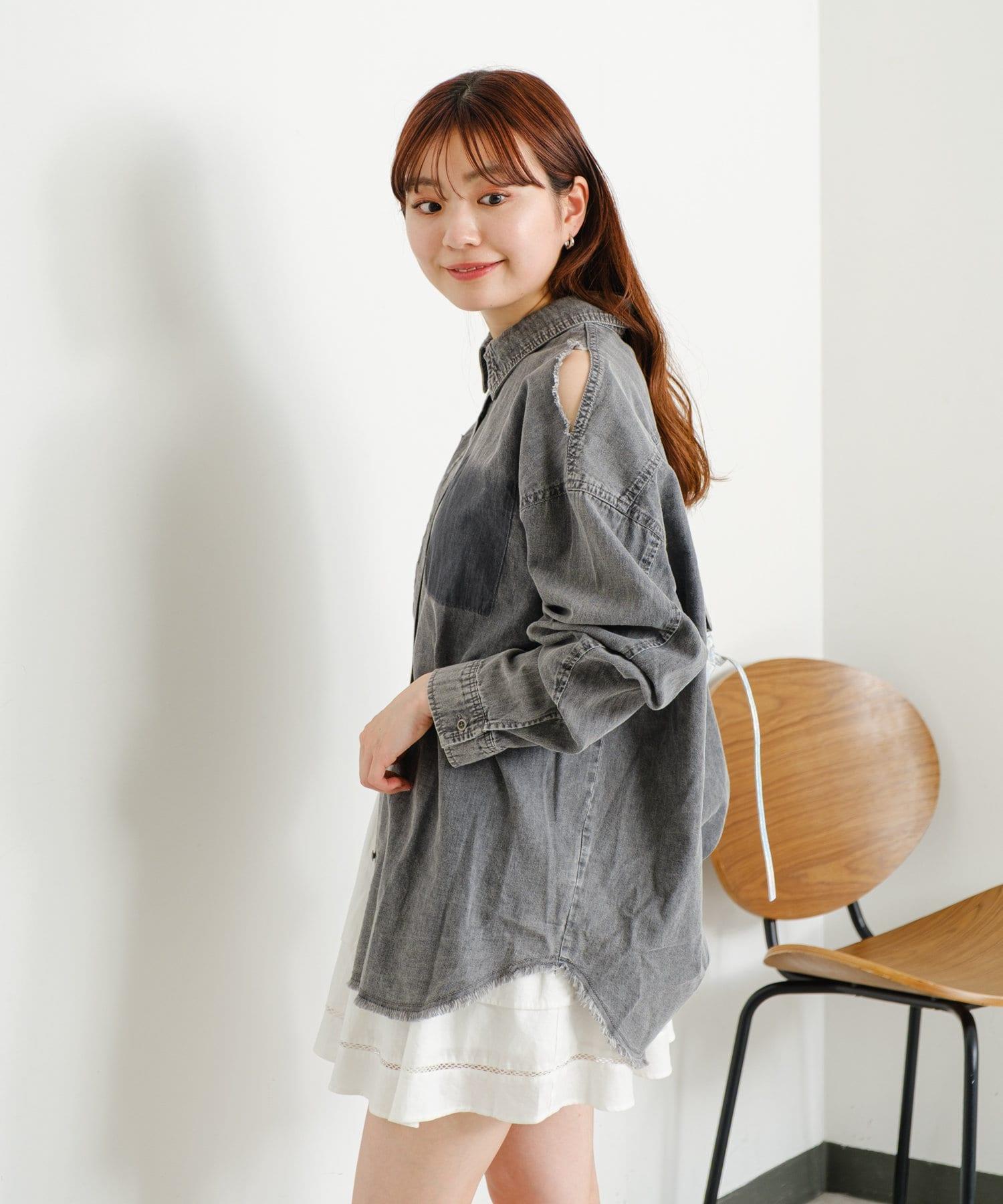損壞效果寬鬆牛仔襯衫