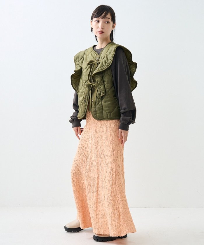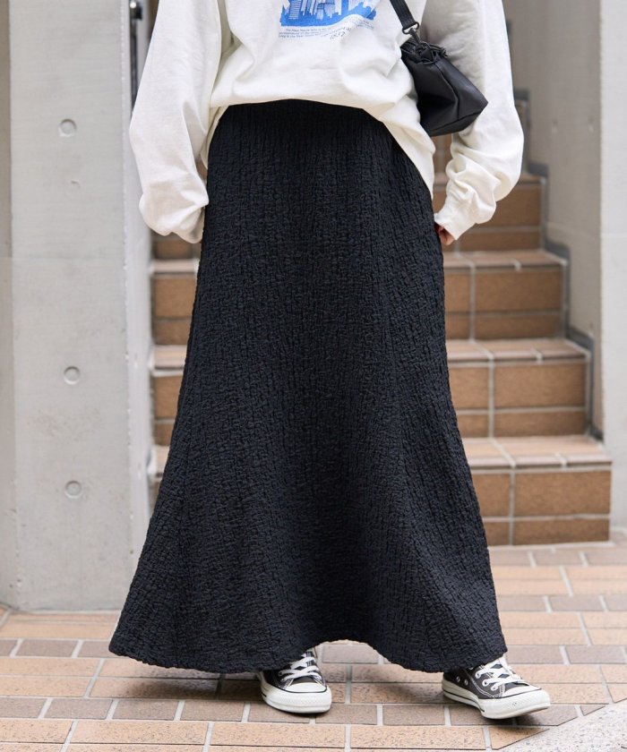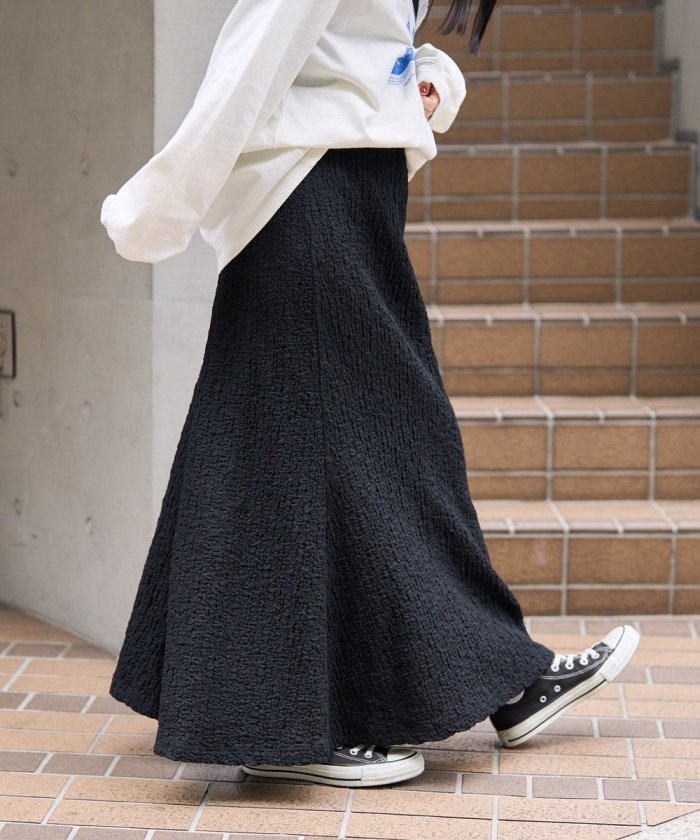 裙襬從膝蓋往下呈喇叭狀,但腰部線條簡潔,輪廓優美利落。