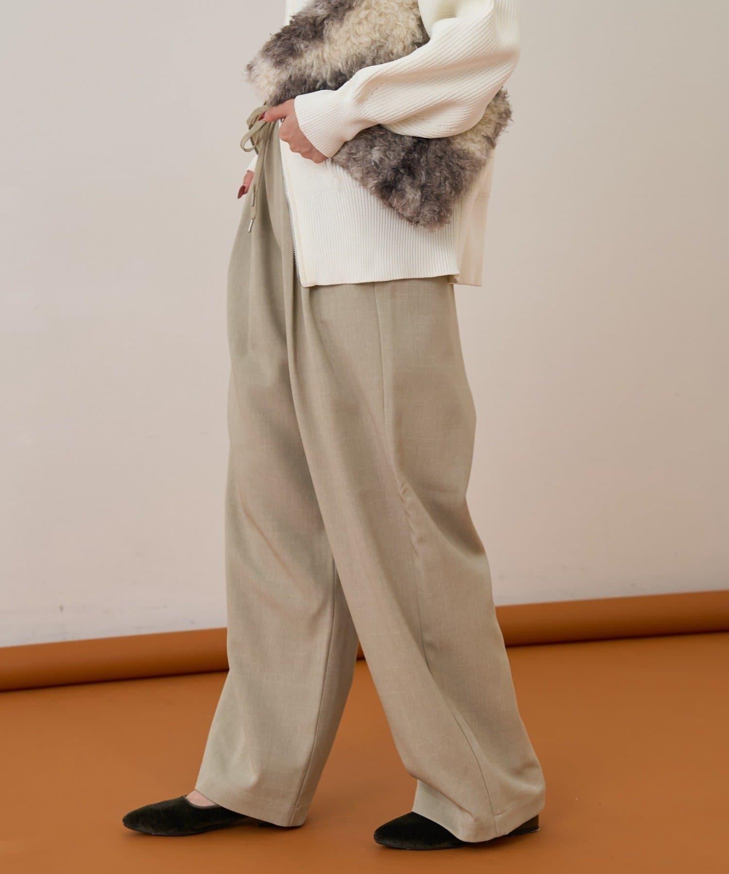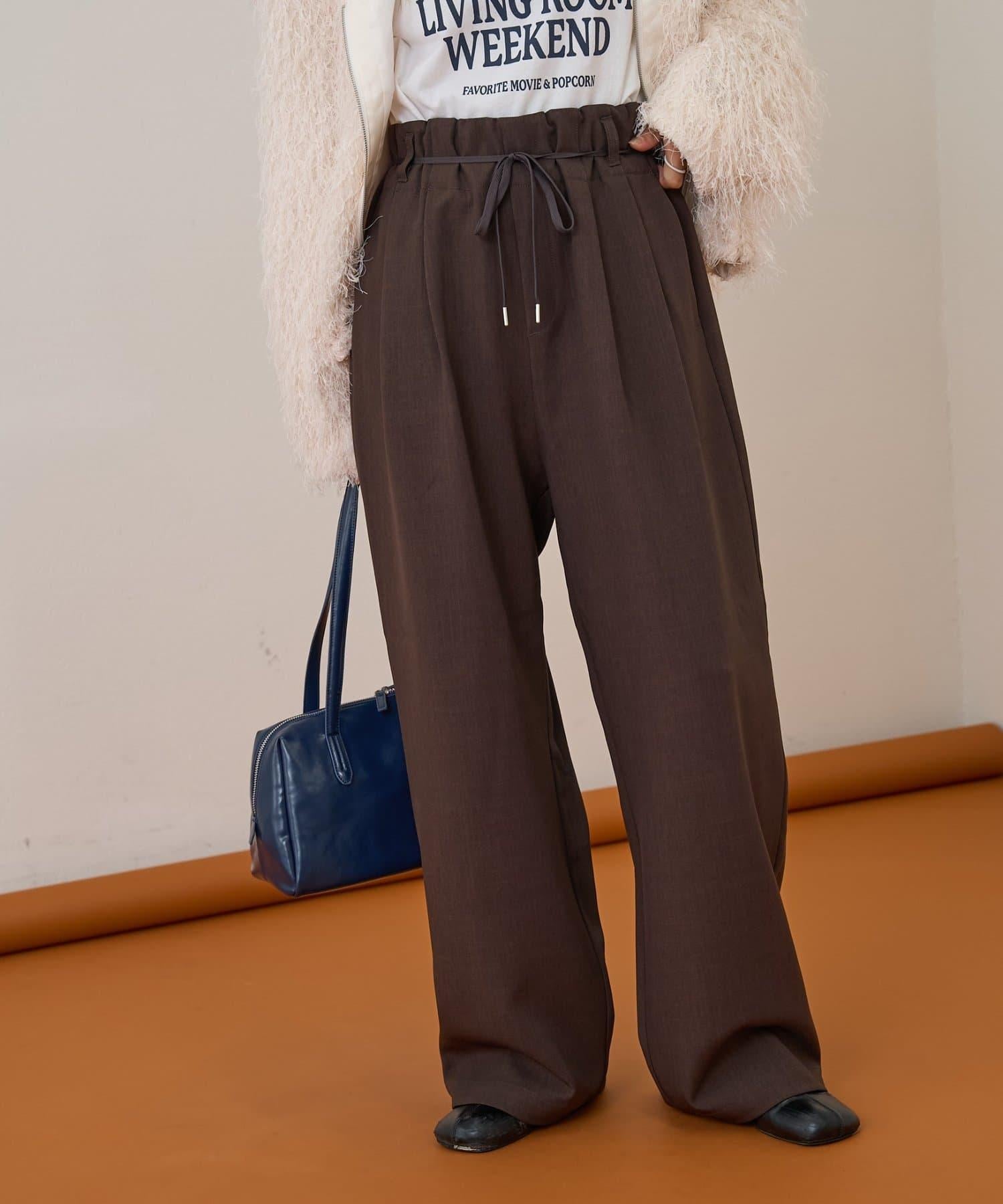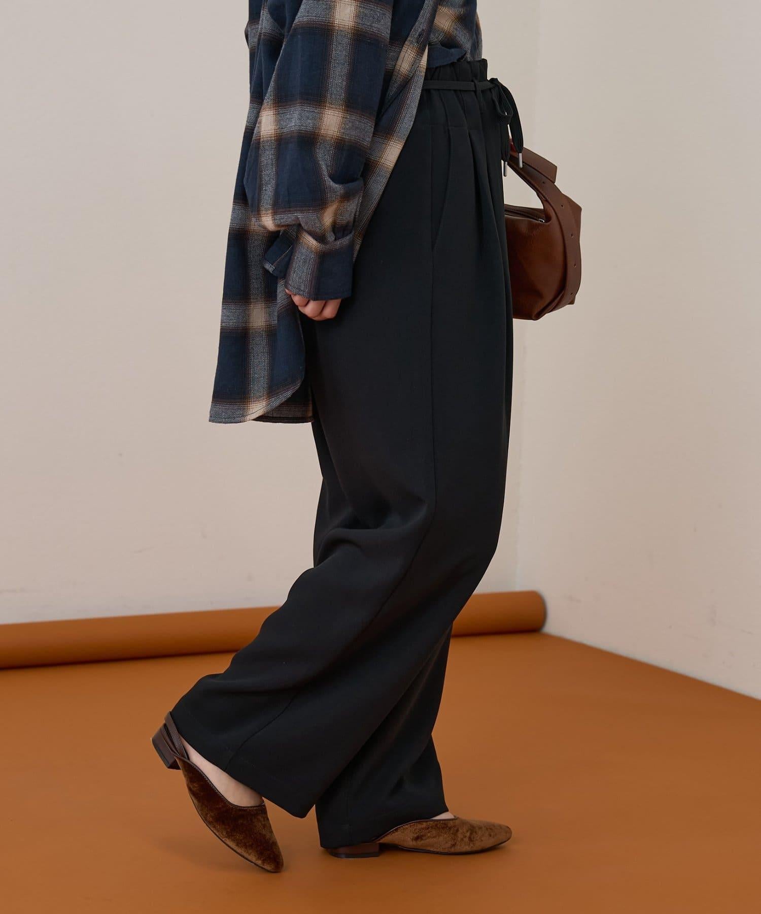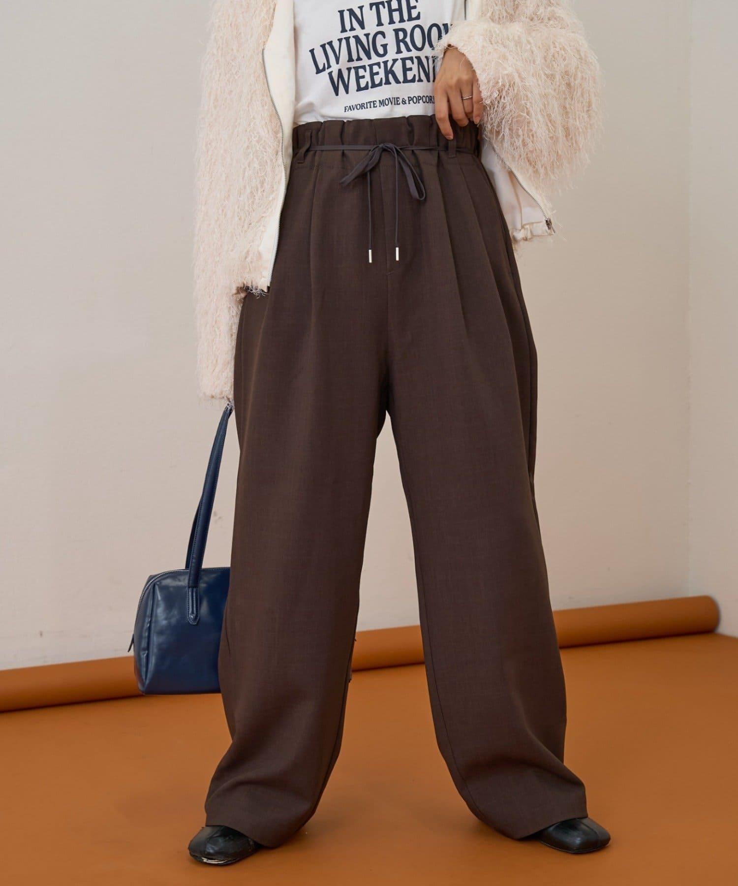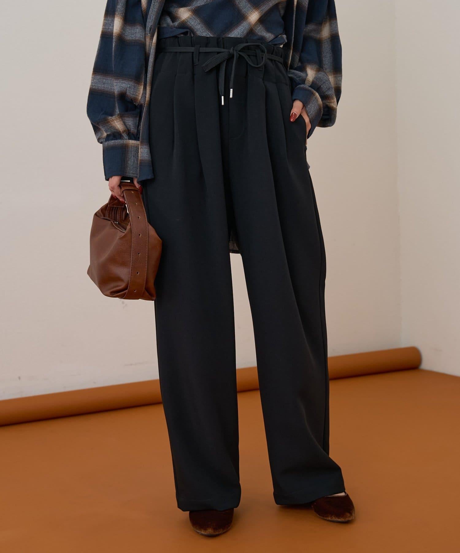 預約商品【收腰顯瘦!】附帶繫帶腰帶褶皺寬鬆休閒長褲