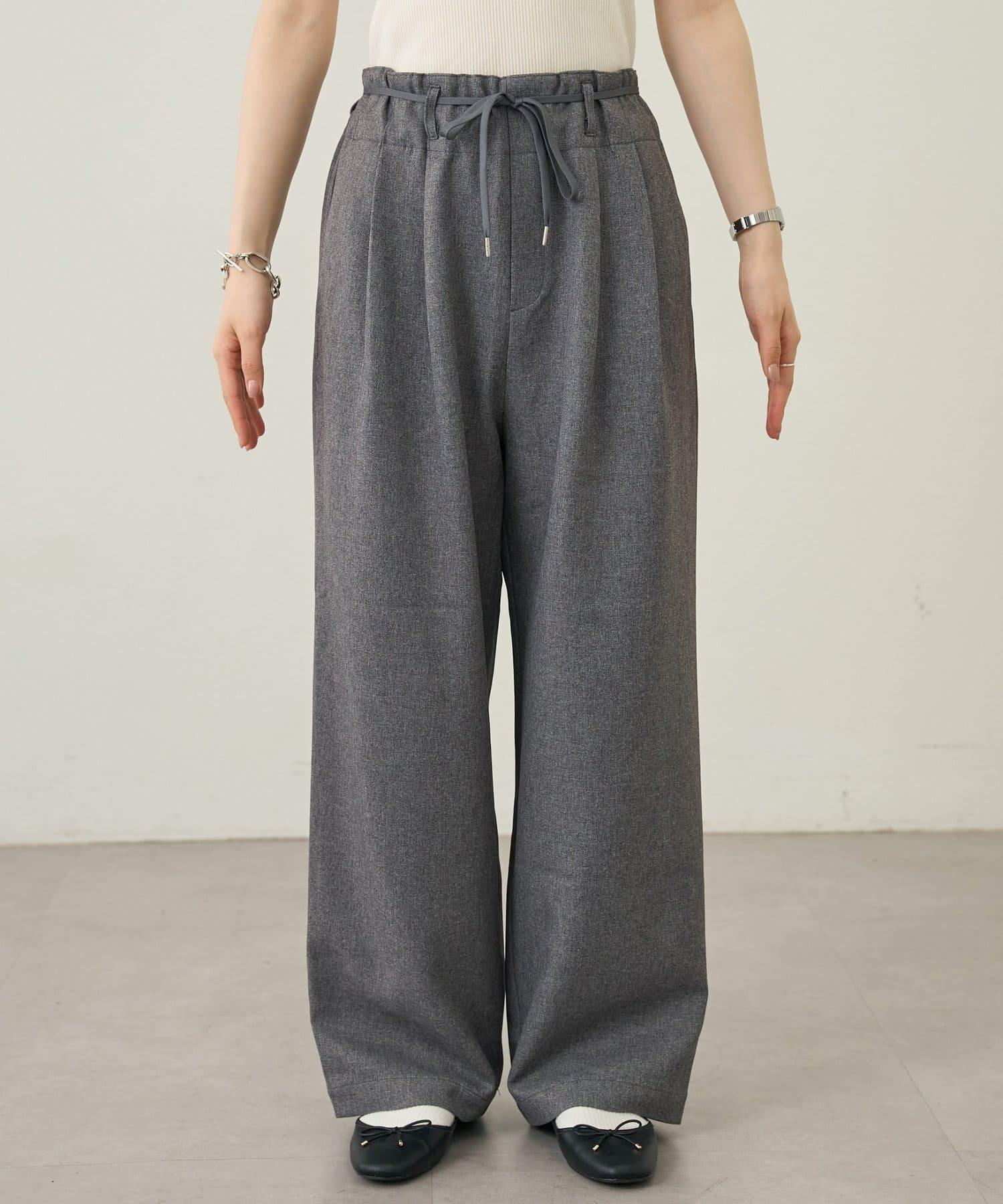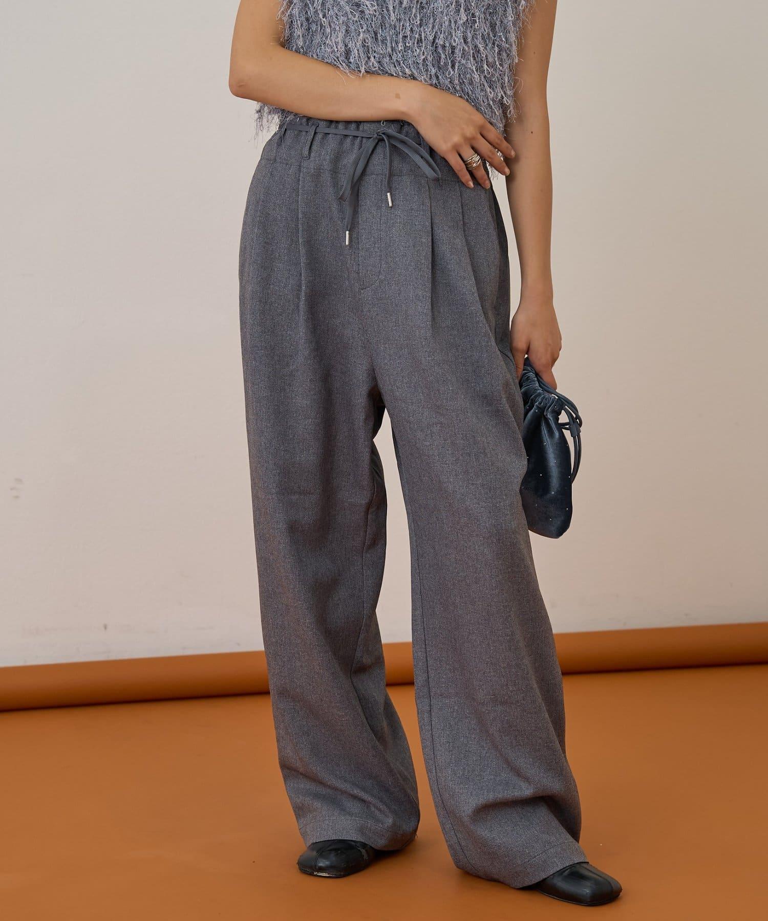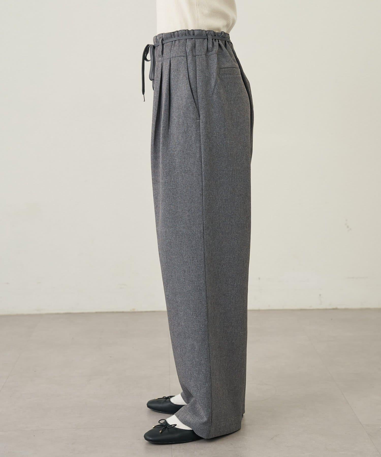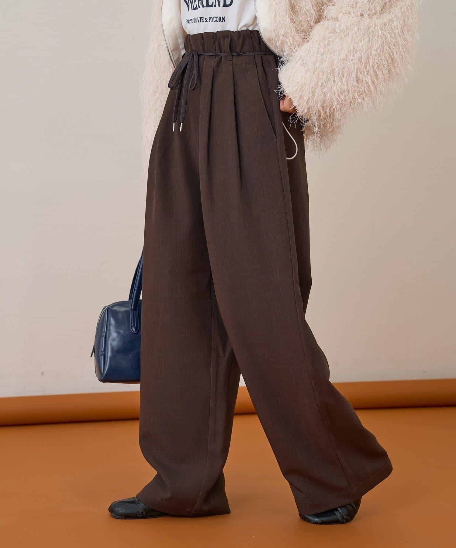 預約商品【收腰顯瘦!】附帶繫帶腰帶褶皺寬鬆休閒長褲