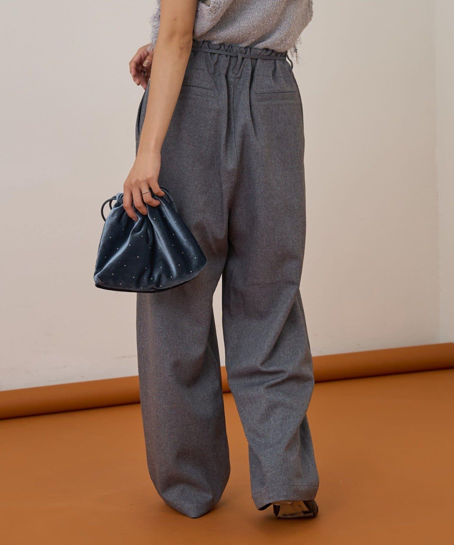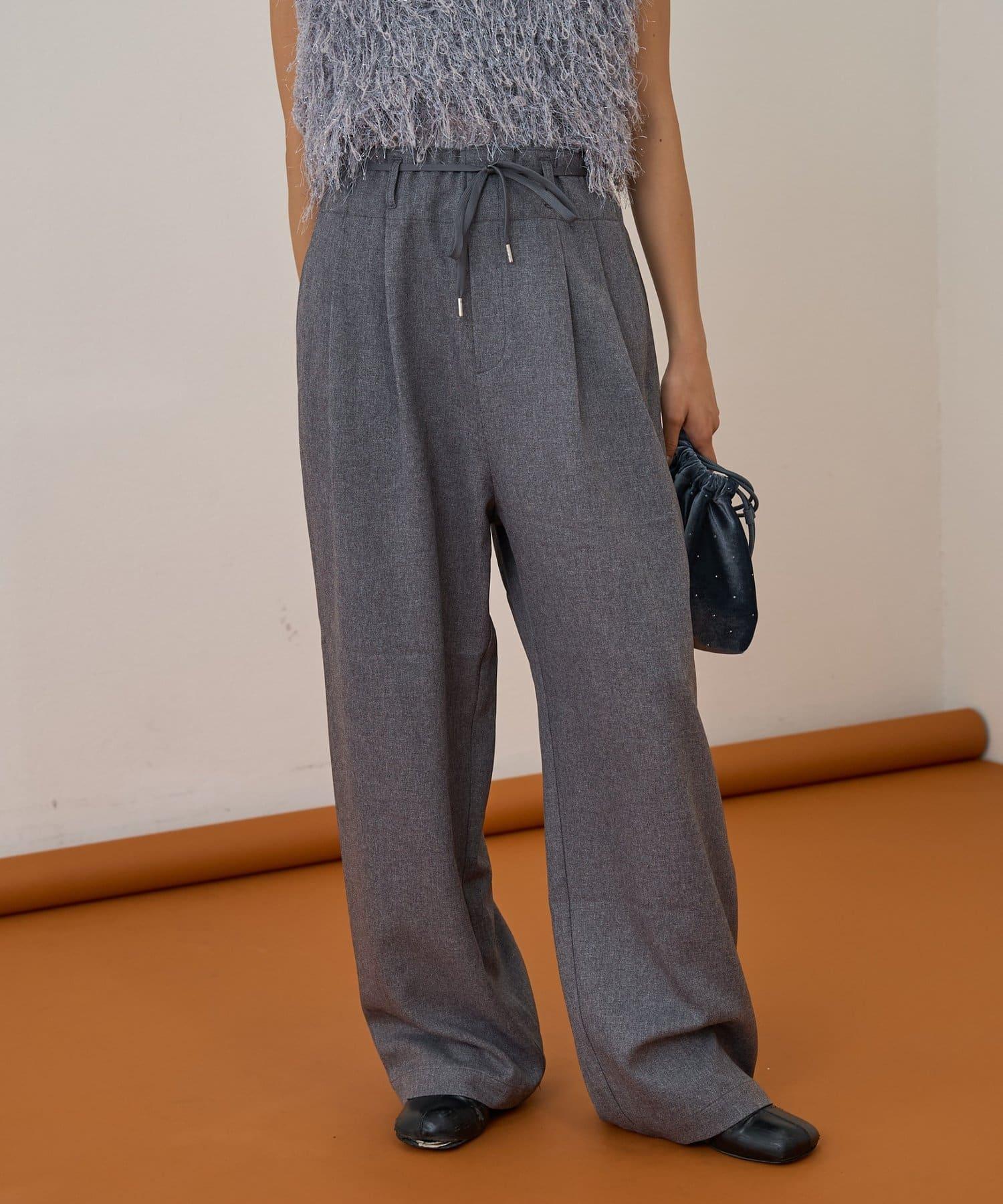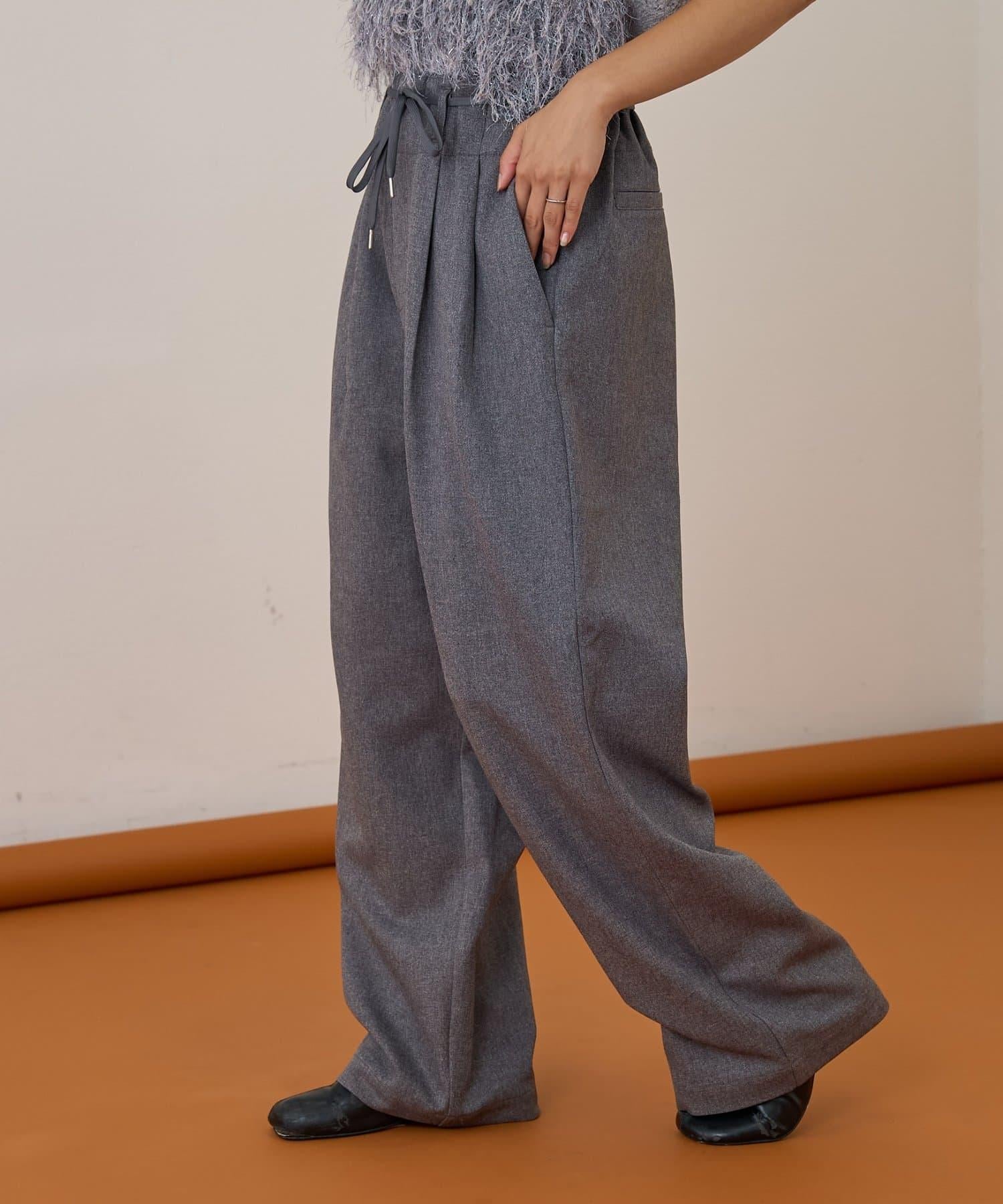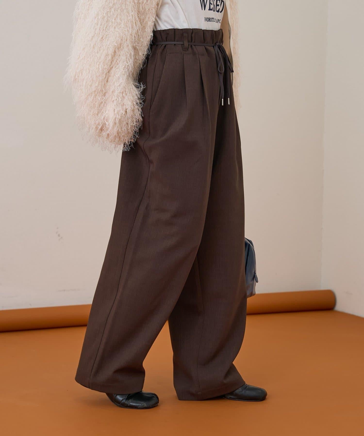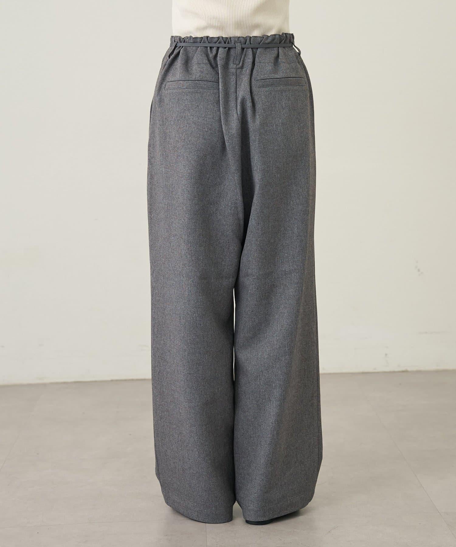 預約商品【收腰顯瘦!】附帶繫帶腰帶褶皺寬鬆休閒長褲