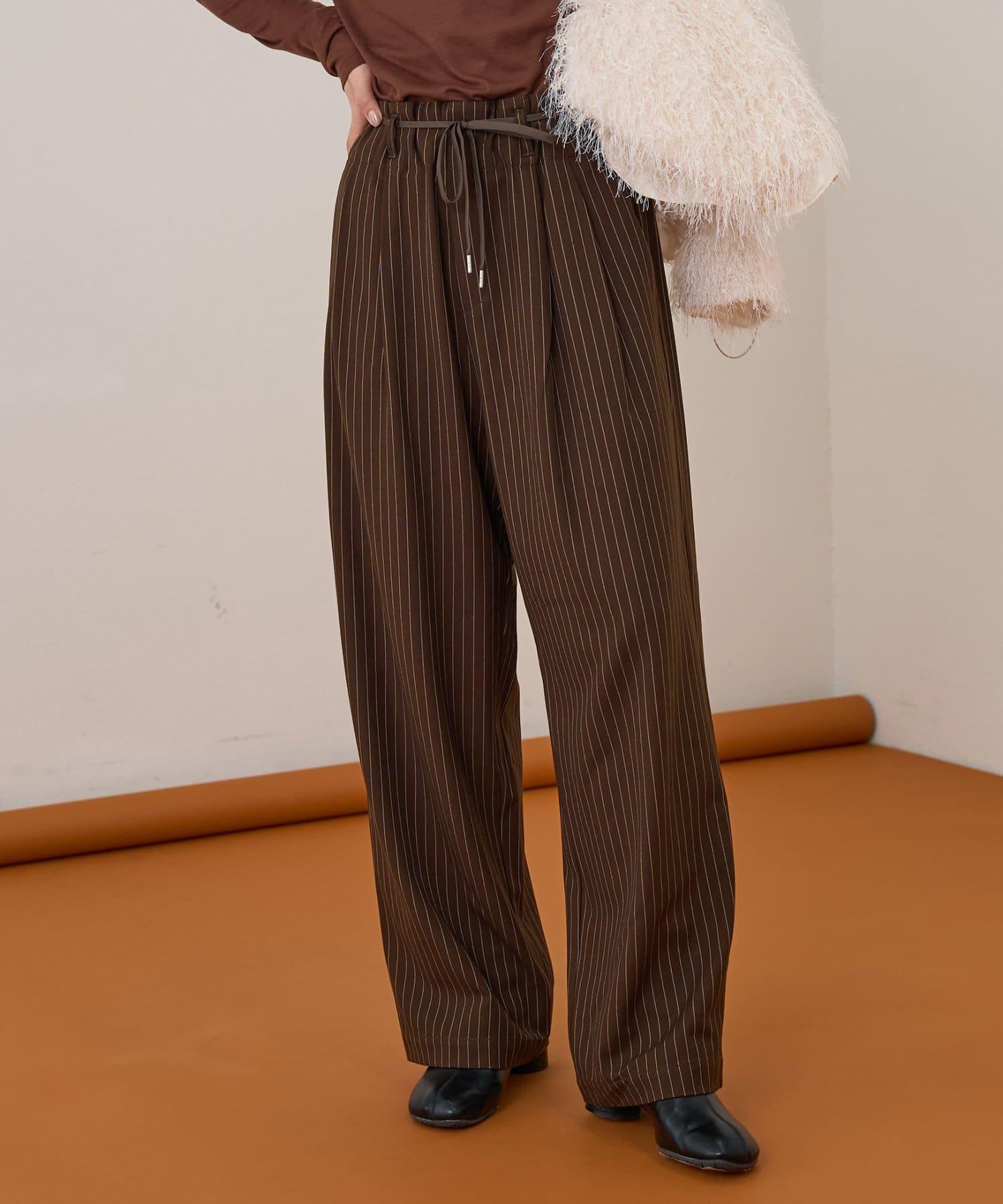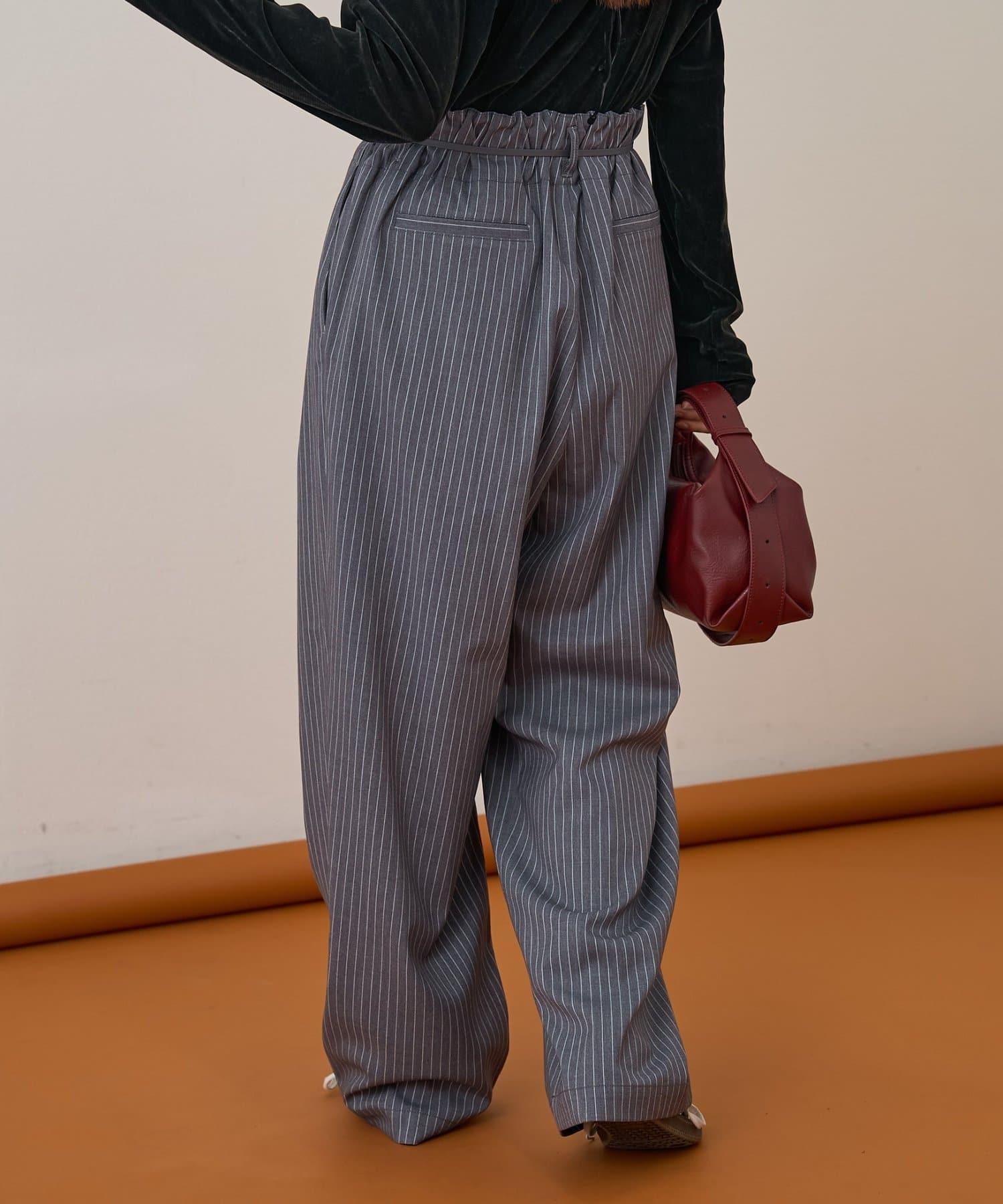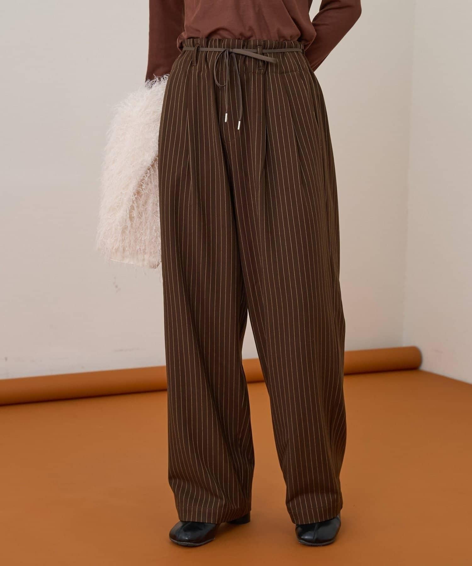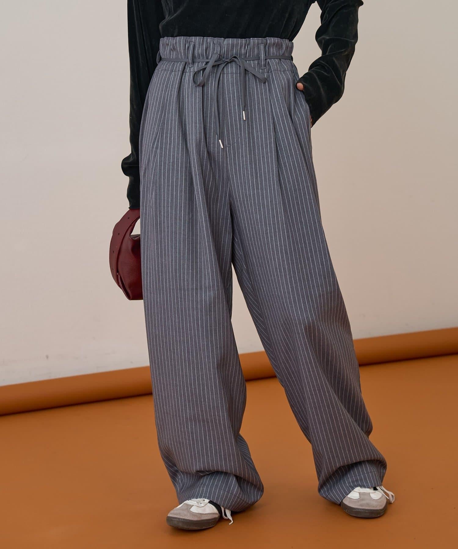 預約商品【收腰顯瘦!】附帶繫帶腰帶褶皺寬鬆休閒長褲