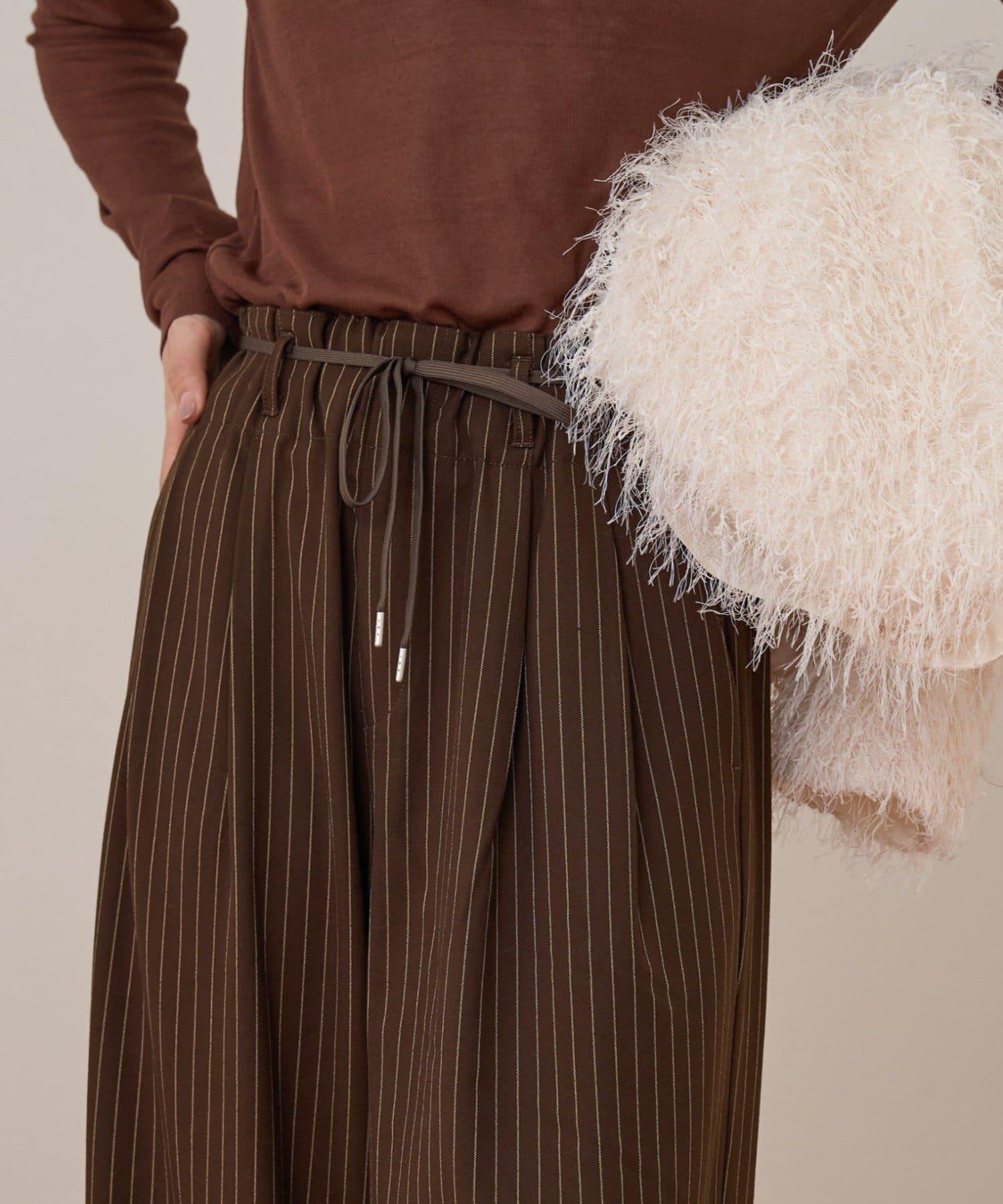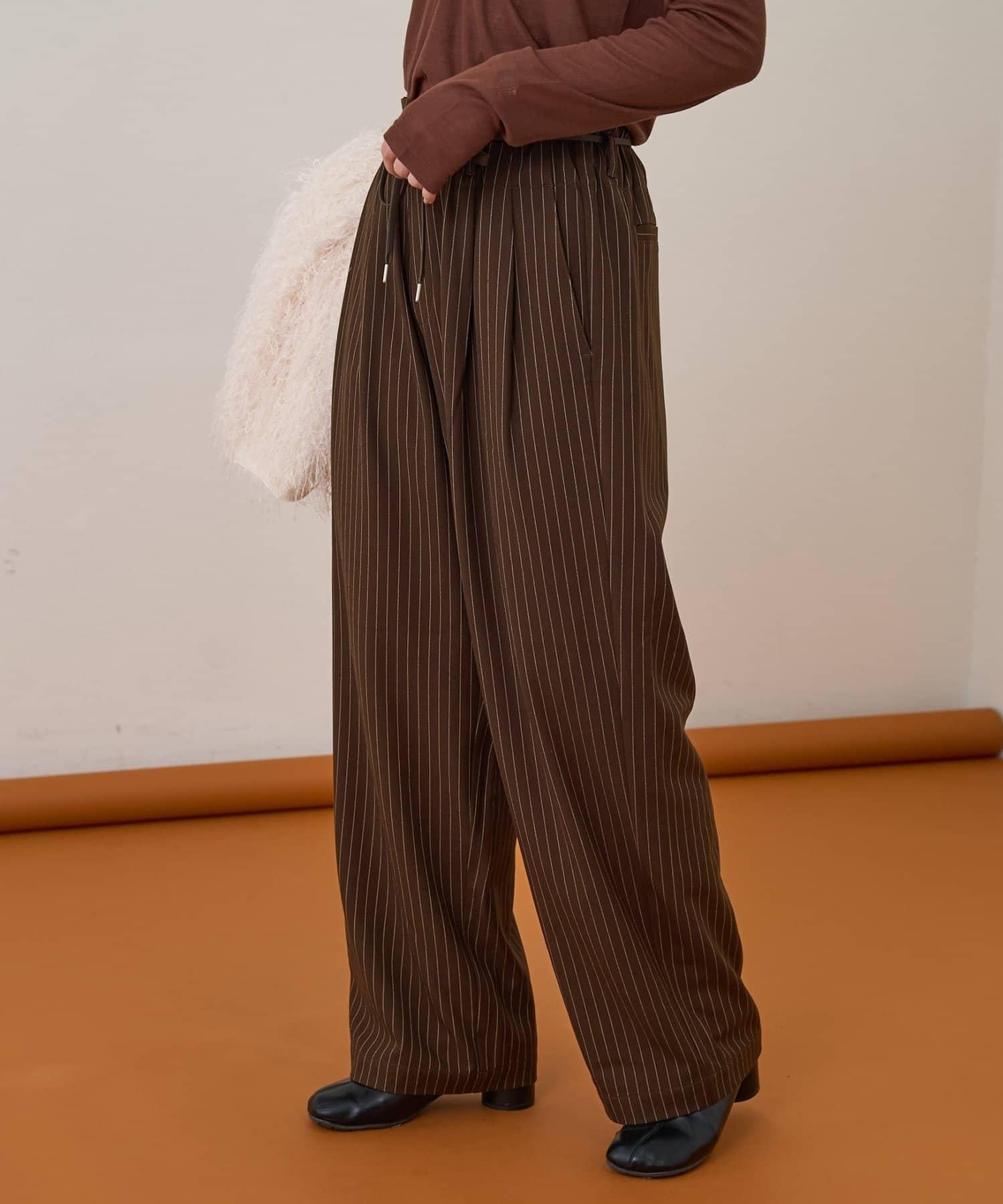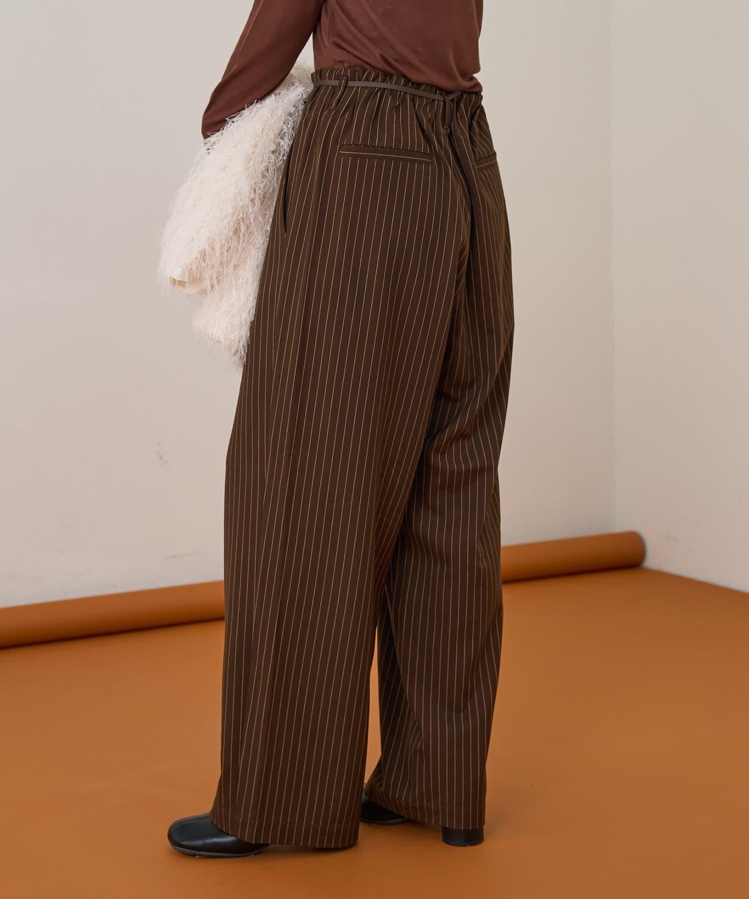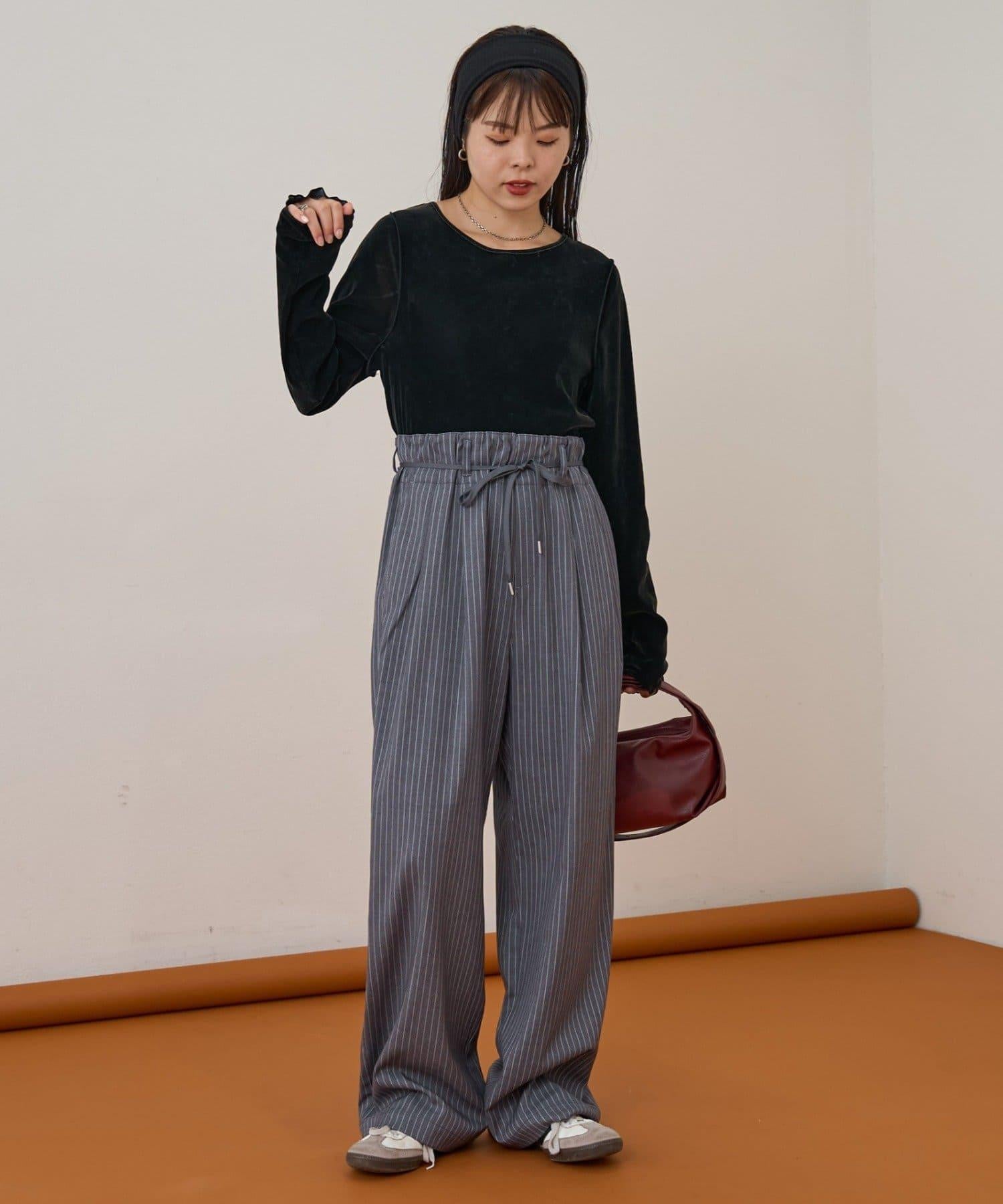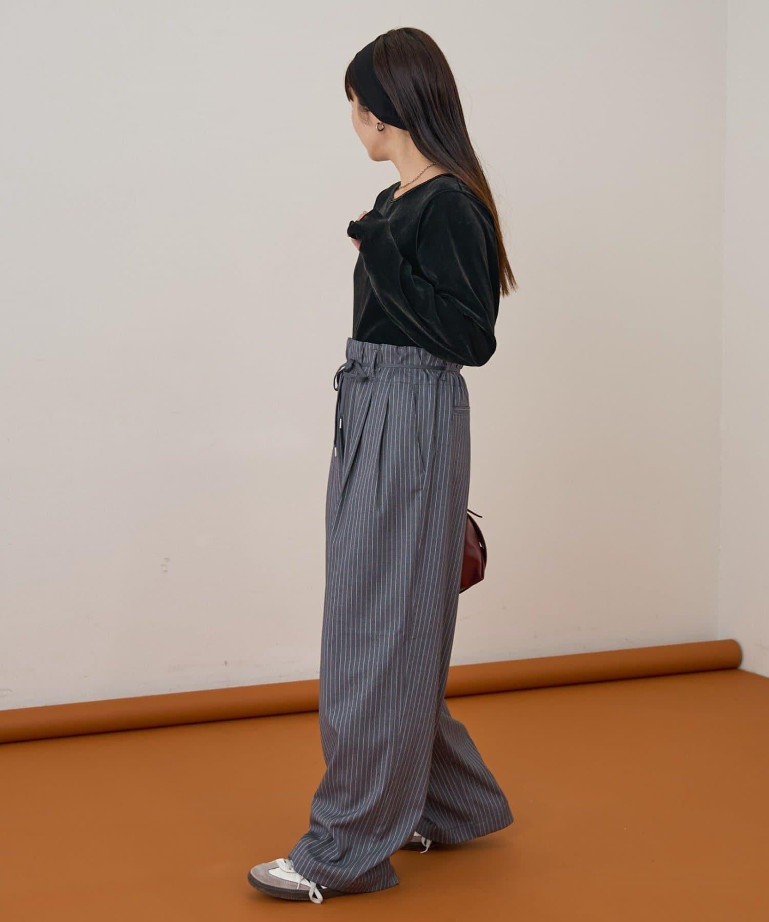 預約商品【收腰顯瘦!】附帶繫帶腰帶褶皺寬鬆休閒長褲