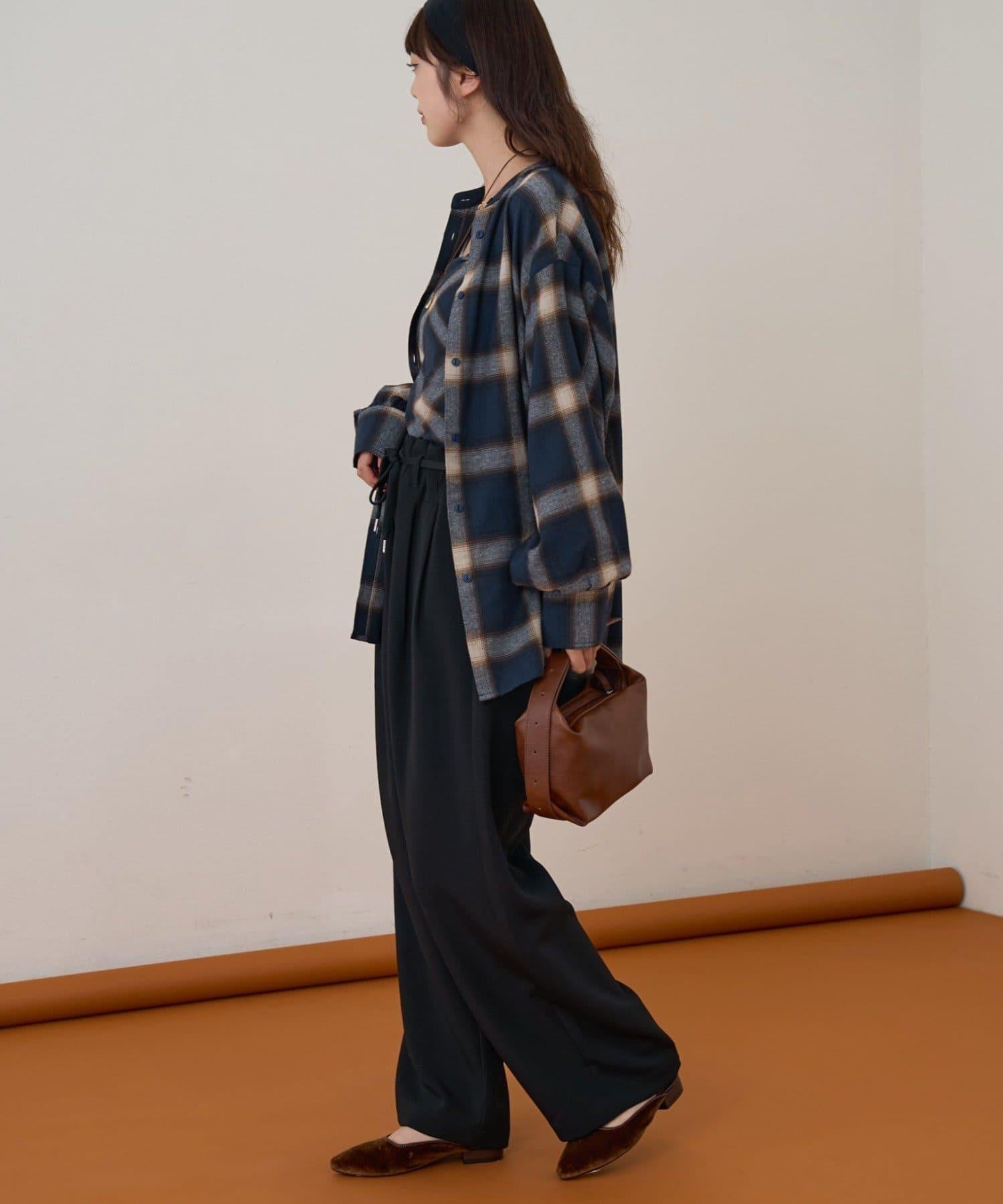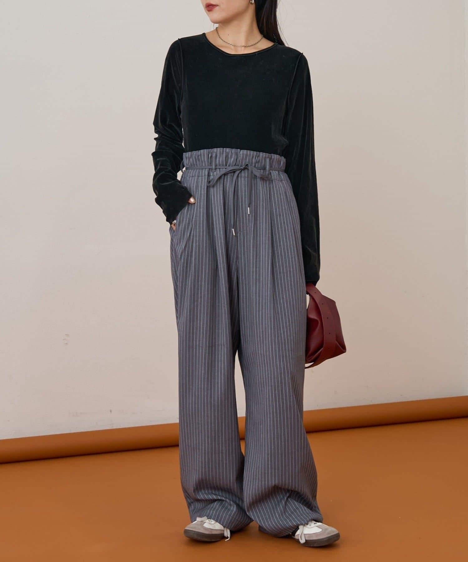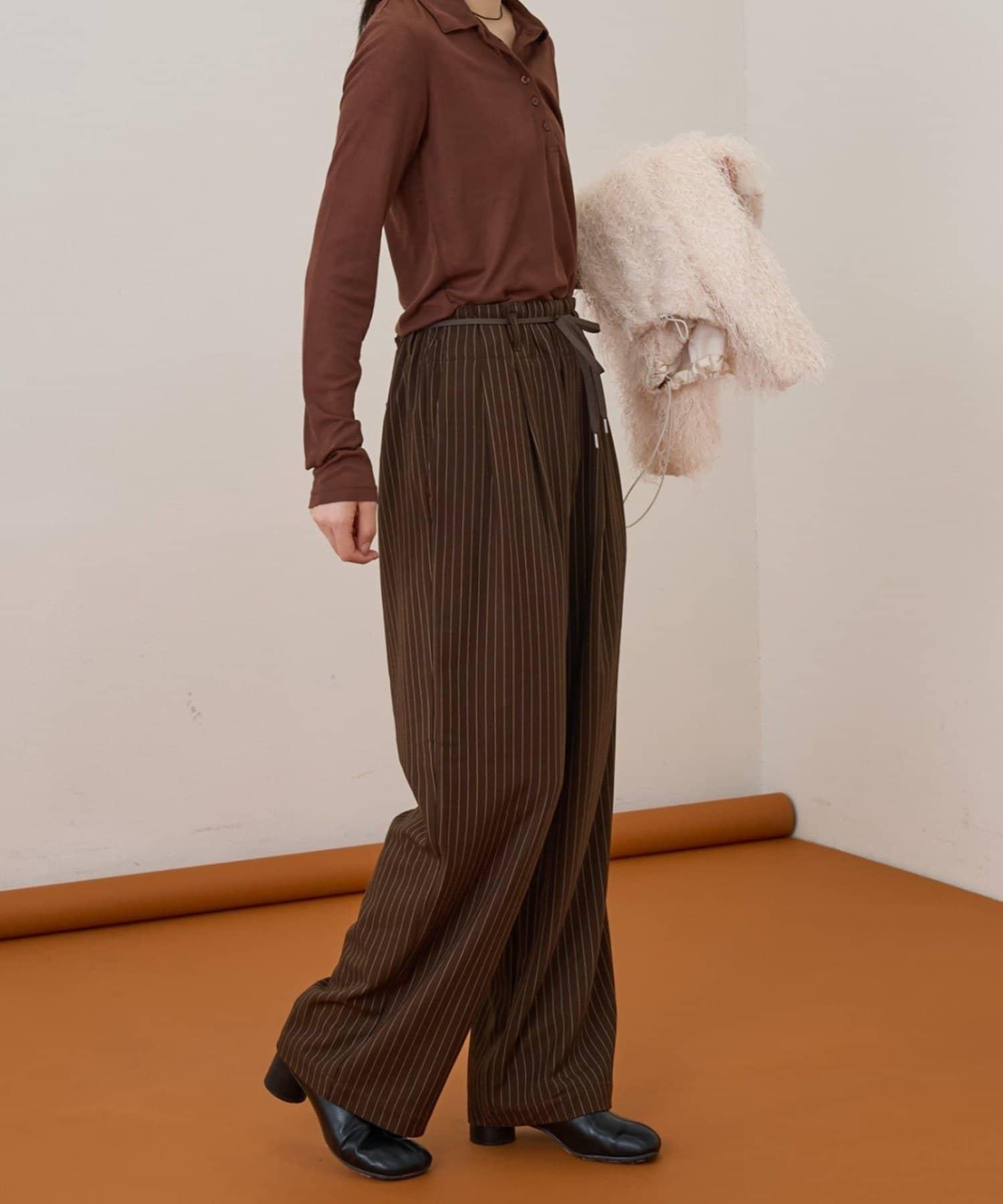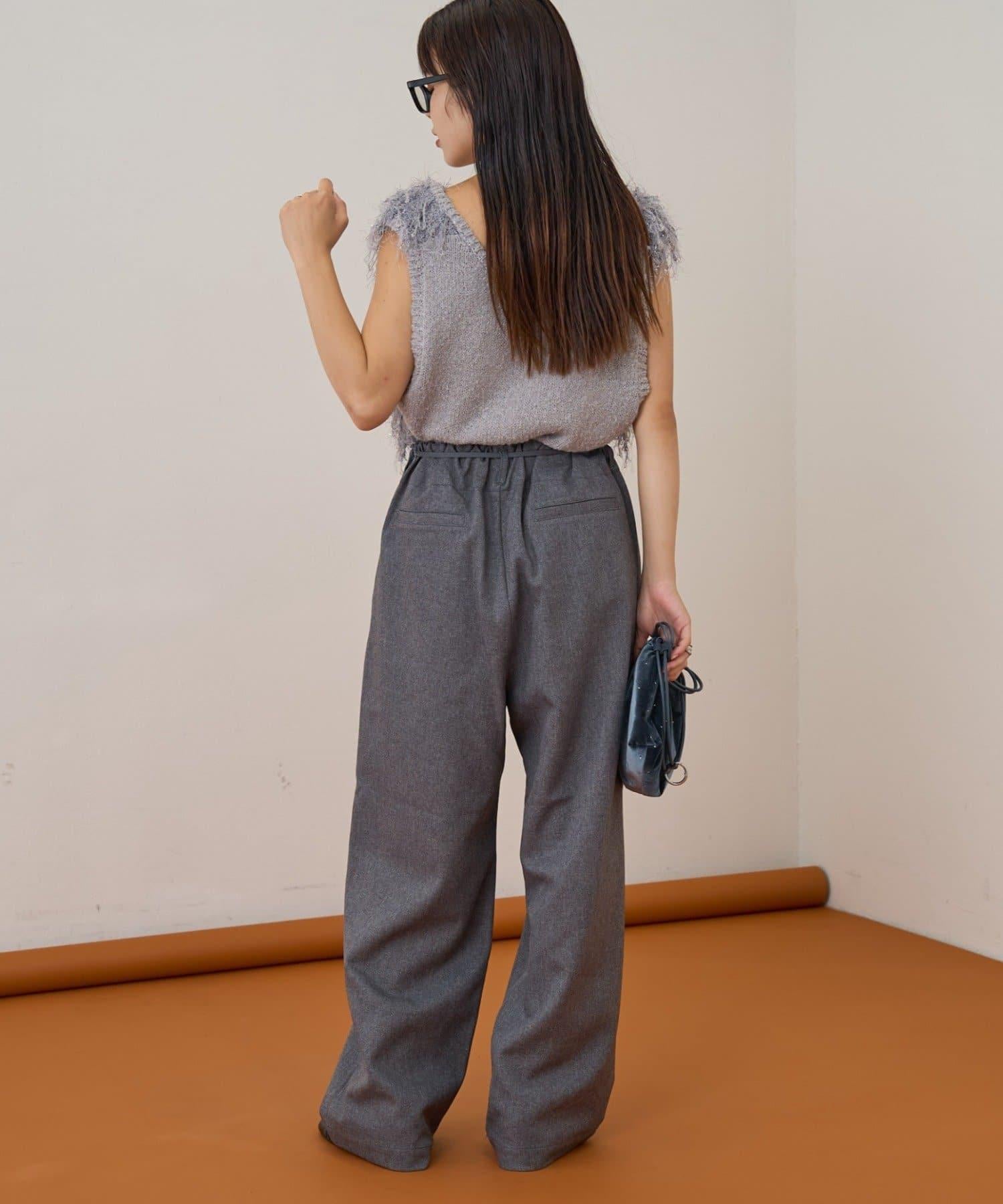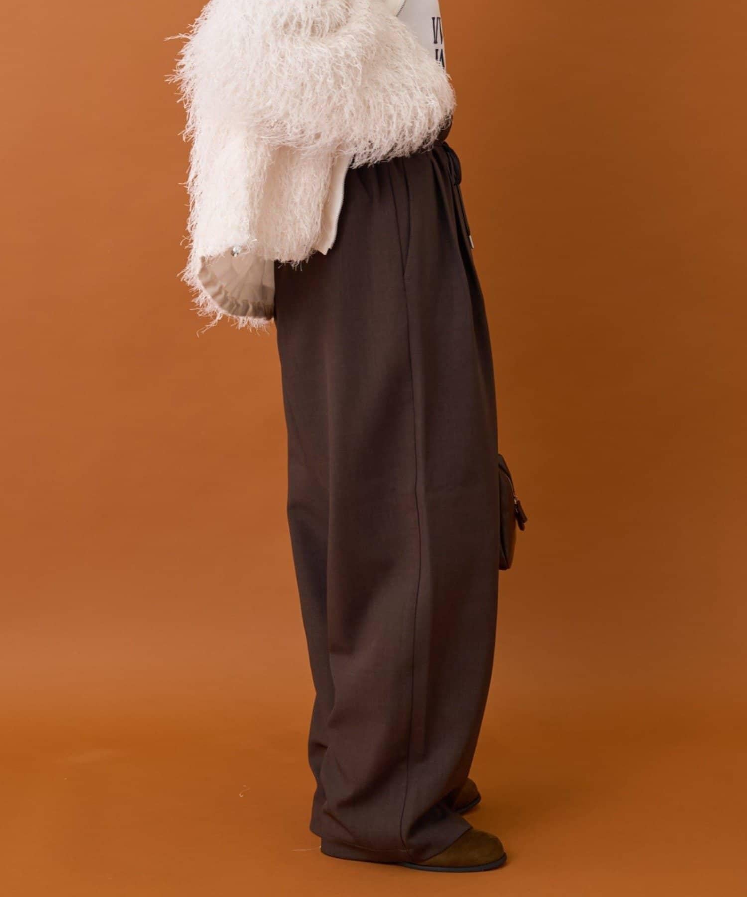 預約商品【收腰顯瘦!】附帶繫帶腰帶褶皺寬鬆休閒長褲