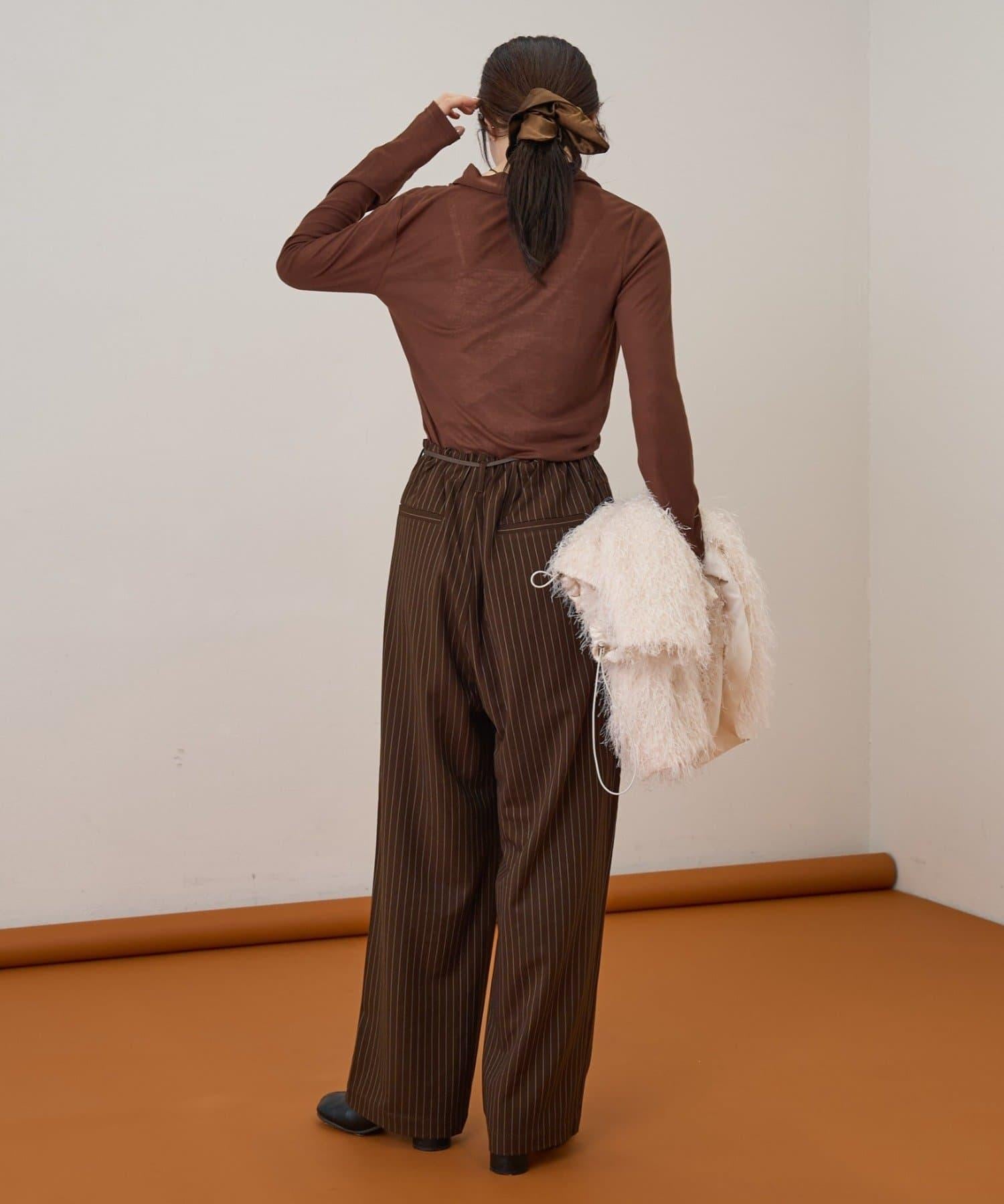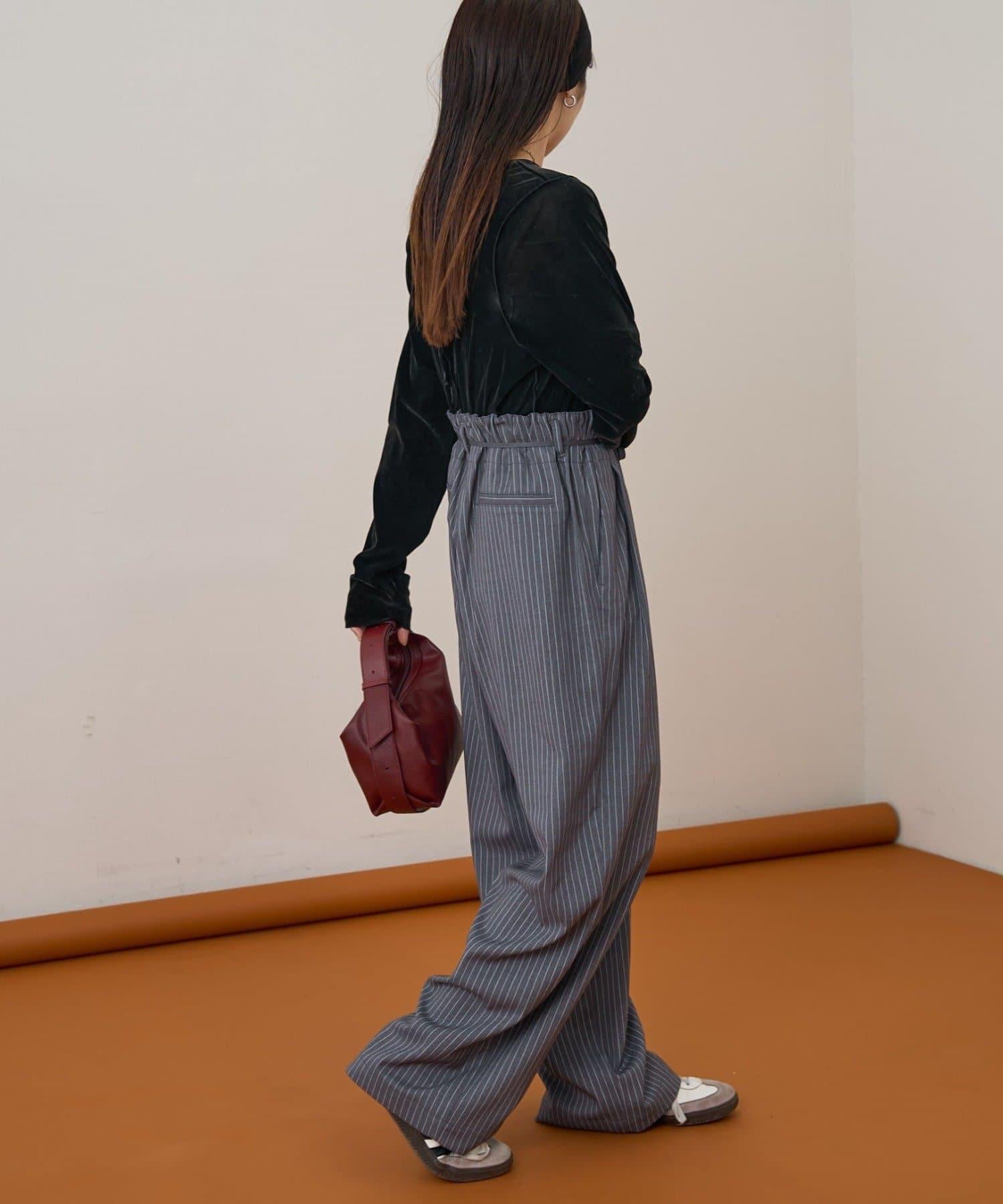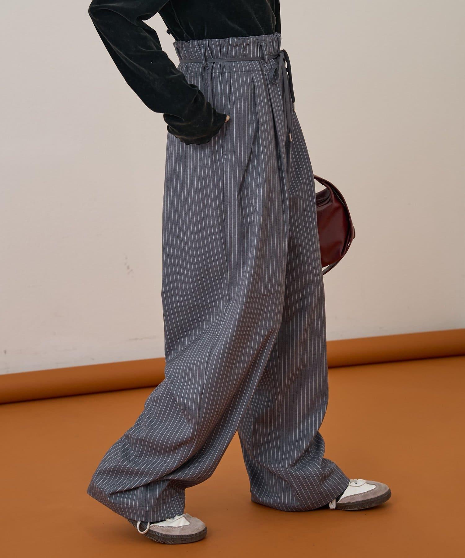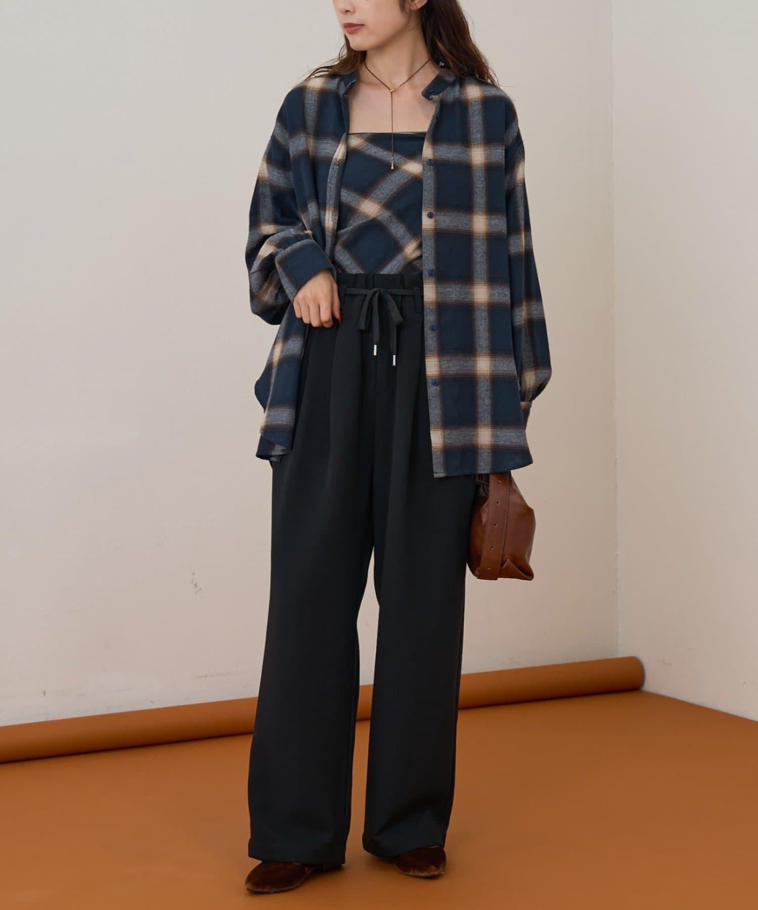 預約商品【收腰顯瘦!】附帶繫帶腰帶褶皺寬鬆休閒長褲