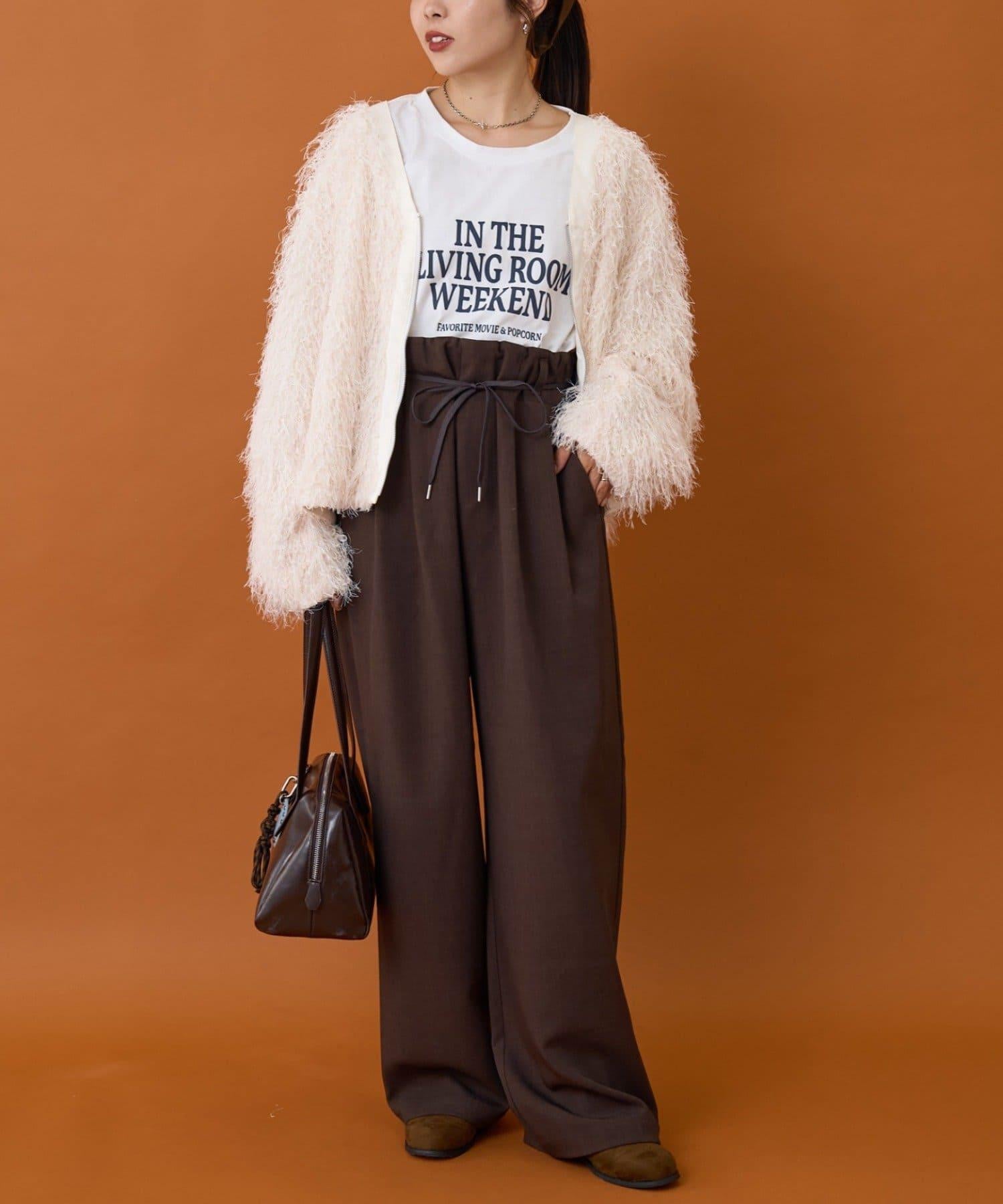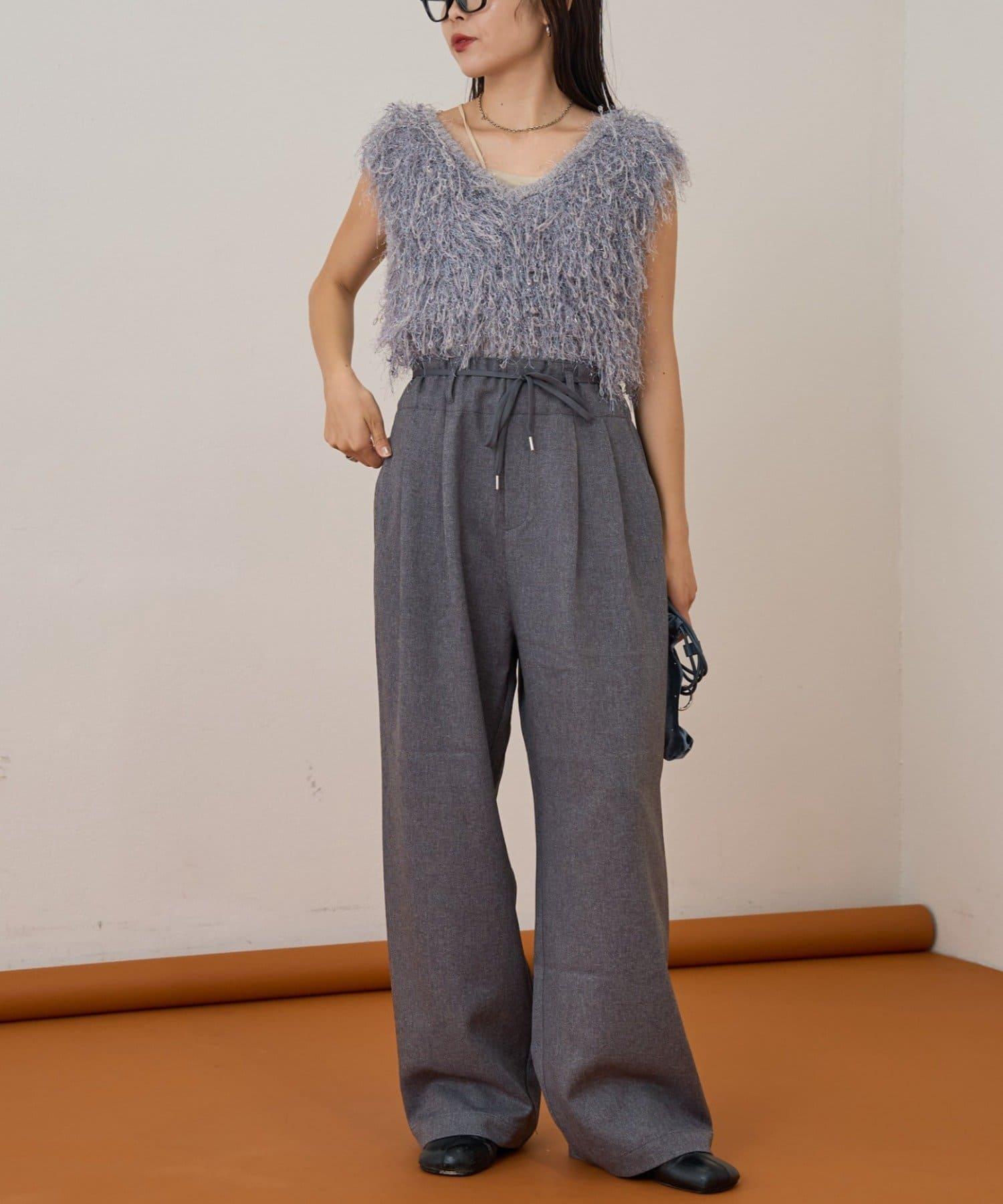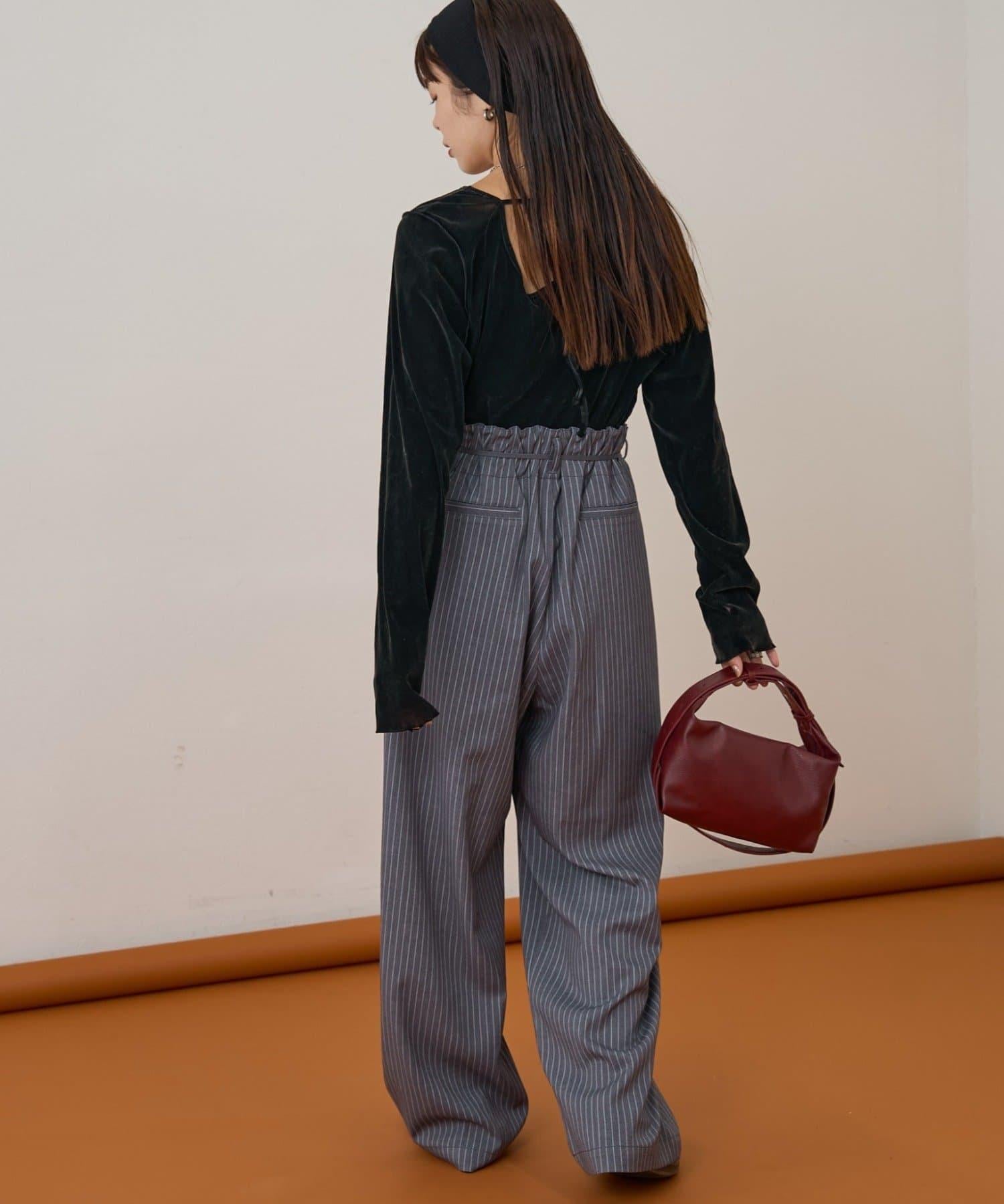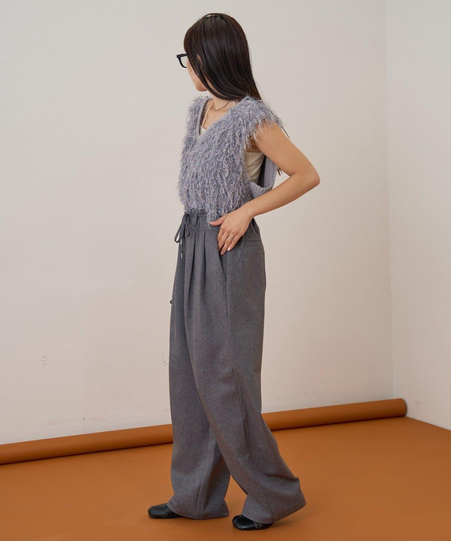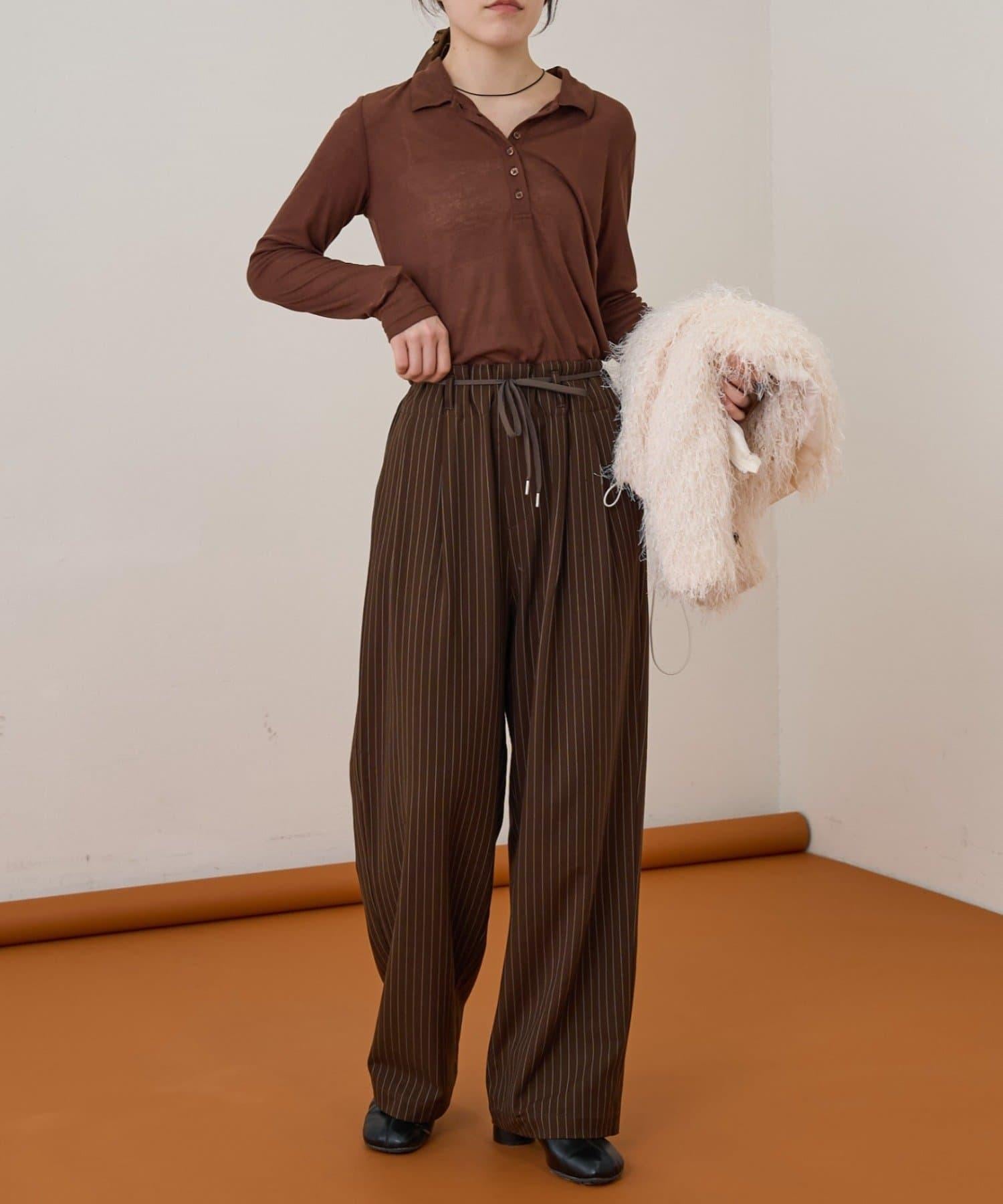 預約商品【收腰顯瘦!】附帶繫帶腰帶褶皺寬鬆休閒長褲