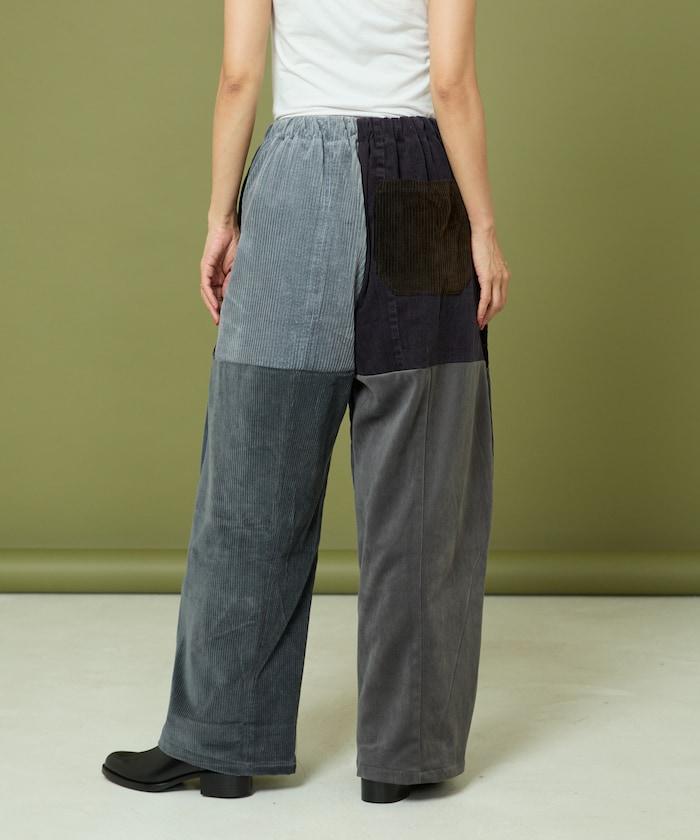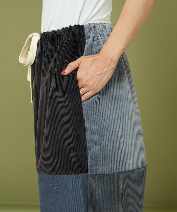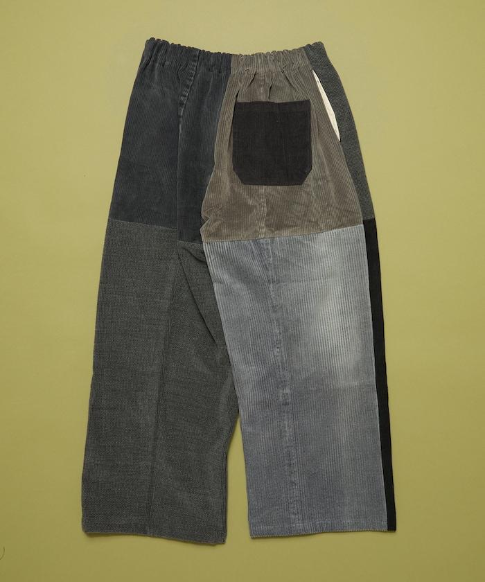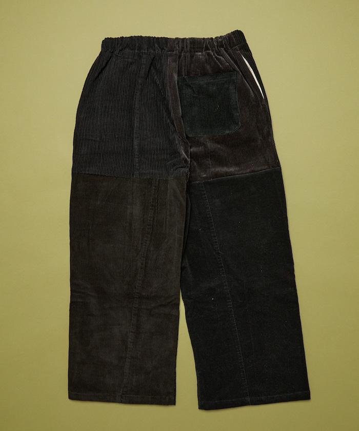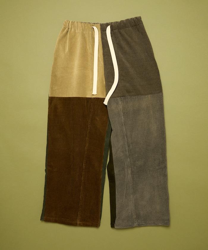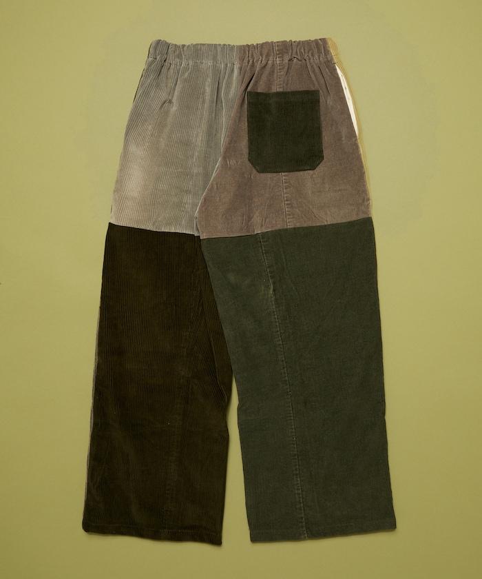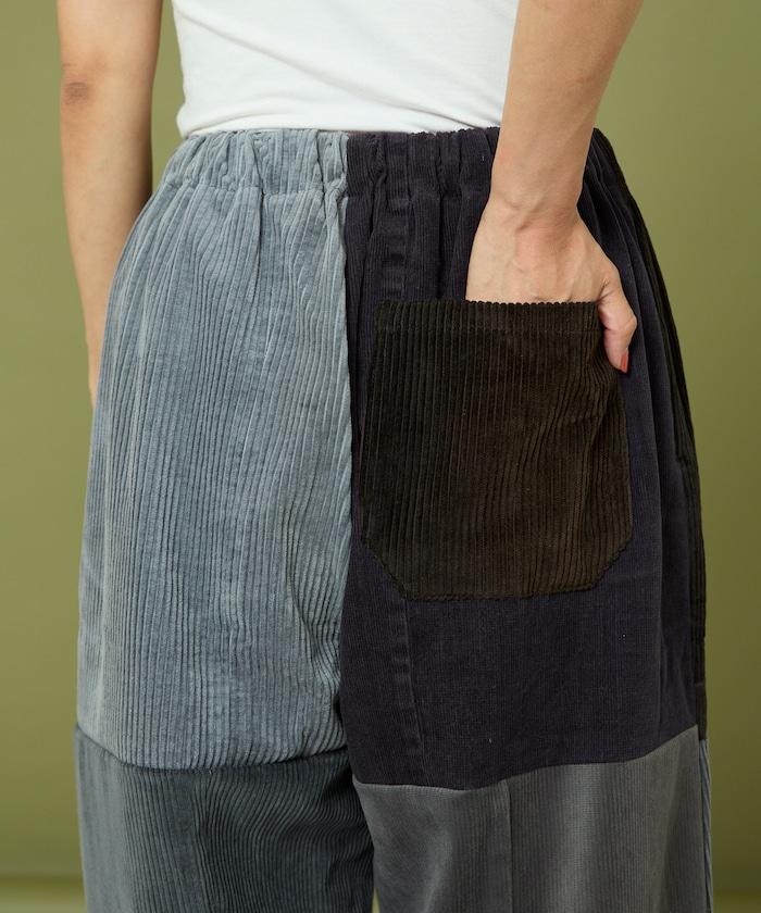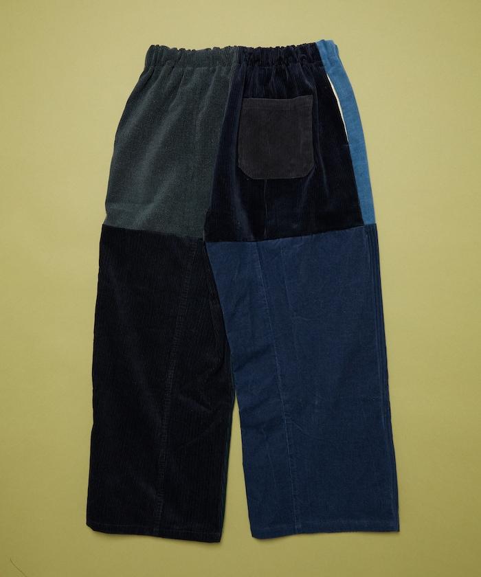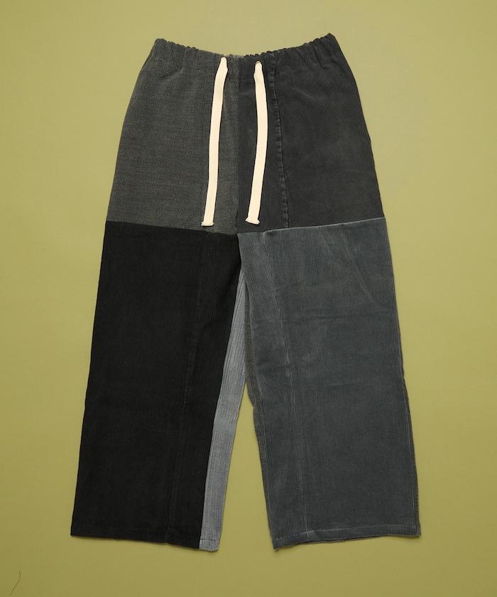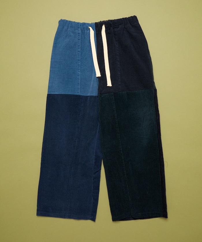 我們將四條用過的彩色燈芯絨長褲拆開,重新組合成一條褲子。