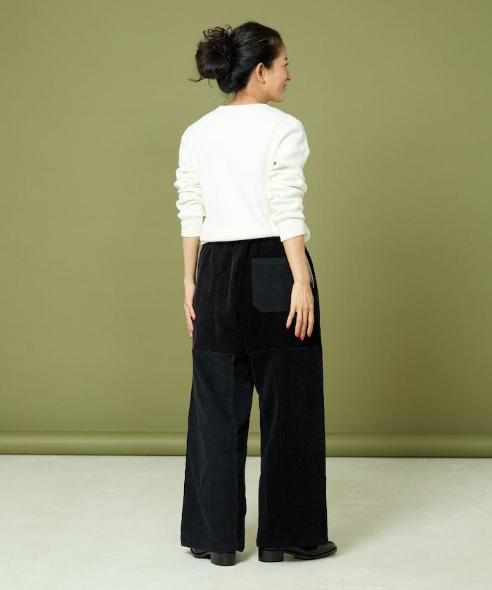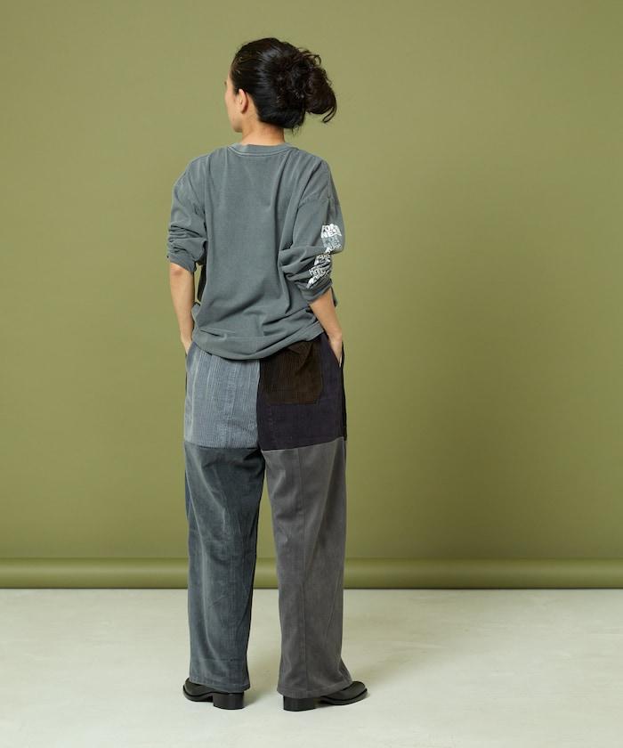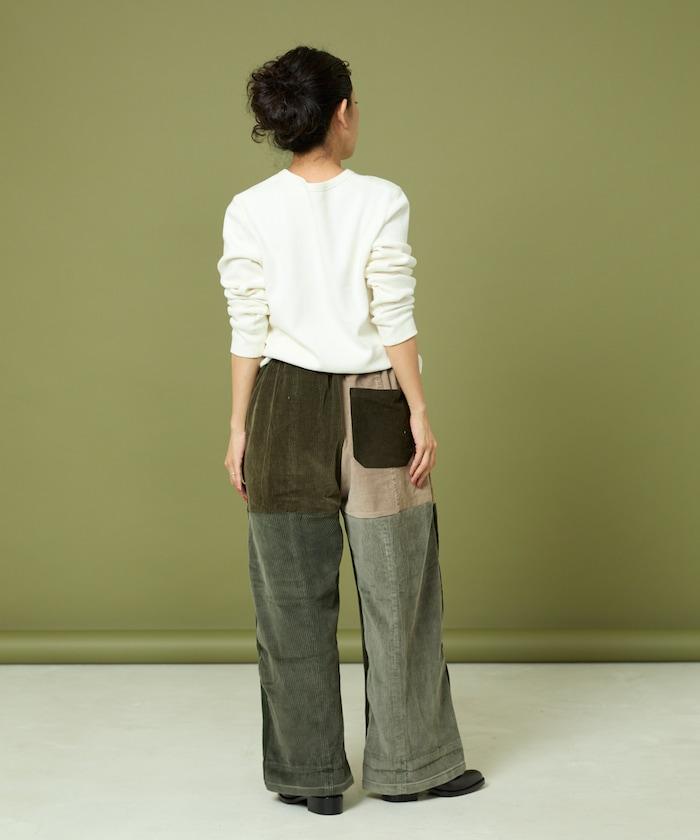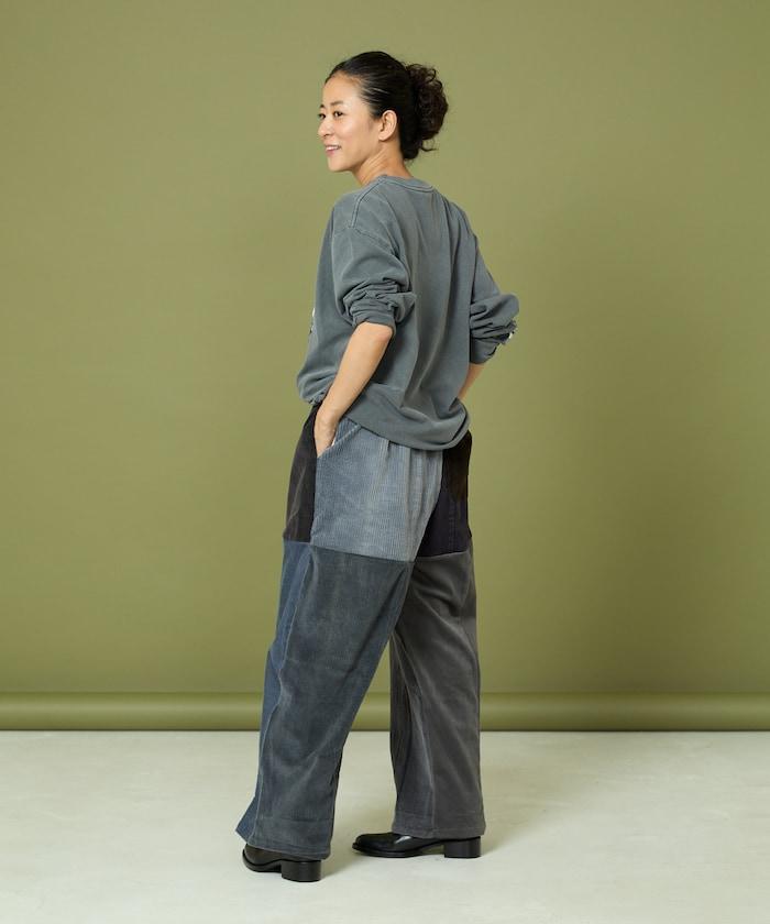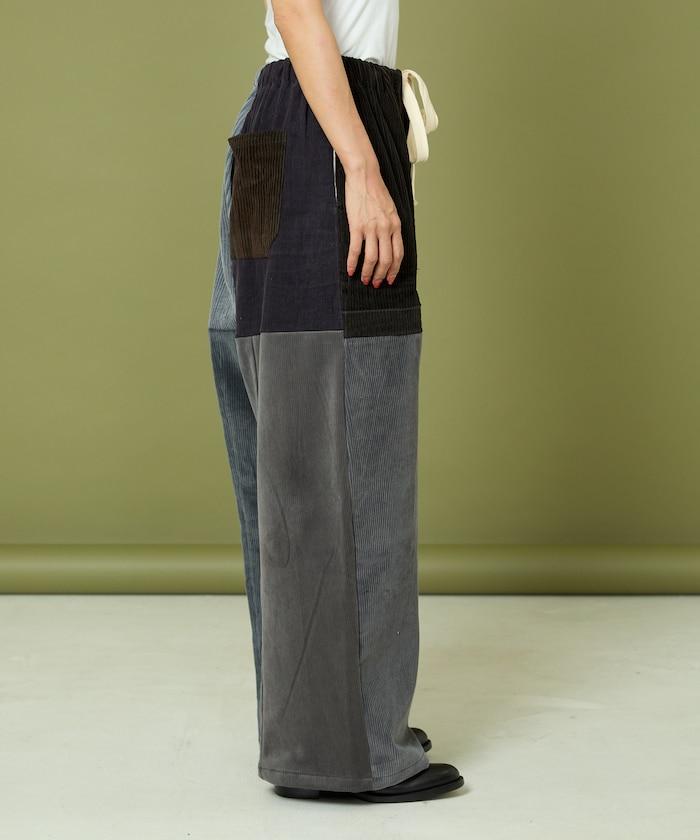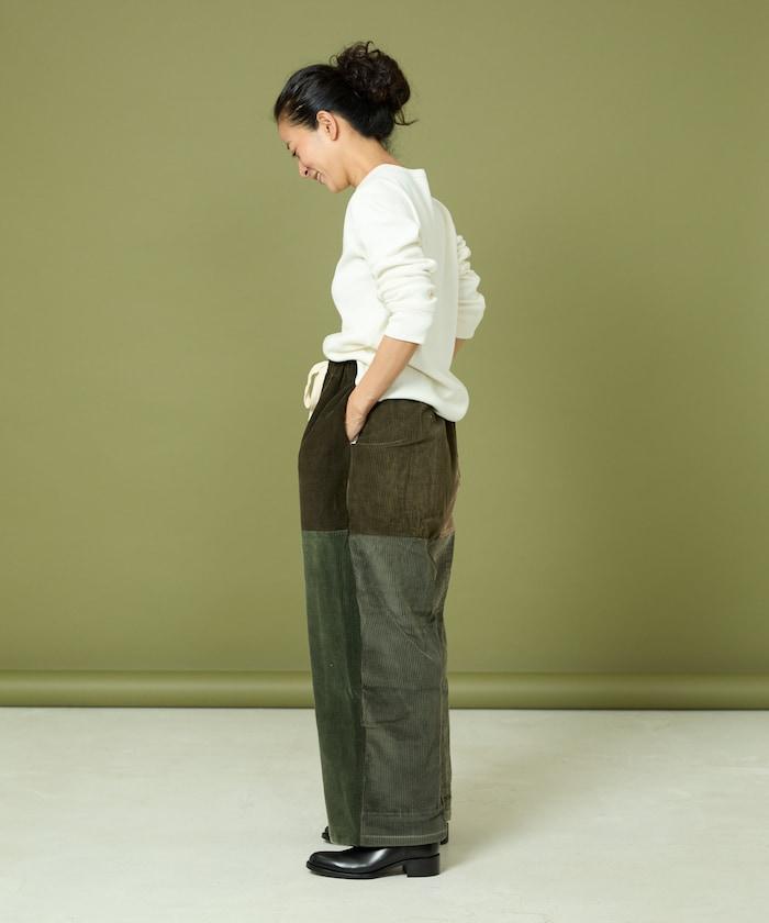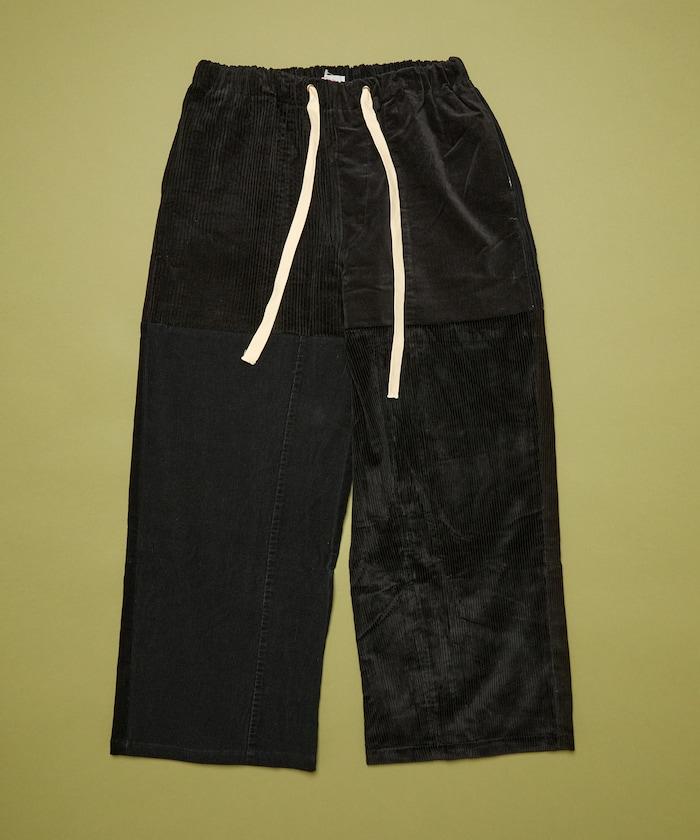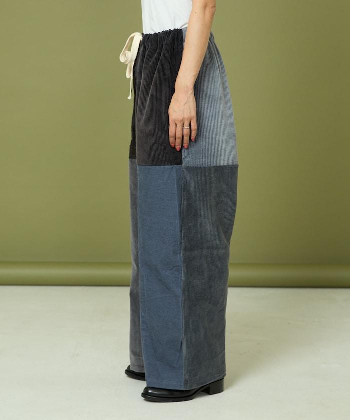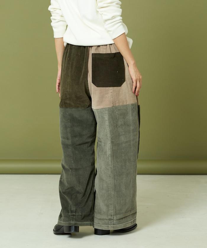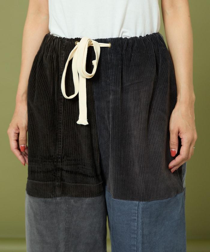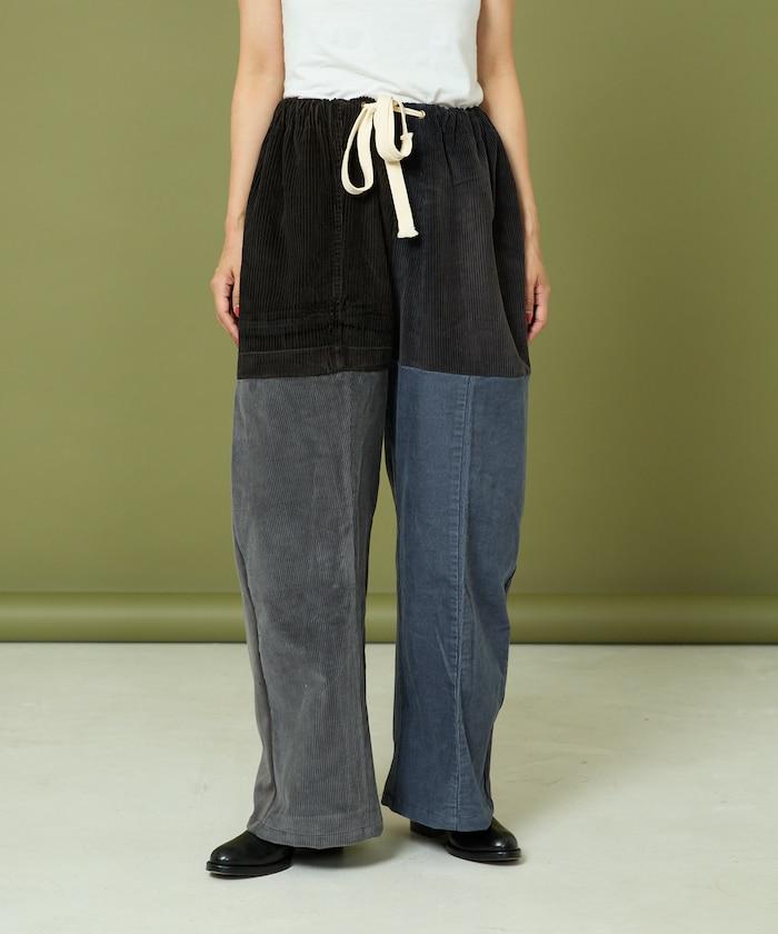 我們將四條用過的彩色燈芯絨長褲拆開,重新組合成一條褲子。