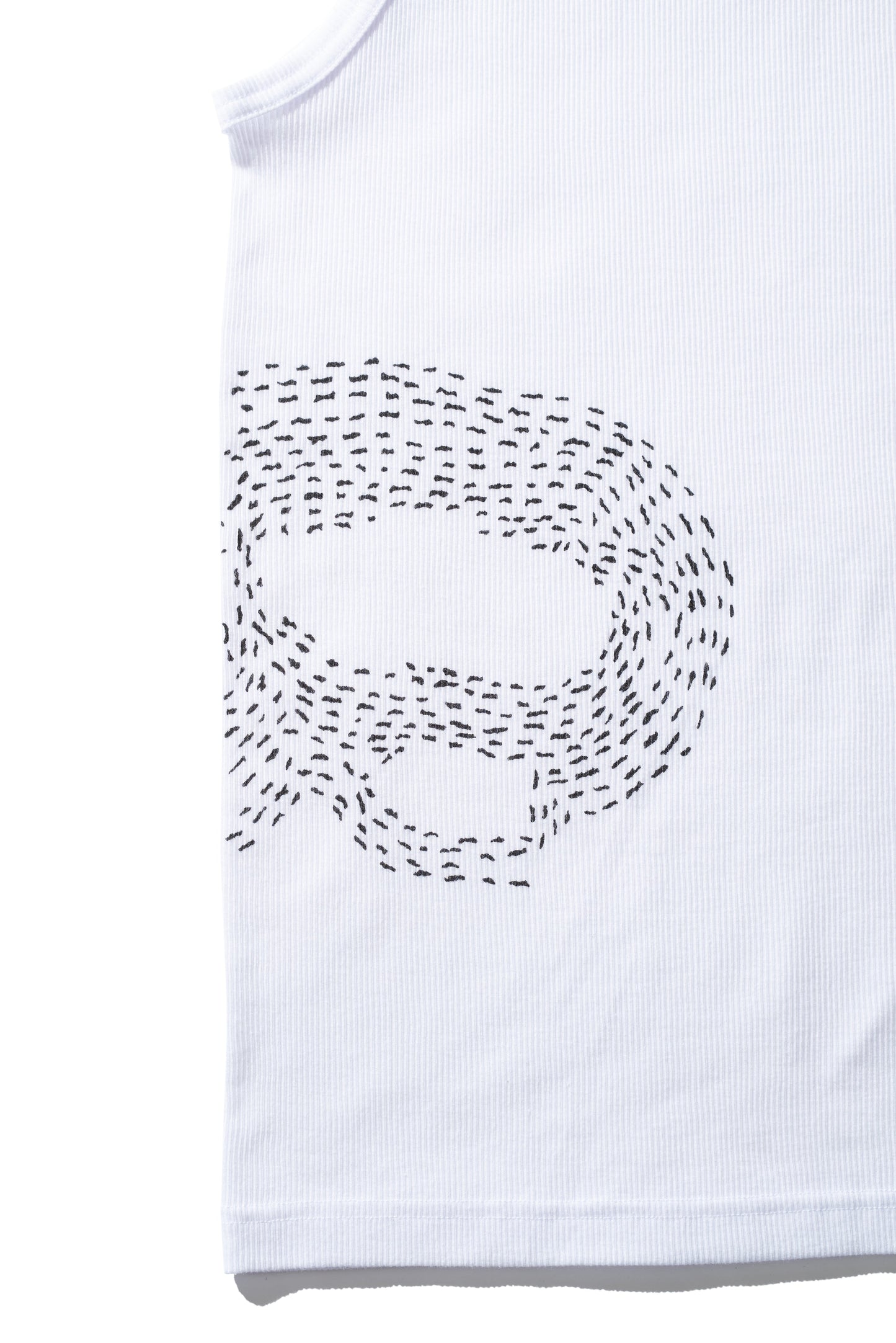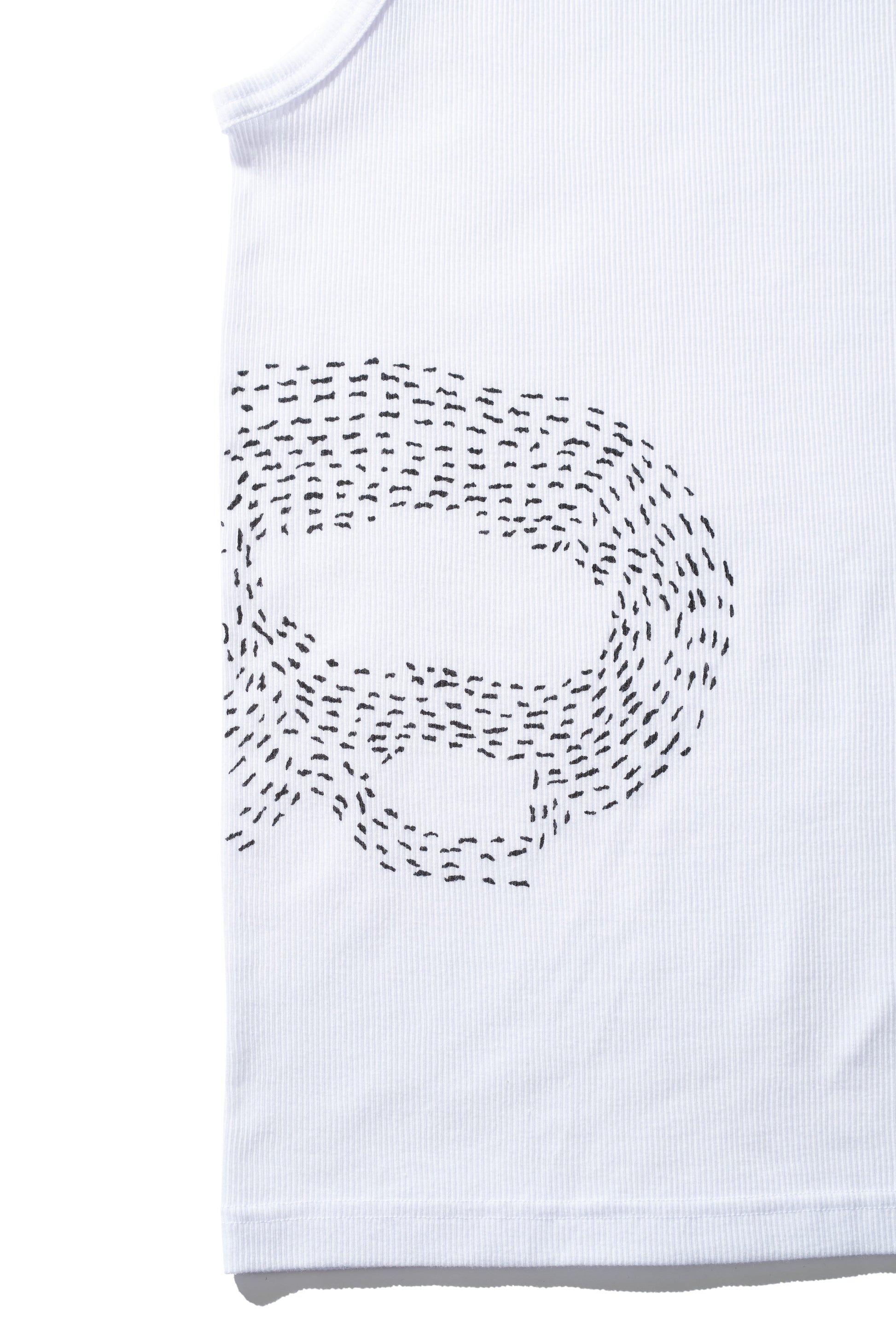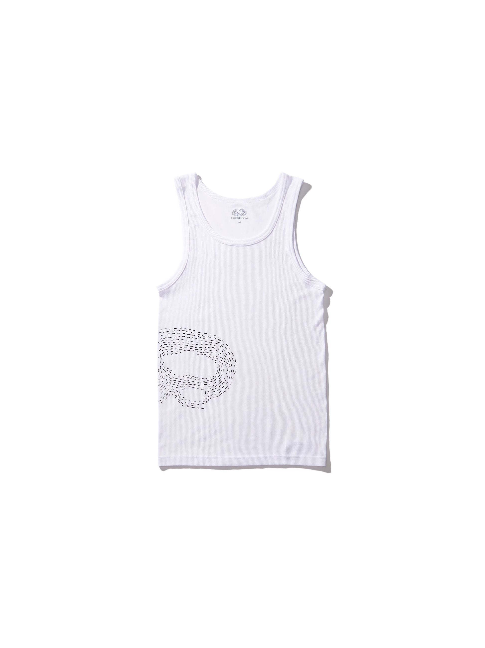 與美國👍內衣製造商 "Fruit of the Loom®"合作。羅紋背心是該品牌👍的單品之一,腹部印有 SandWaterr "SASHIKO" 圖案。