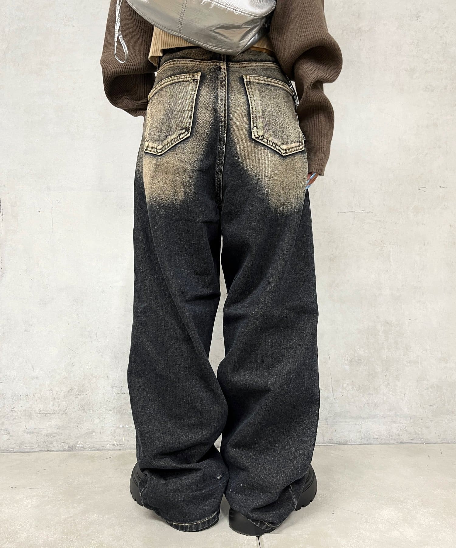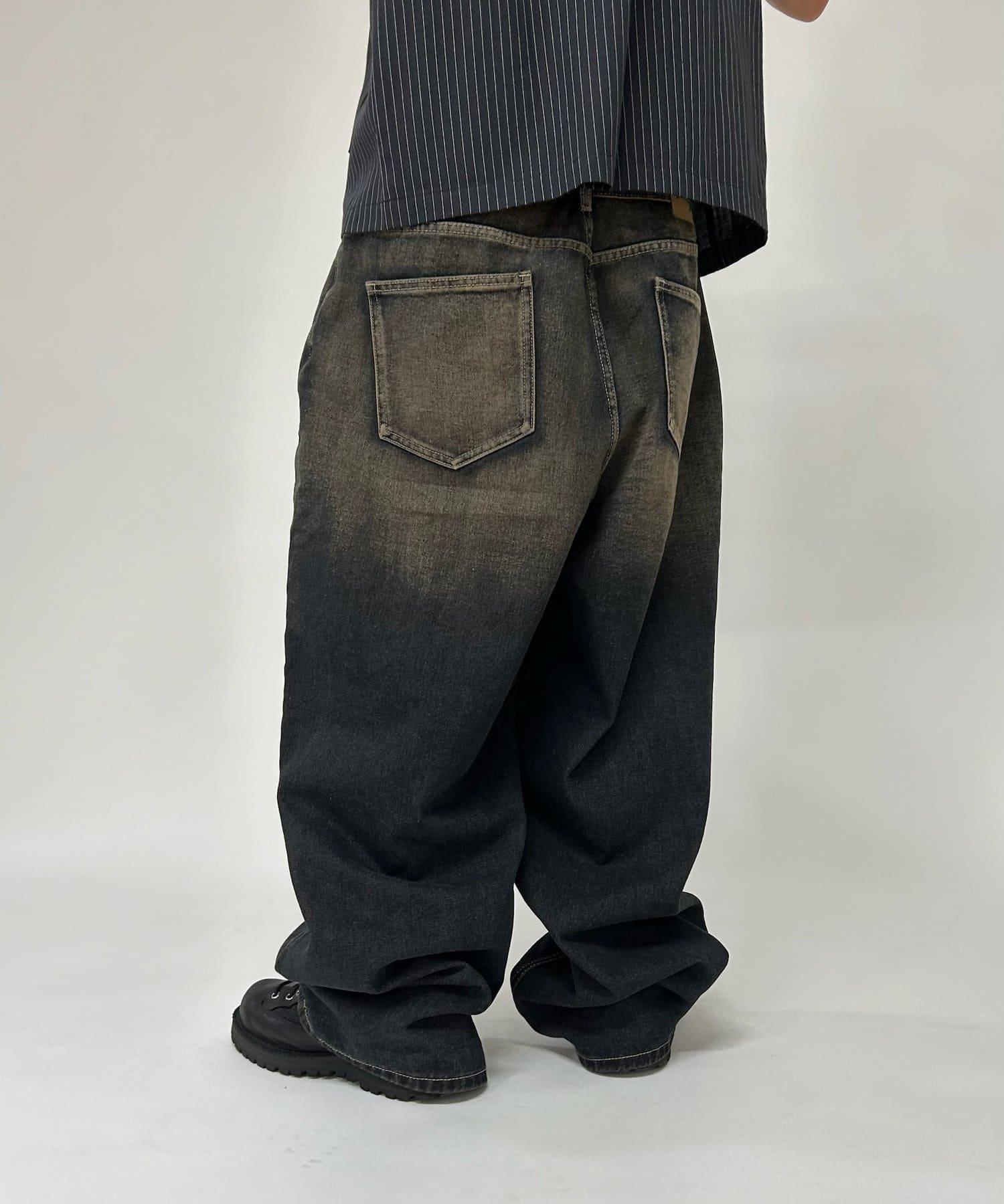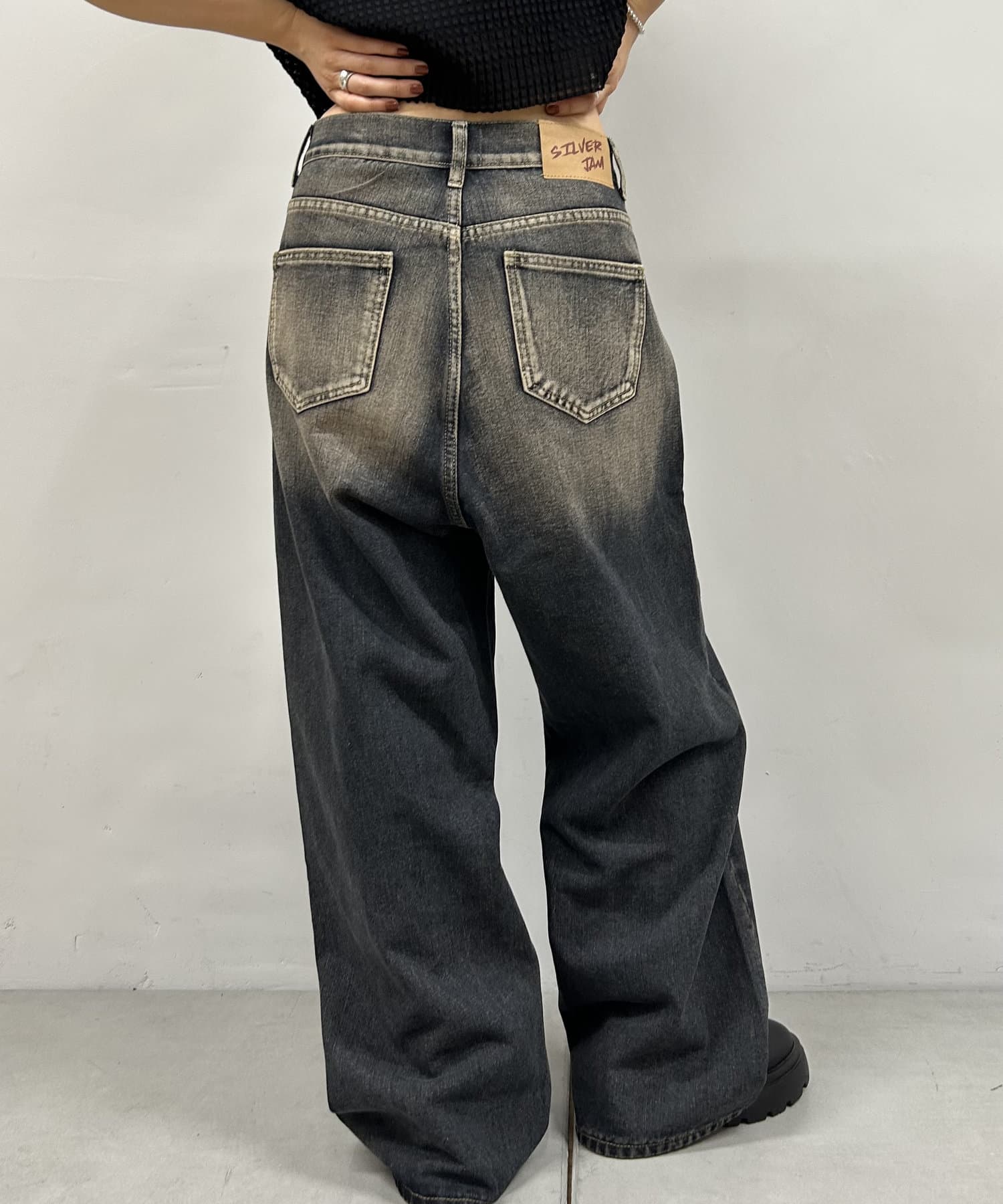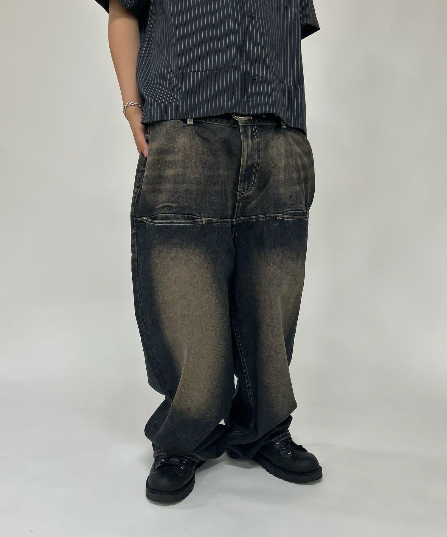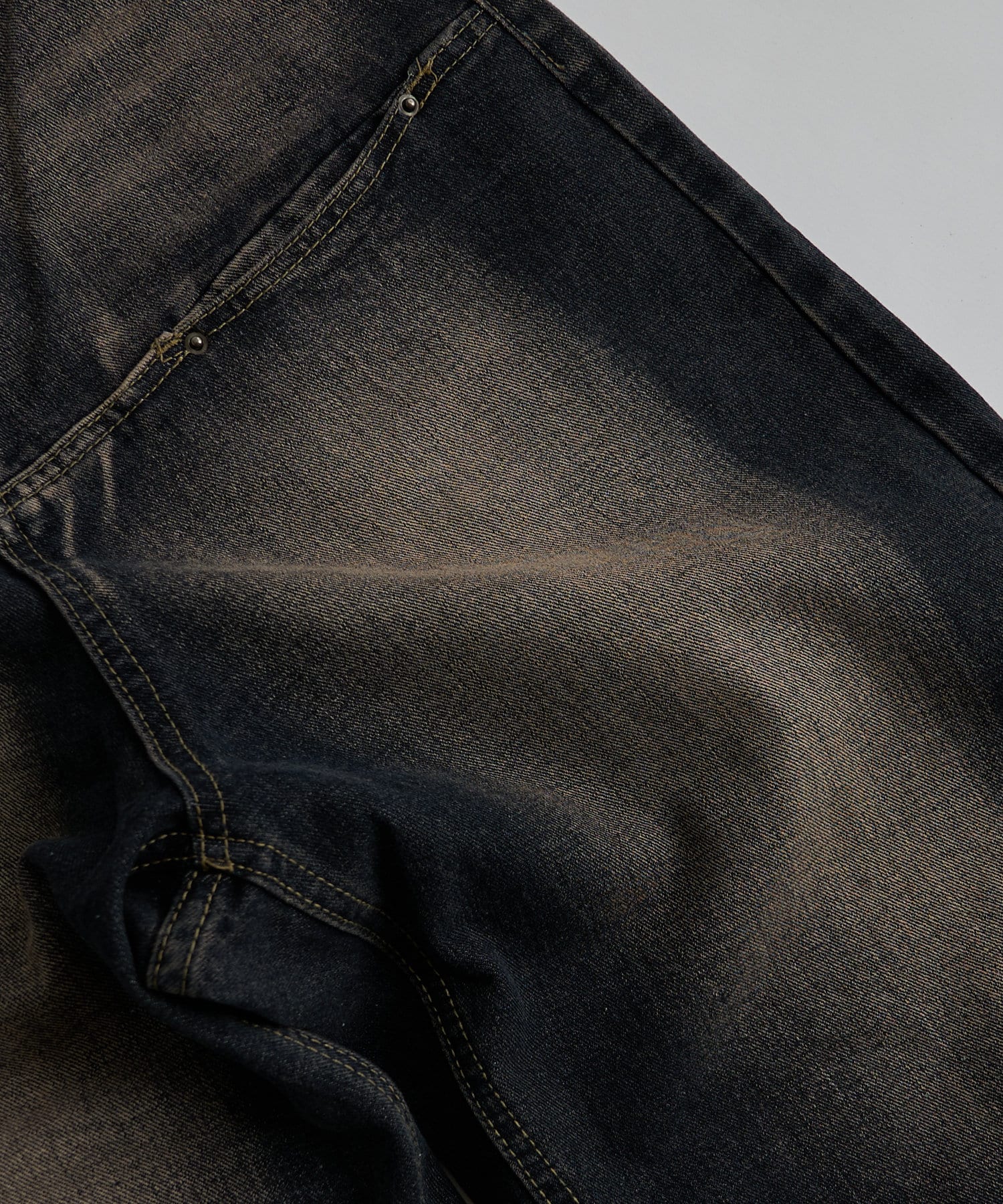 具有衝擊力的噴砂牛仔褲,給人以街頭的印象。
