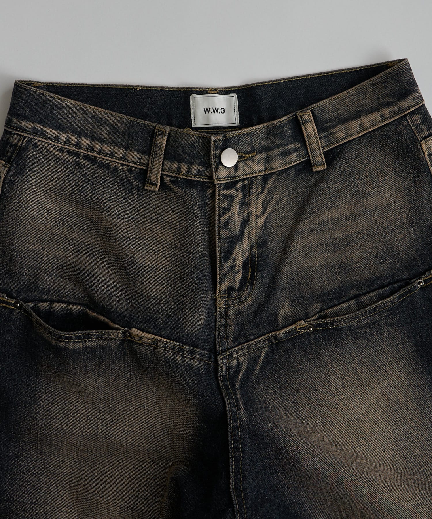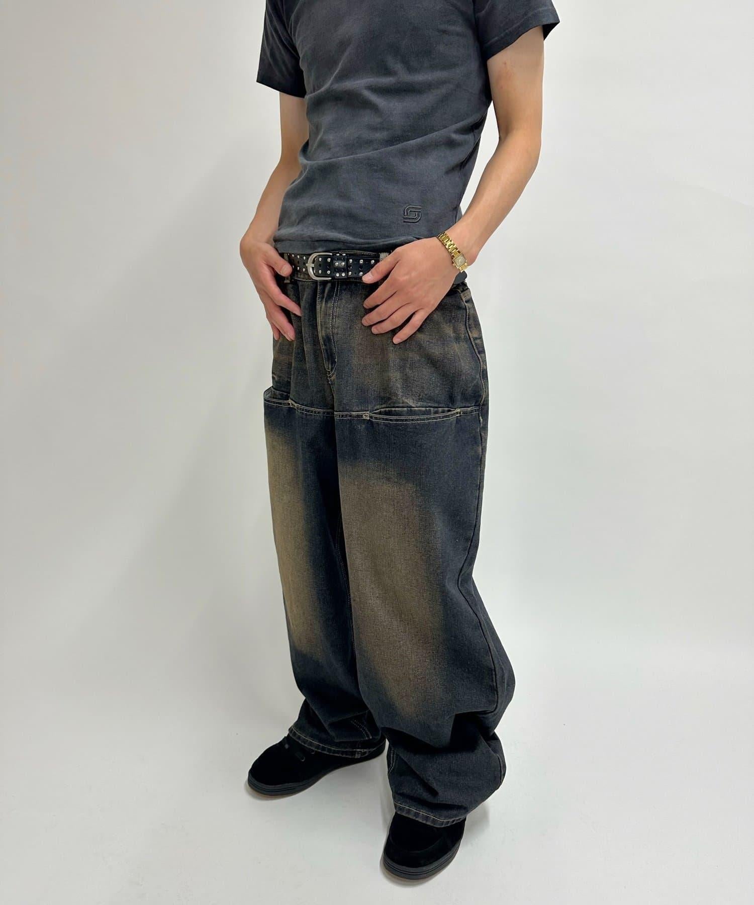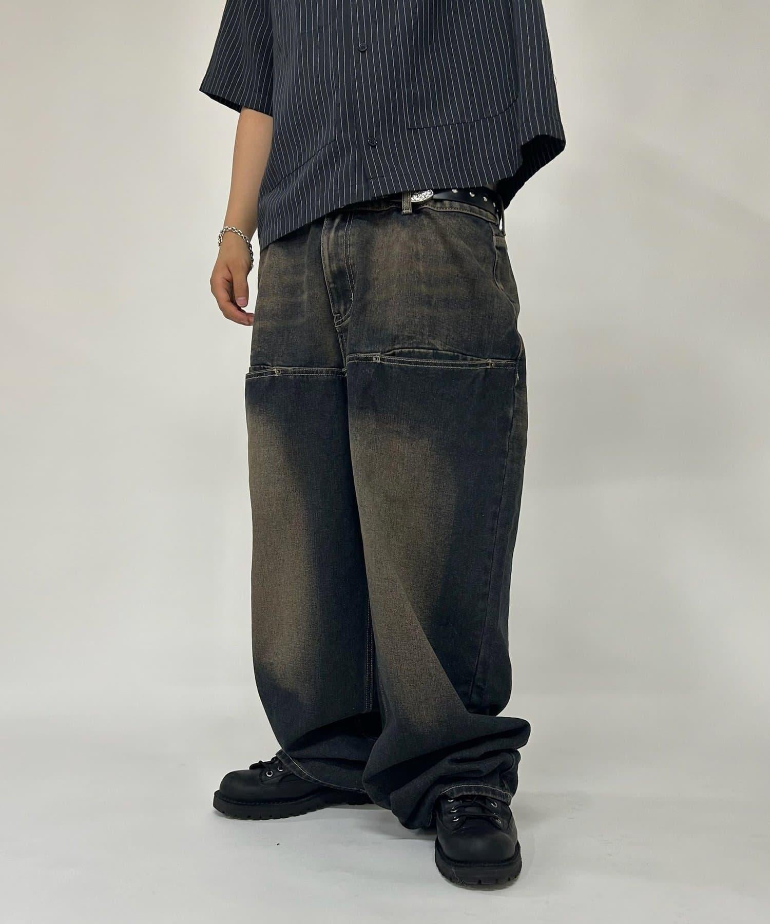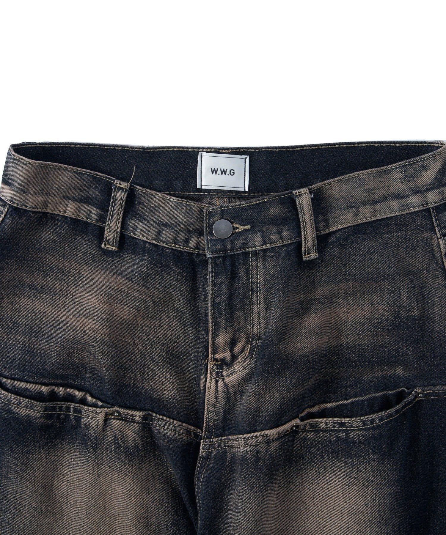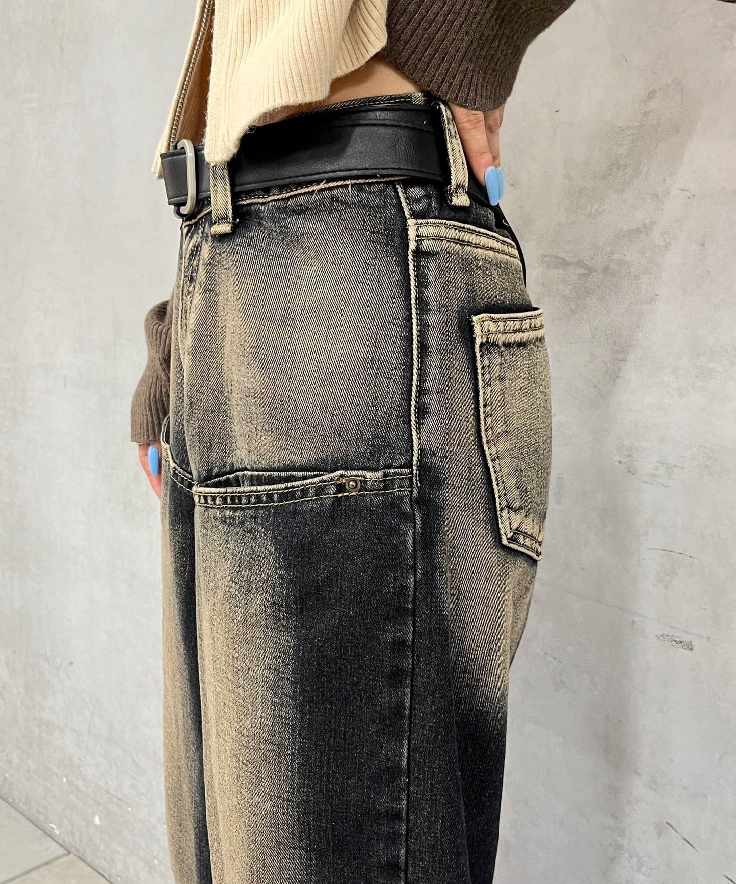 具有衝擊力的噴砂牛仔褲,給人以街頭的印象。