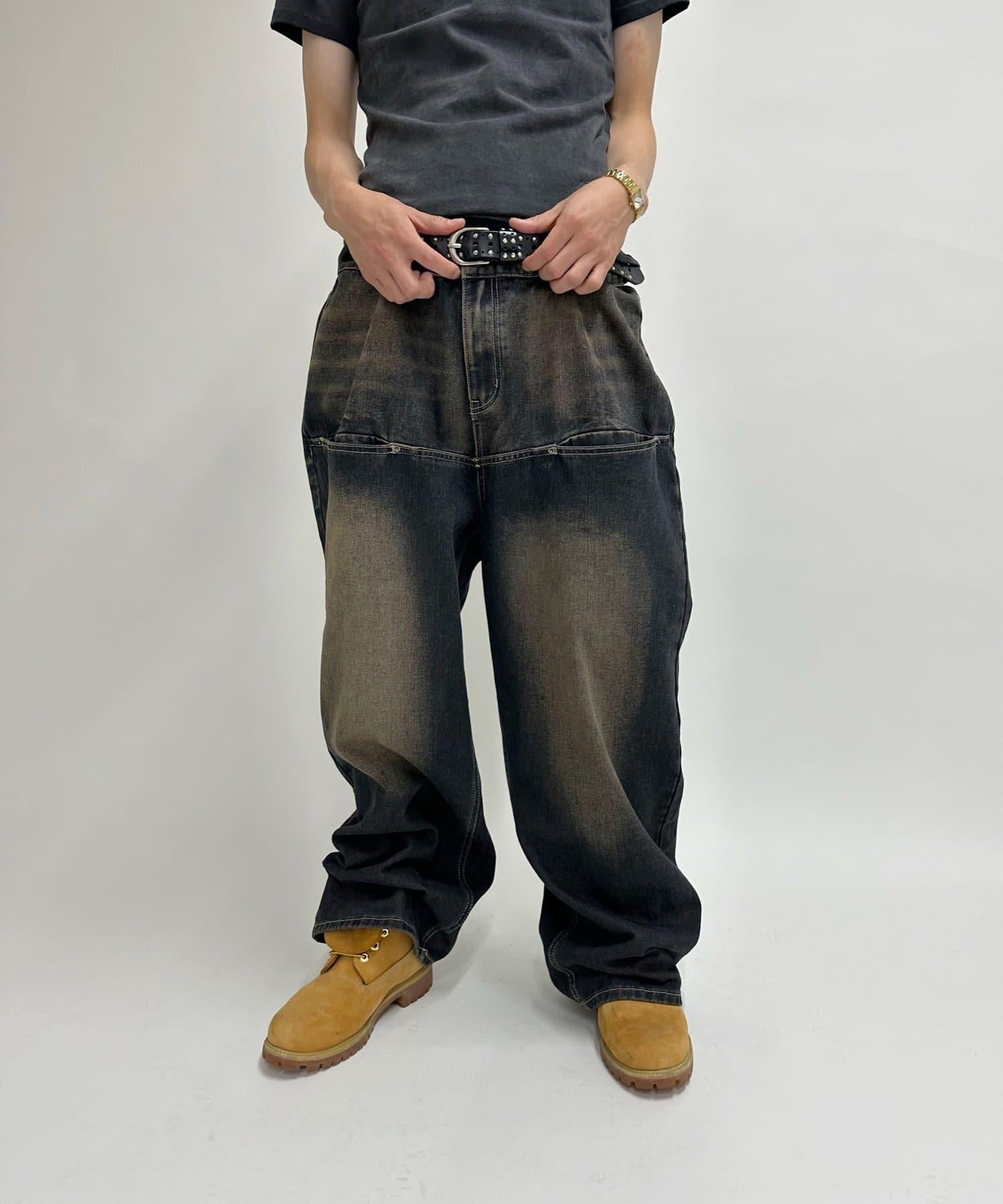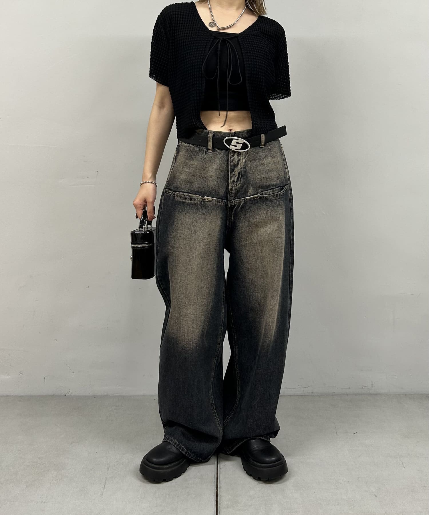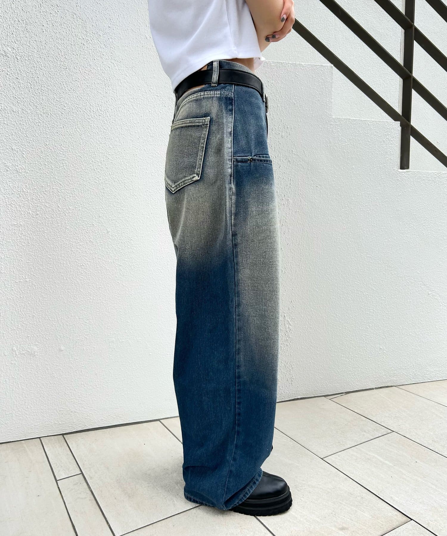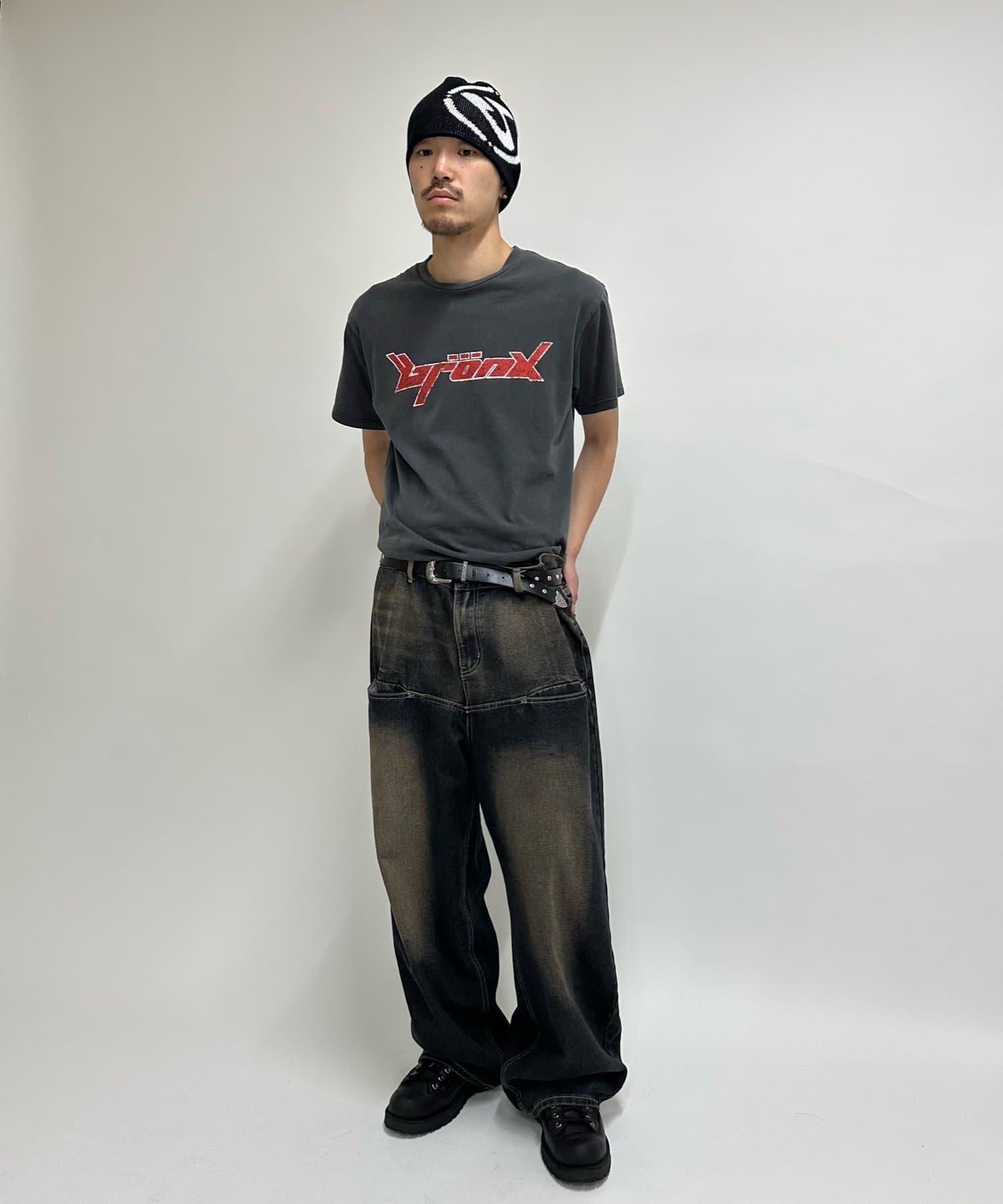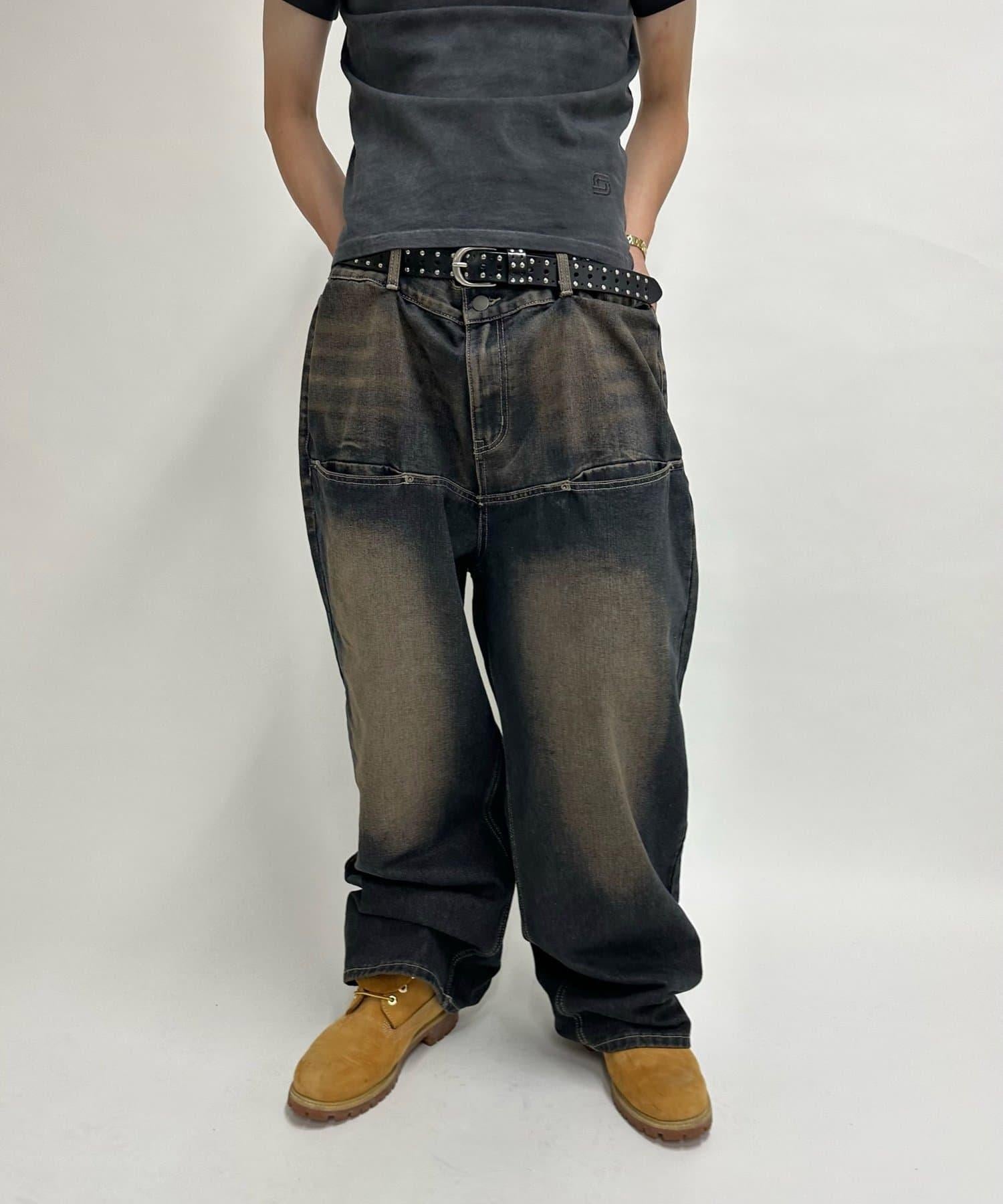 具有衝擊力的噴砂牛仔褲,給人以街頭的印象。