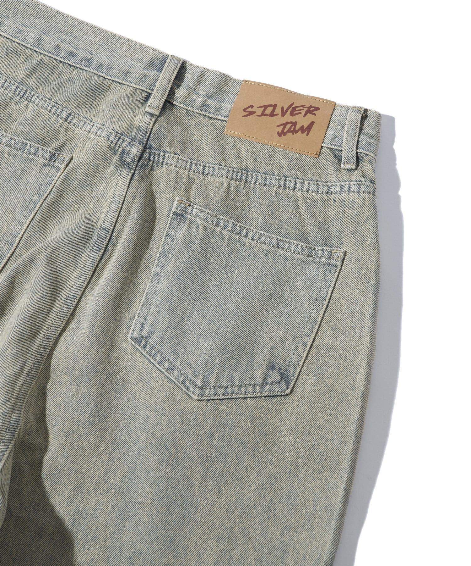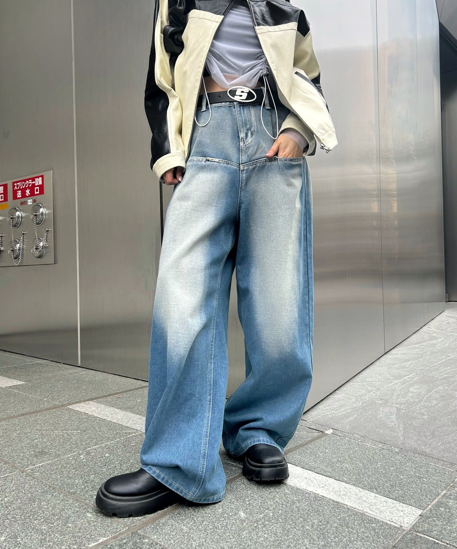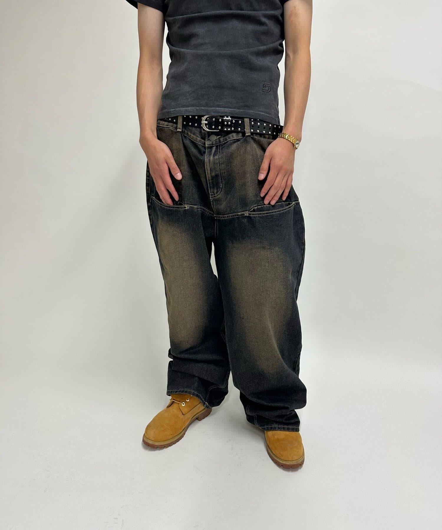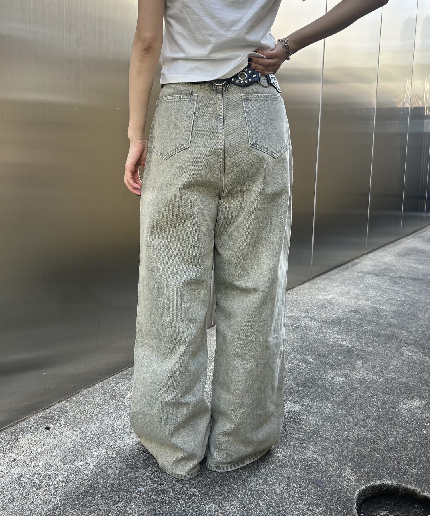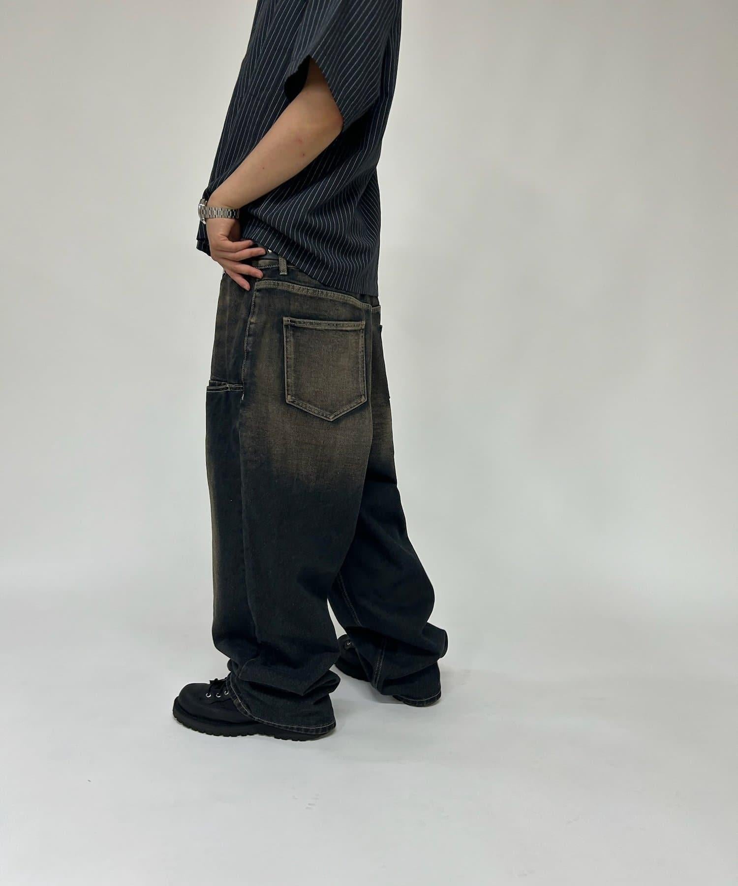 具有衝擊力的噴砂牛仔褲,給人以街頭的印象。