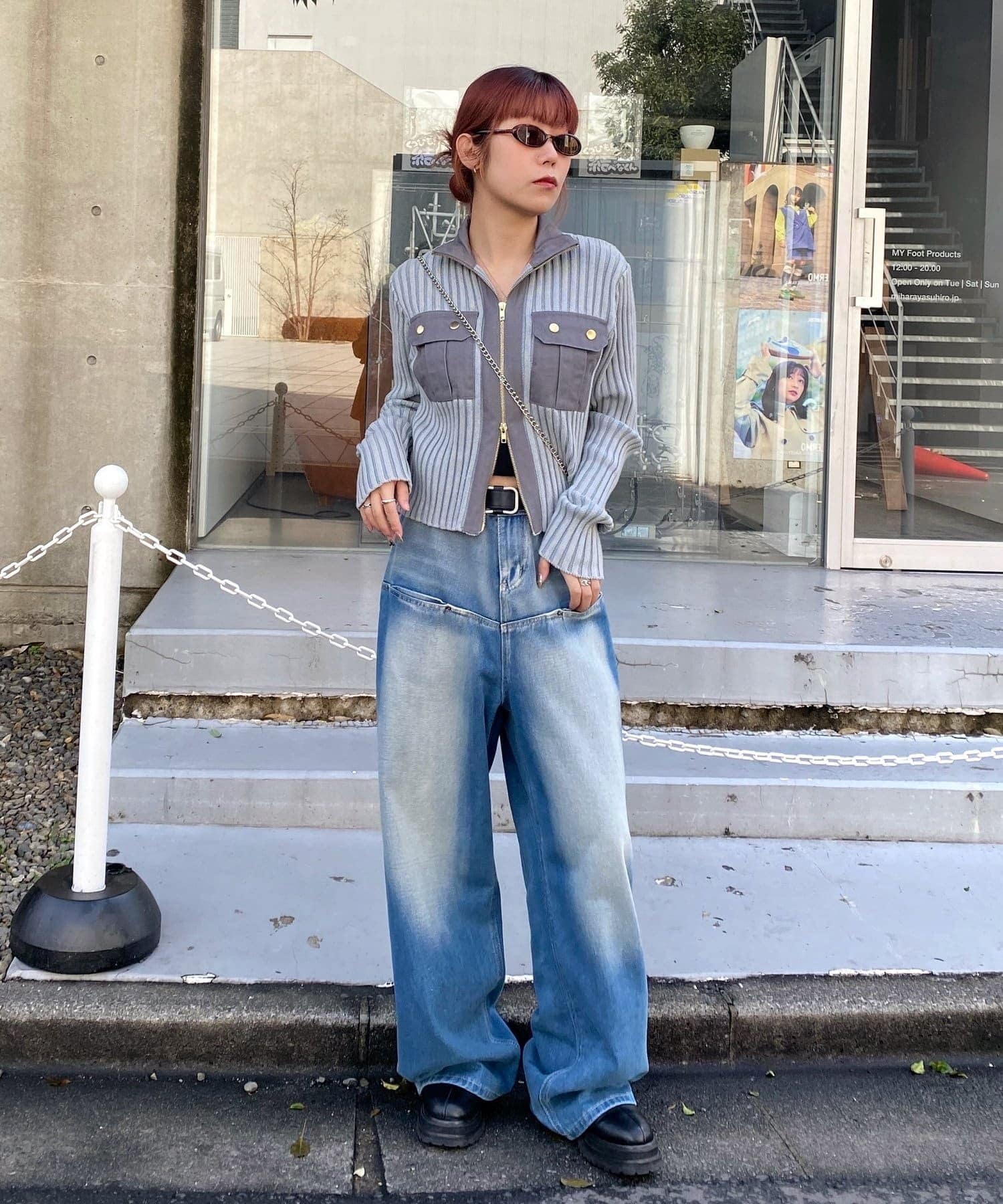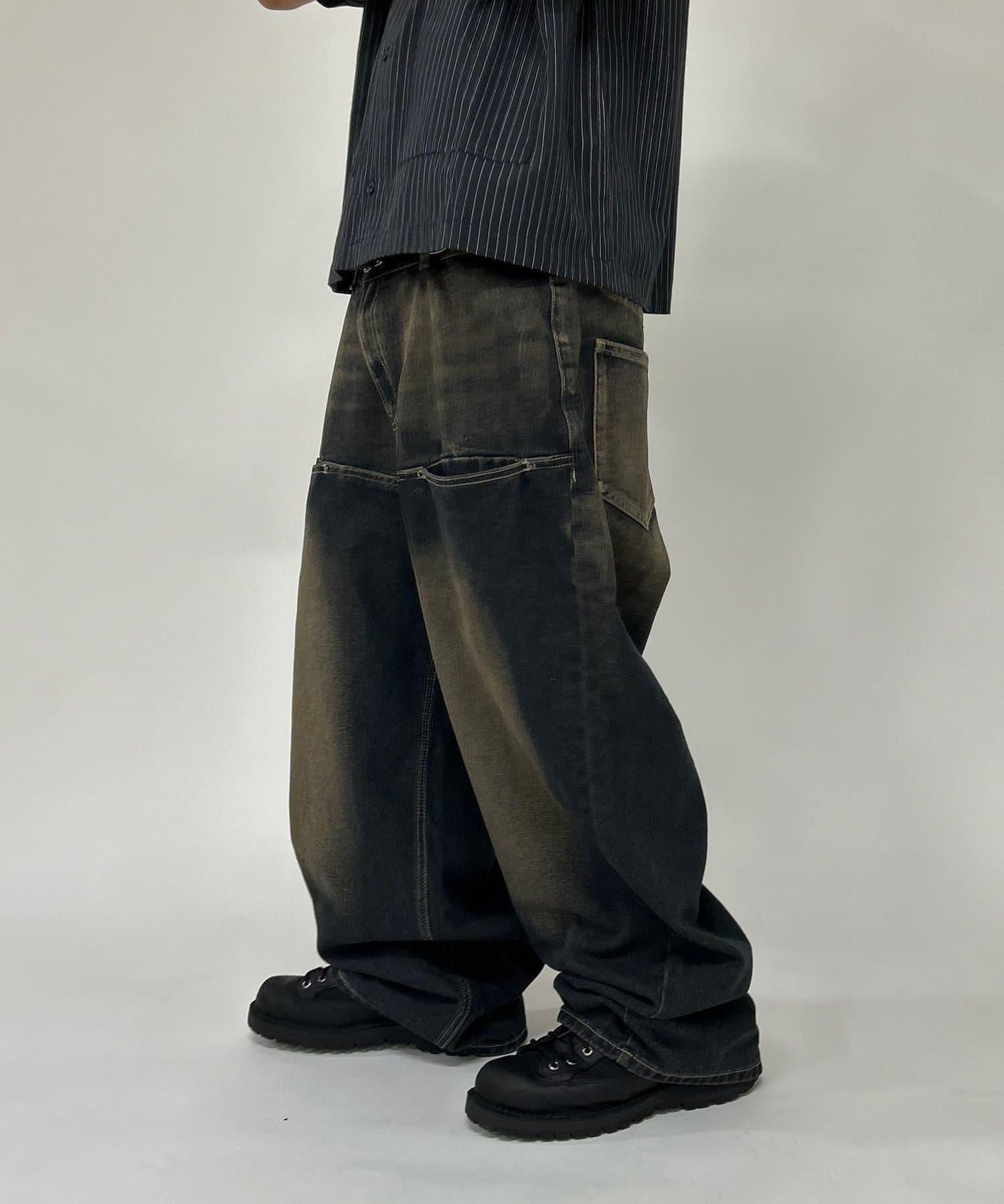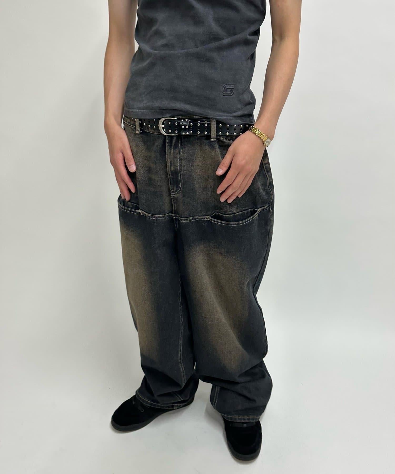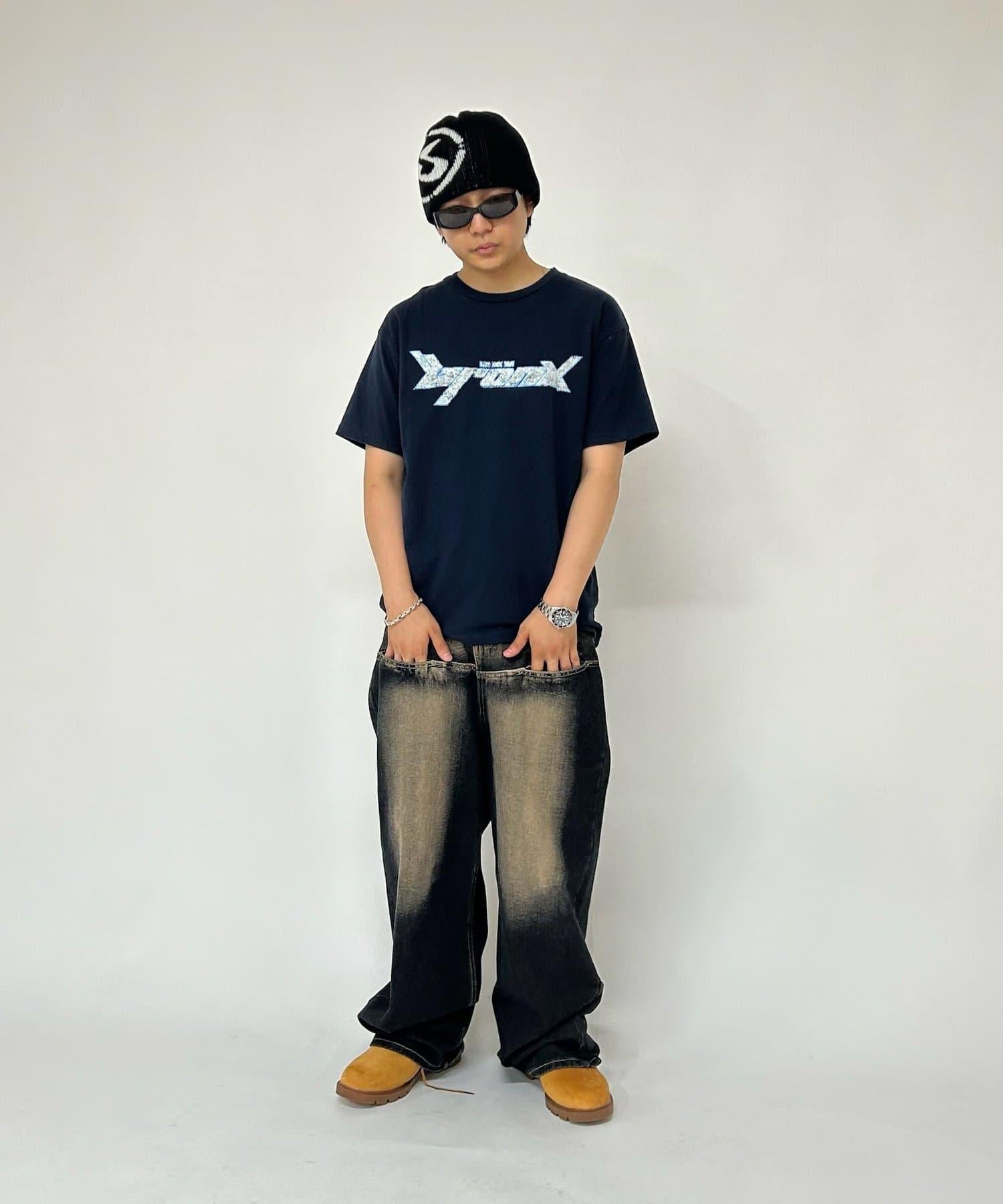 具有衝擊力的噴砂牛仔褲,給人以街頭的印象。