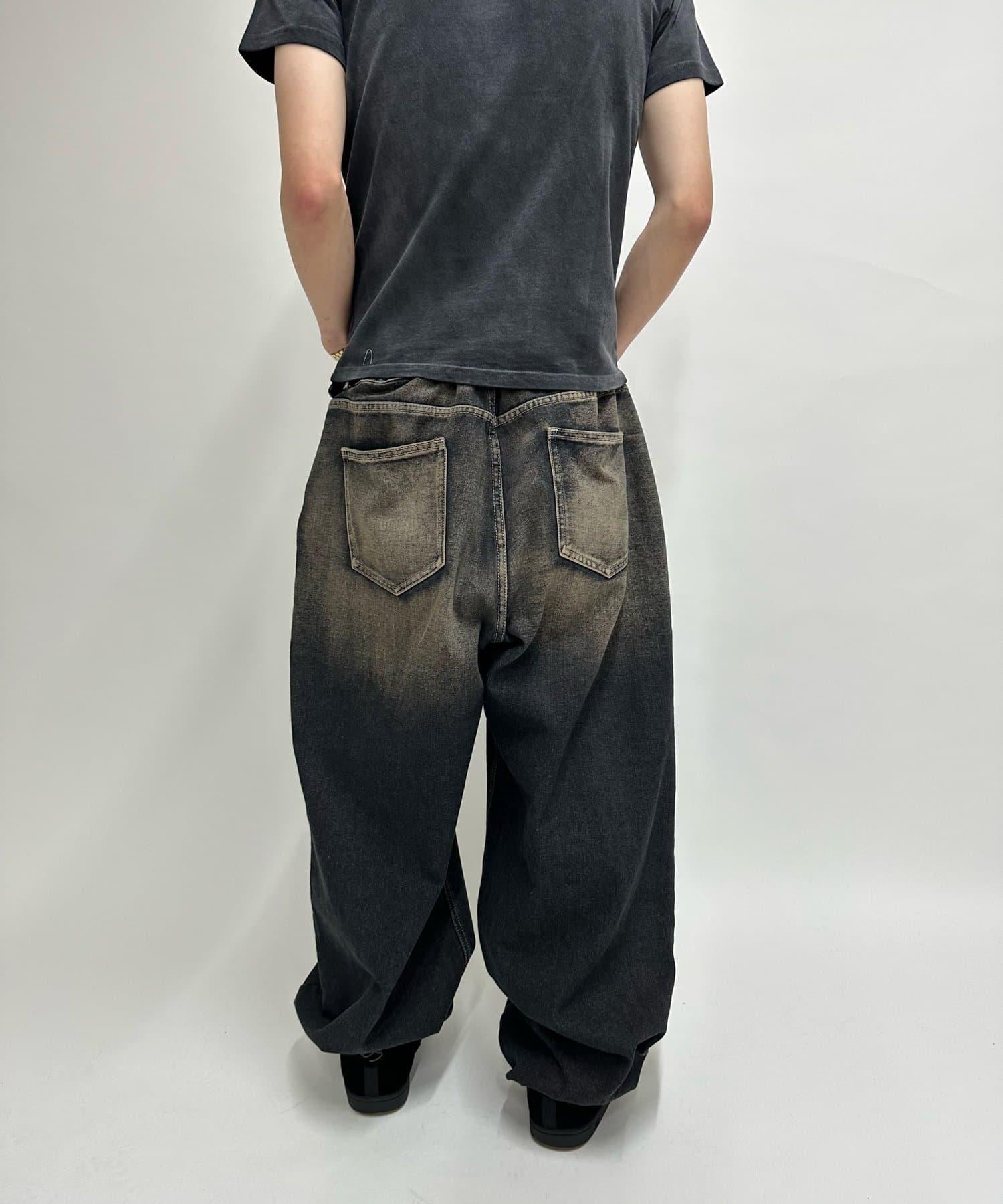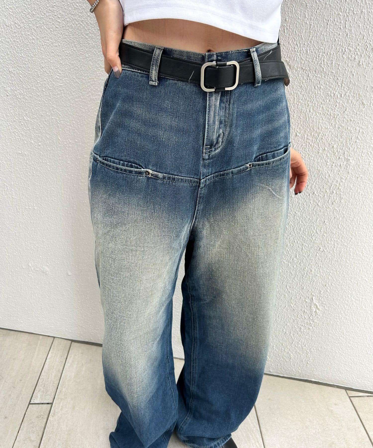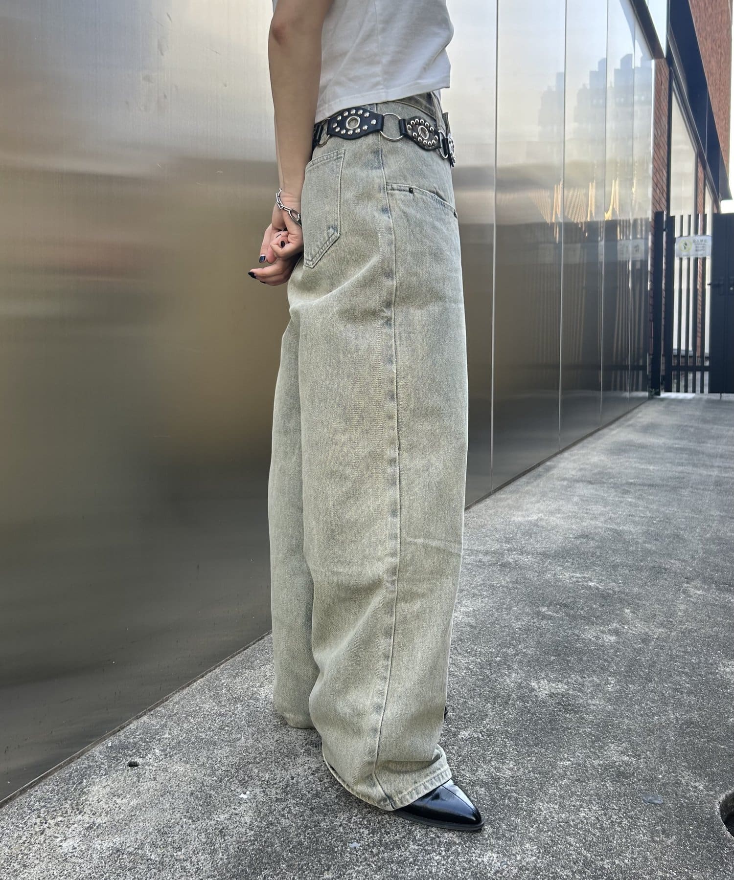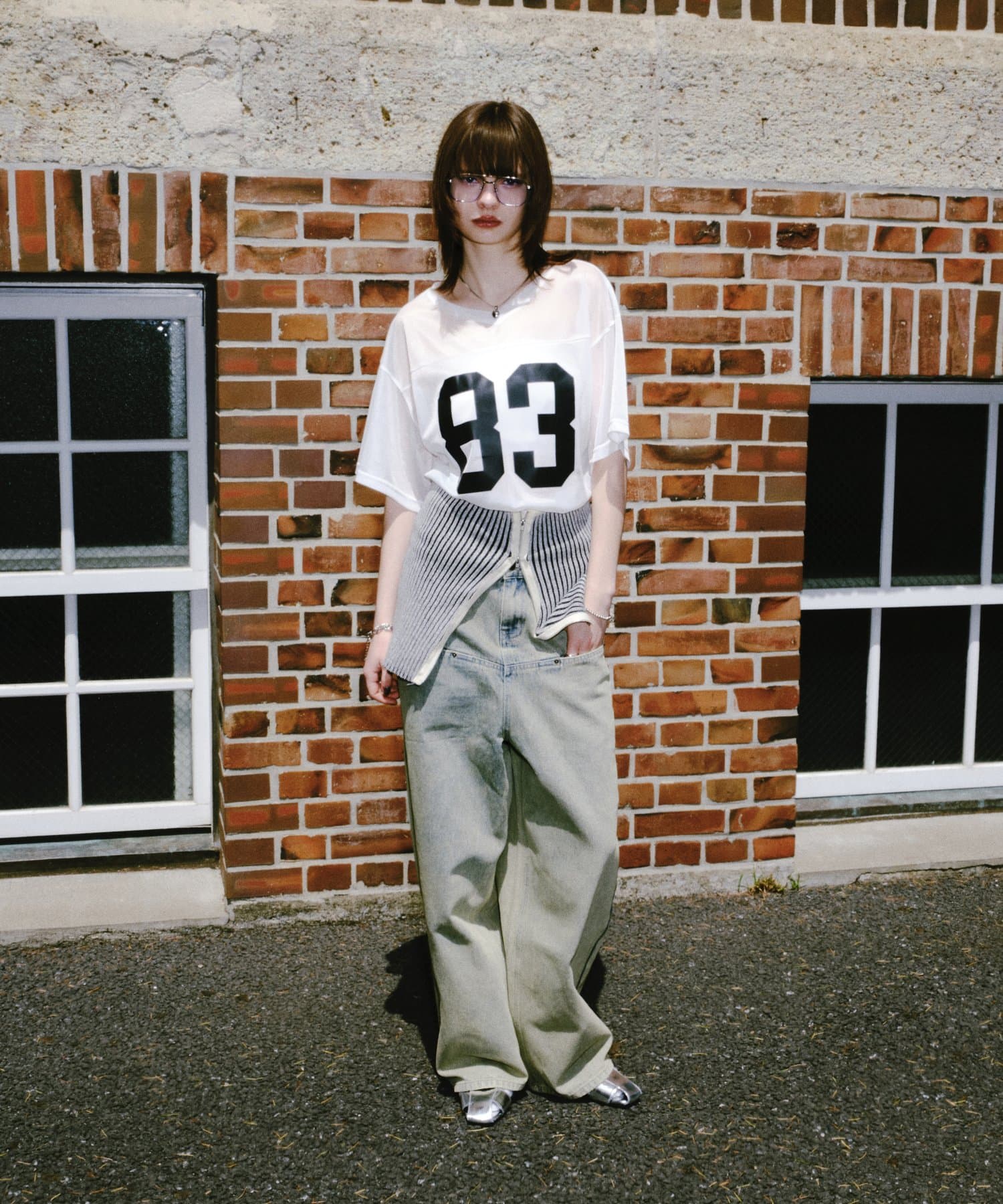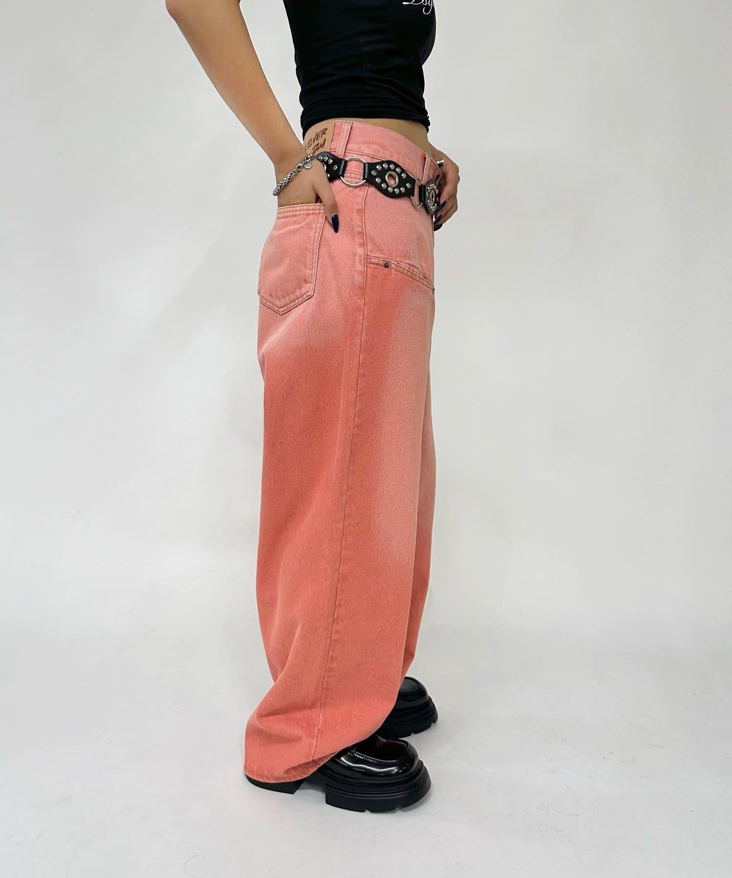 具有衝擊力的噴砂牛仔褲,給人以街頭的印象。