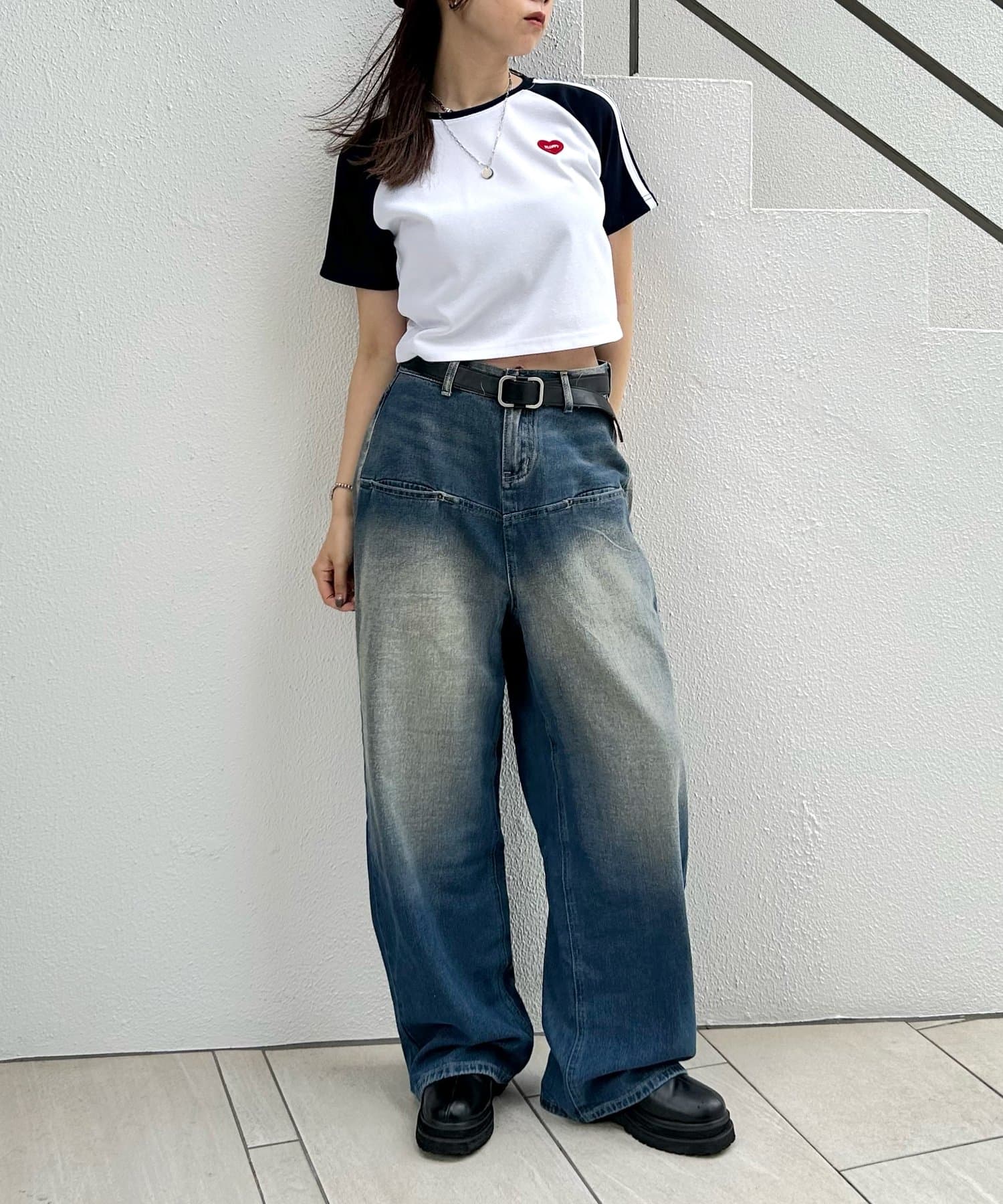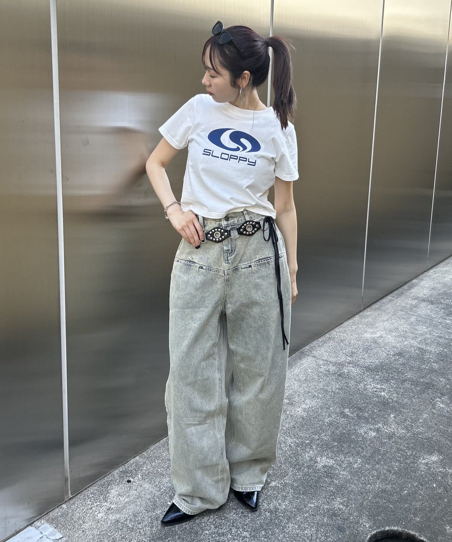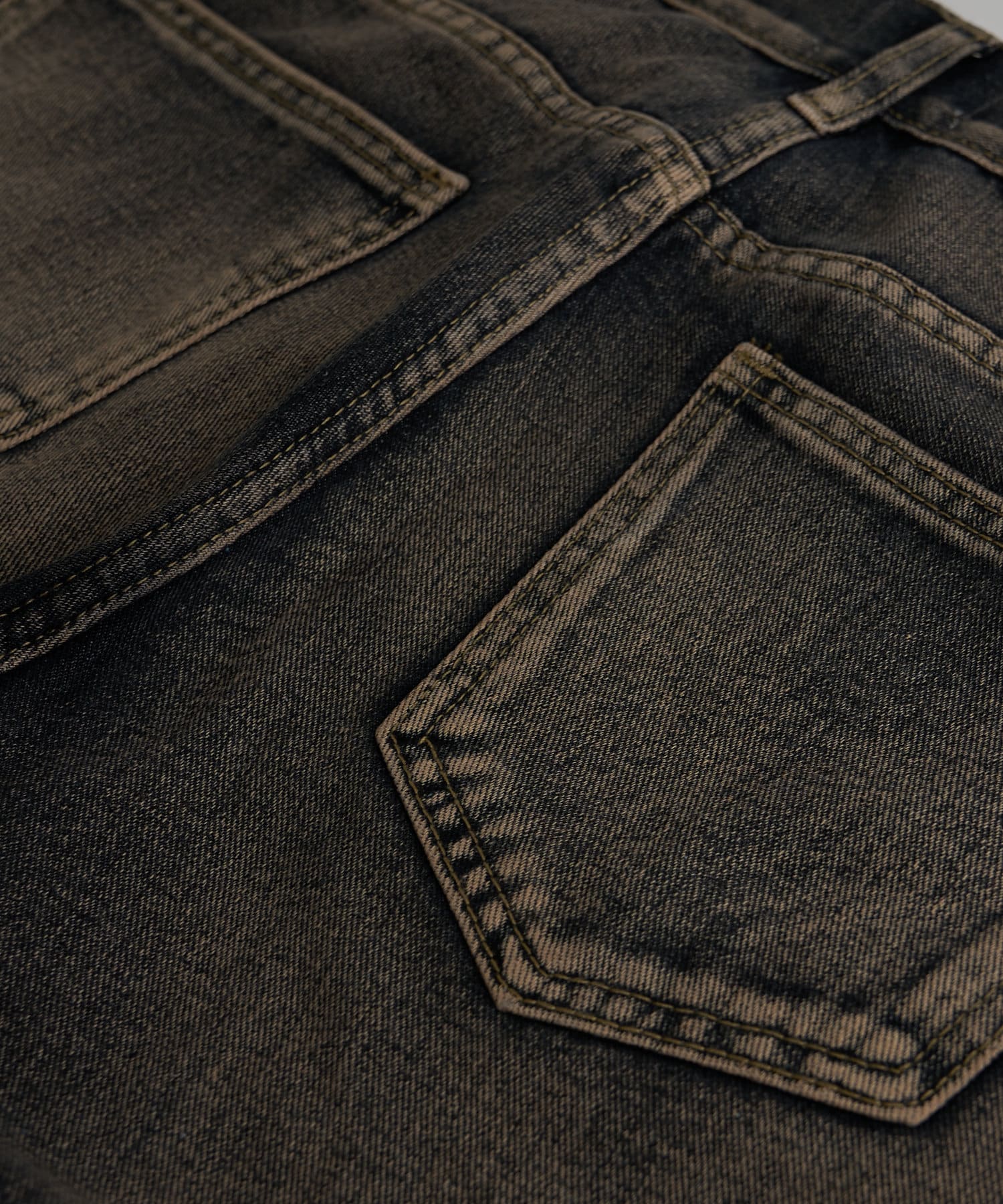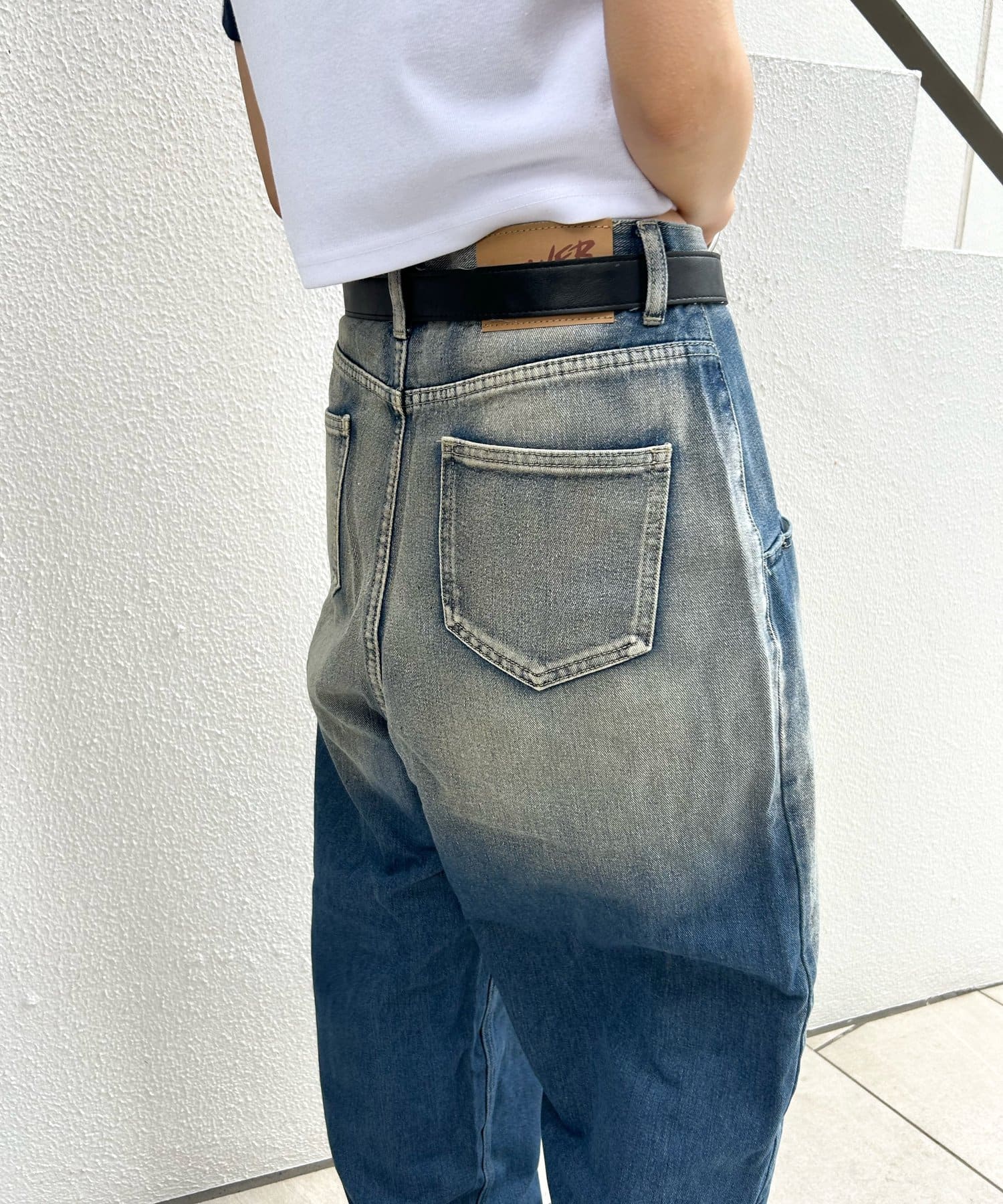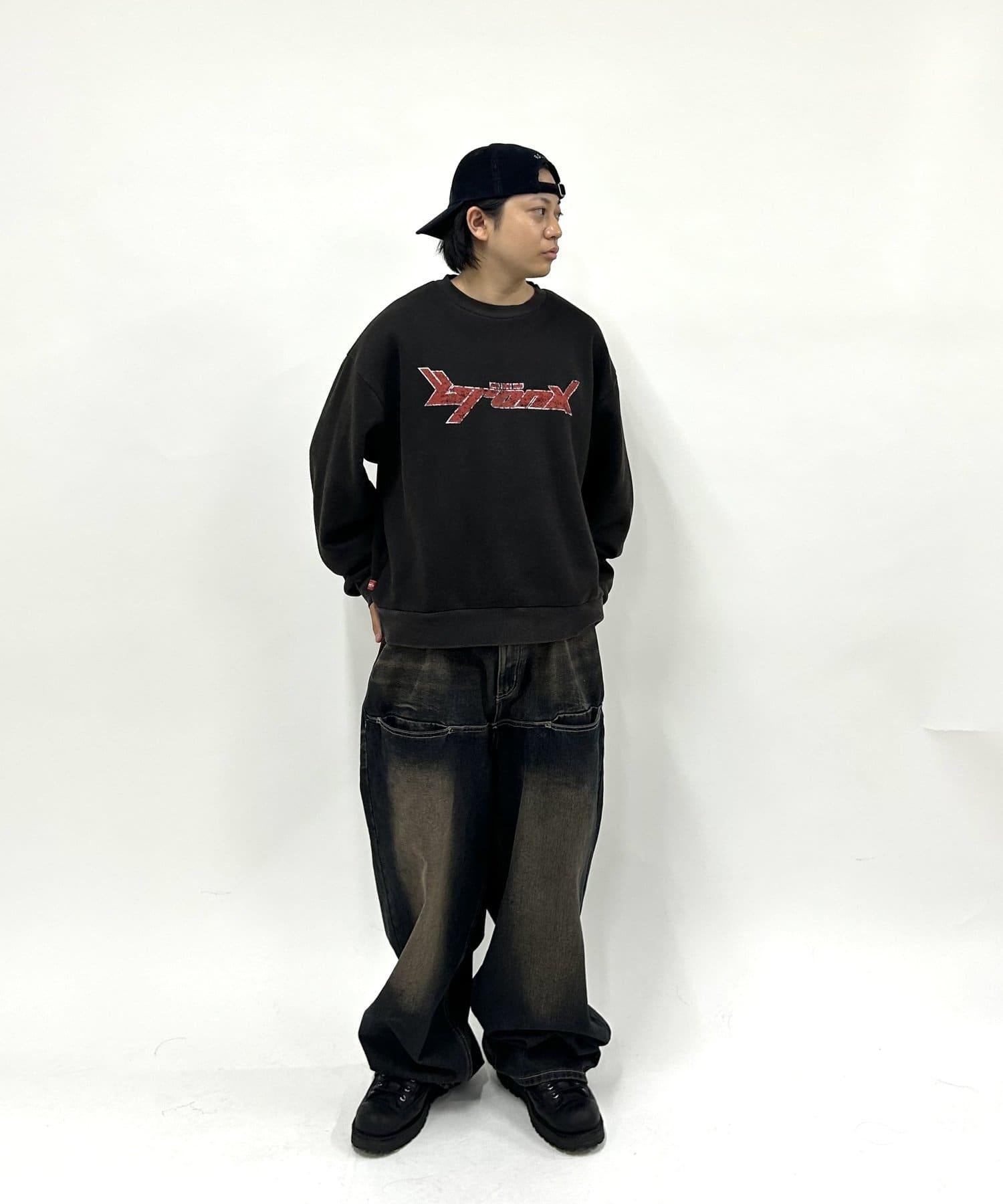 具有衝擊力的噴砂牛仔褲,給人以街頭的印象。