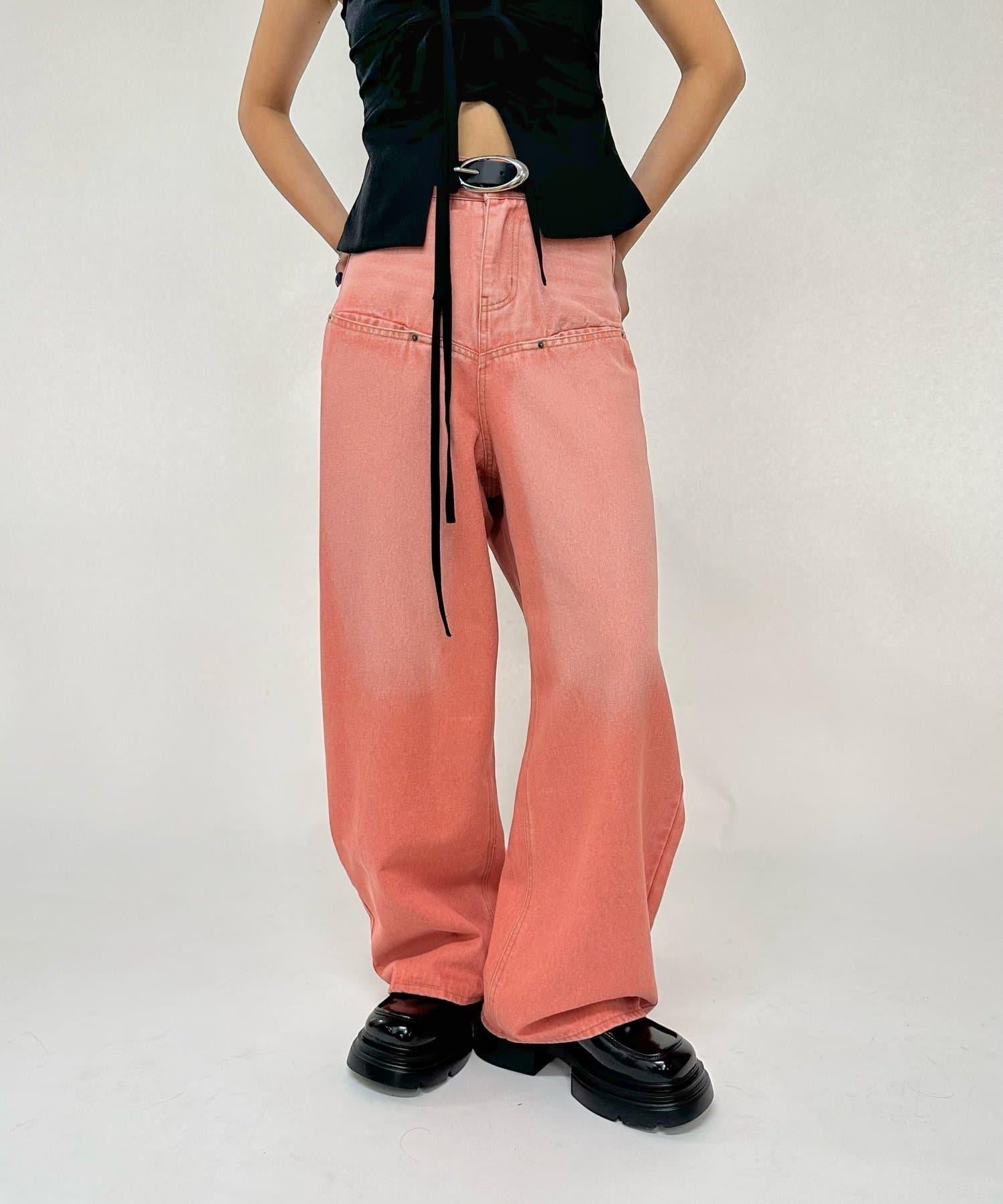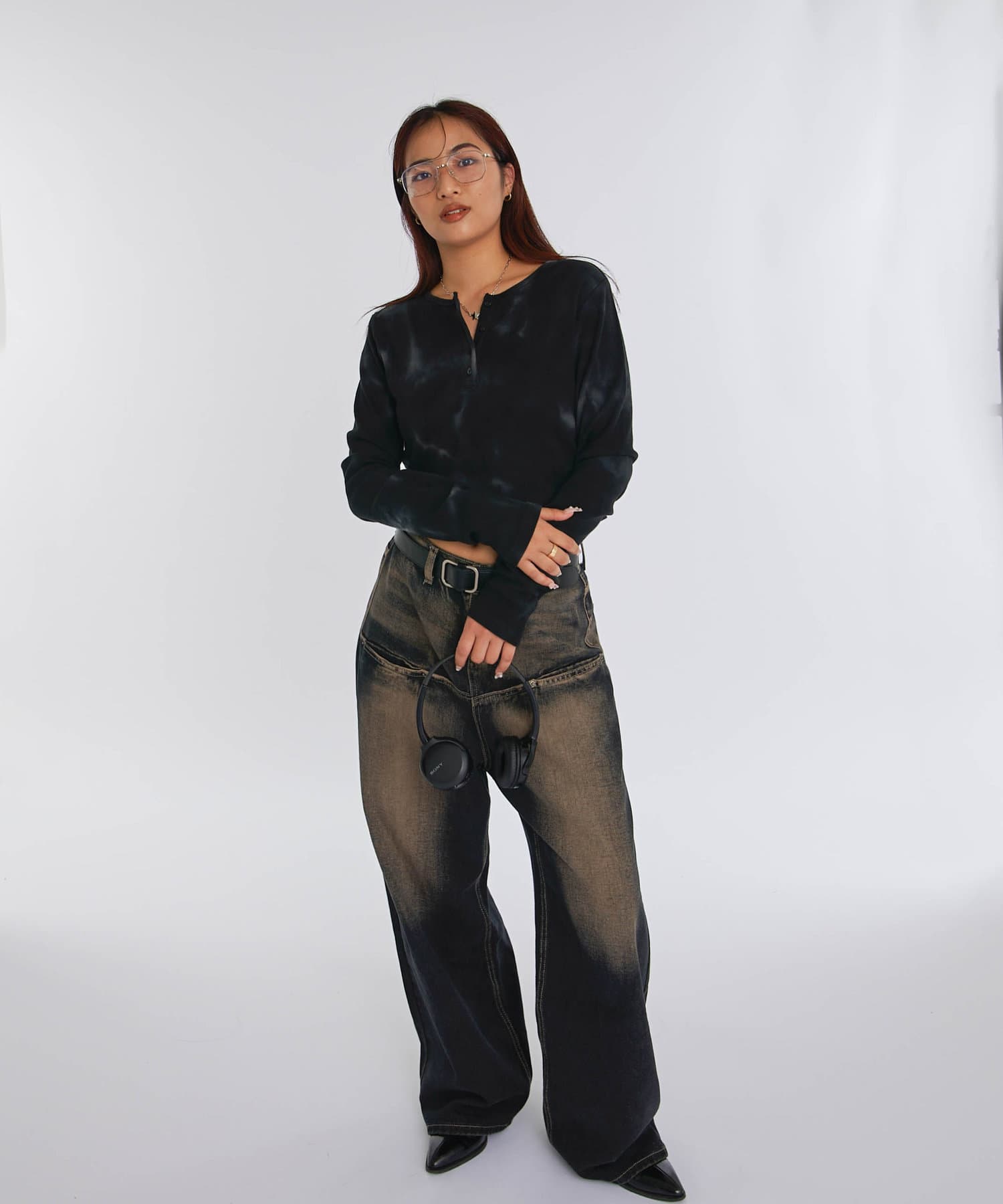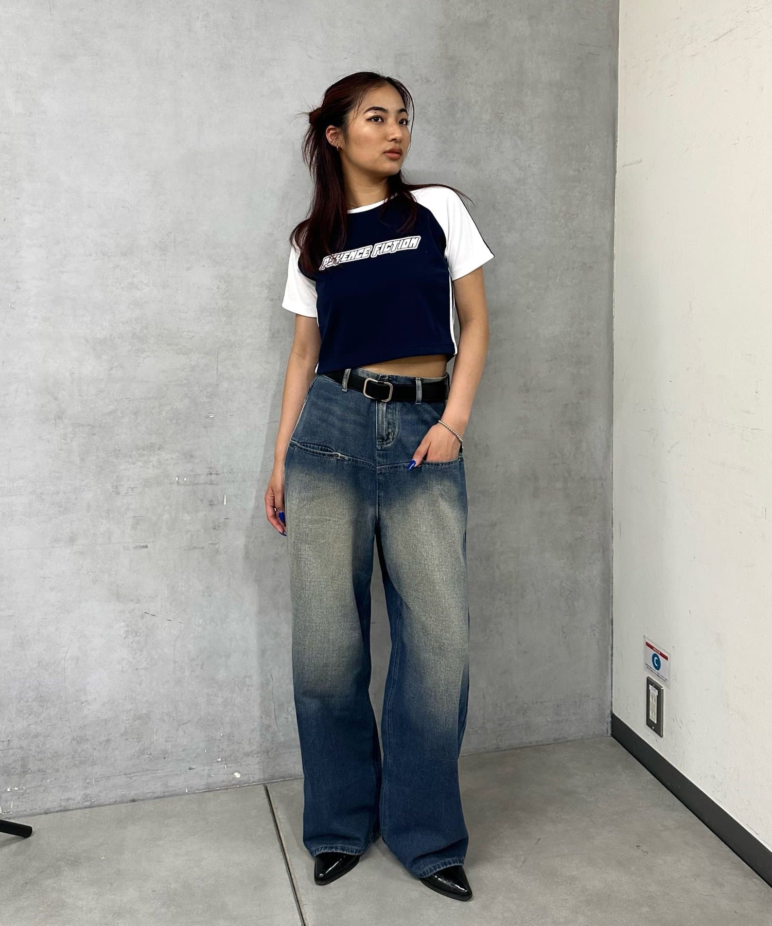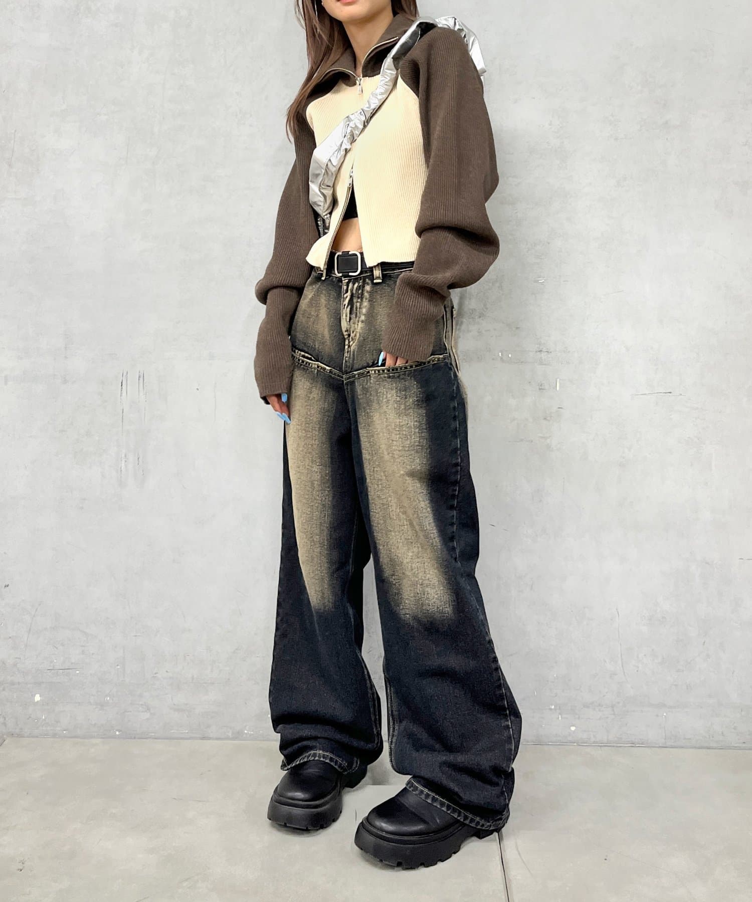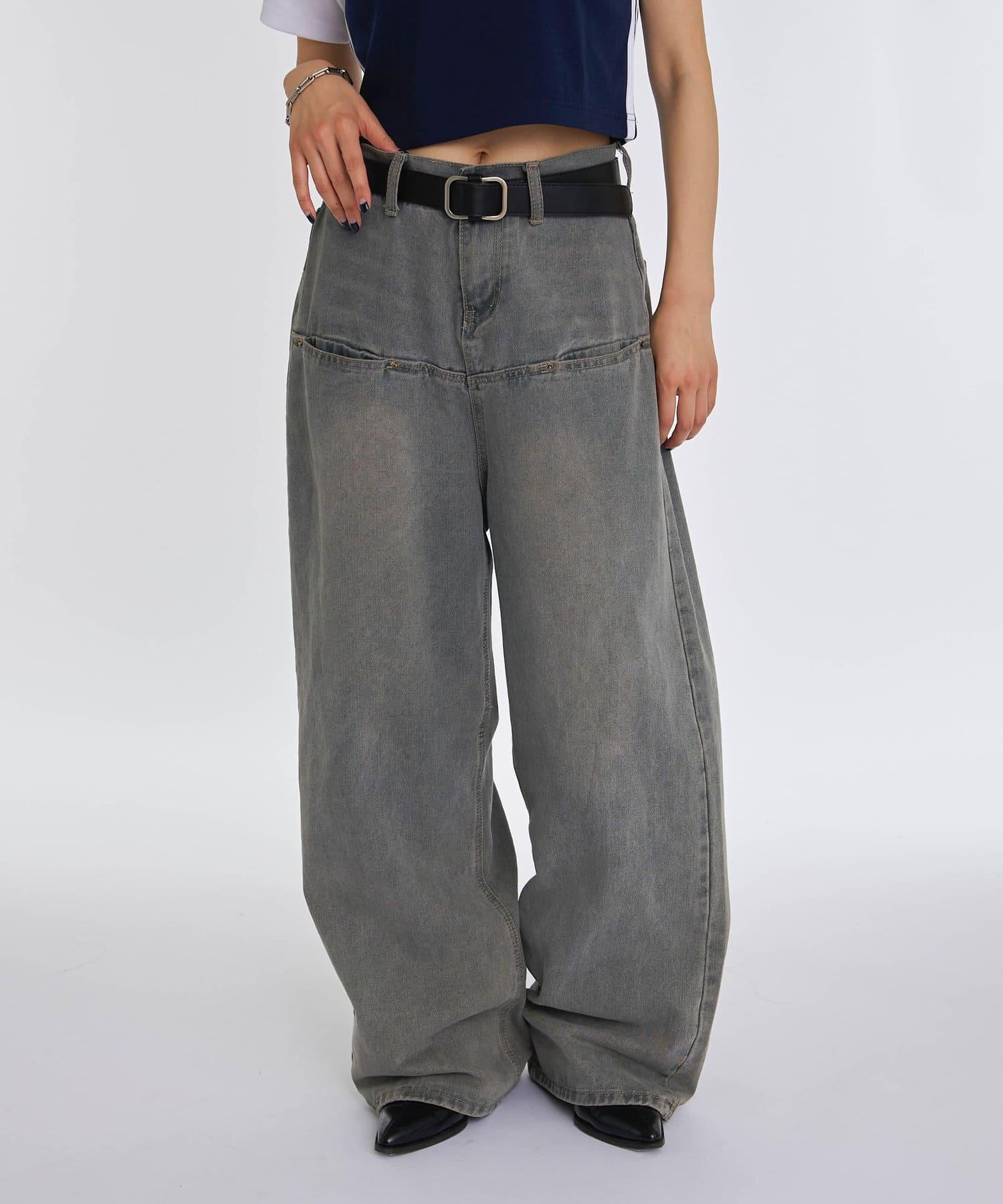 具有衝擊力的噴砂牛仔褲,給人以街頭的印象。