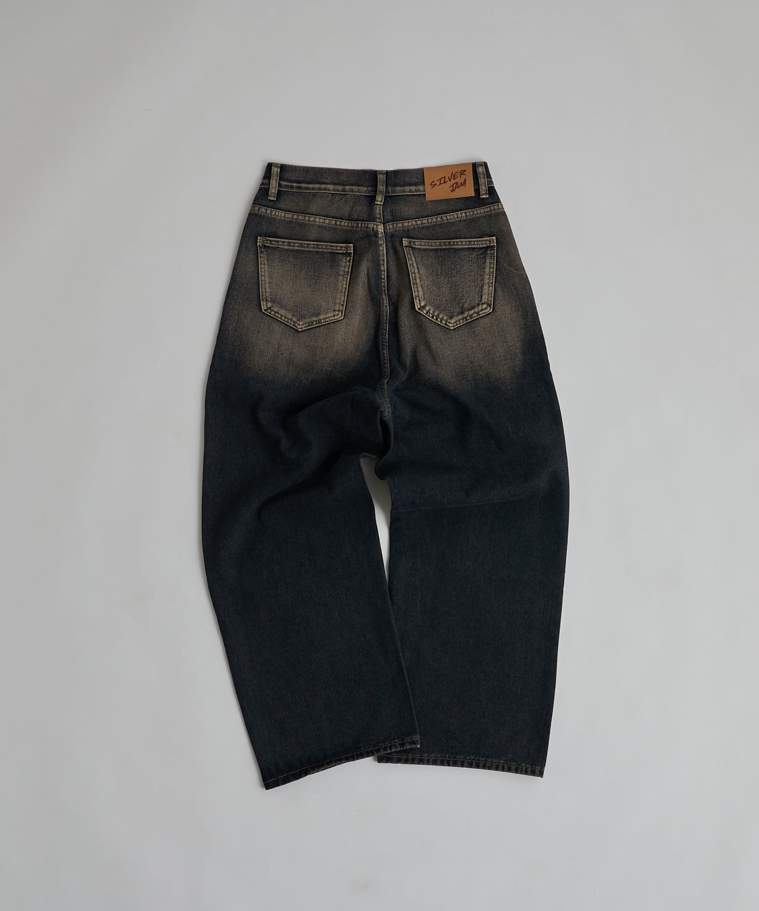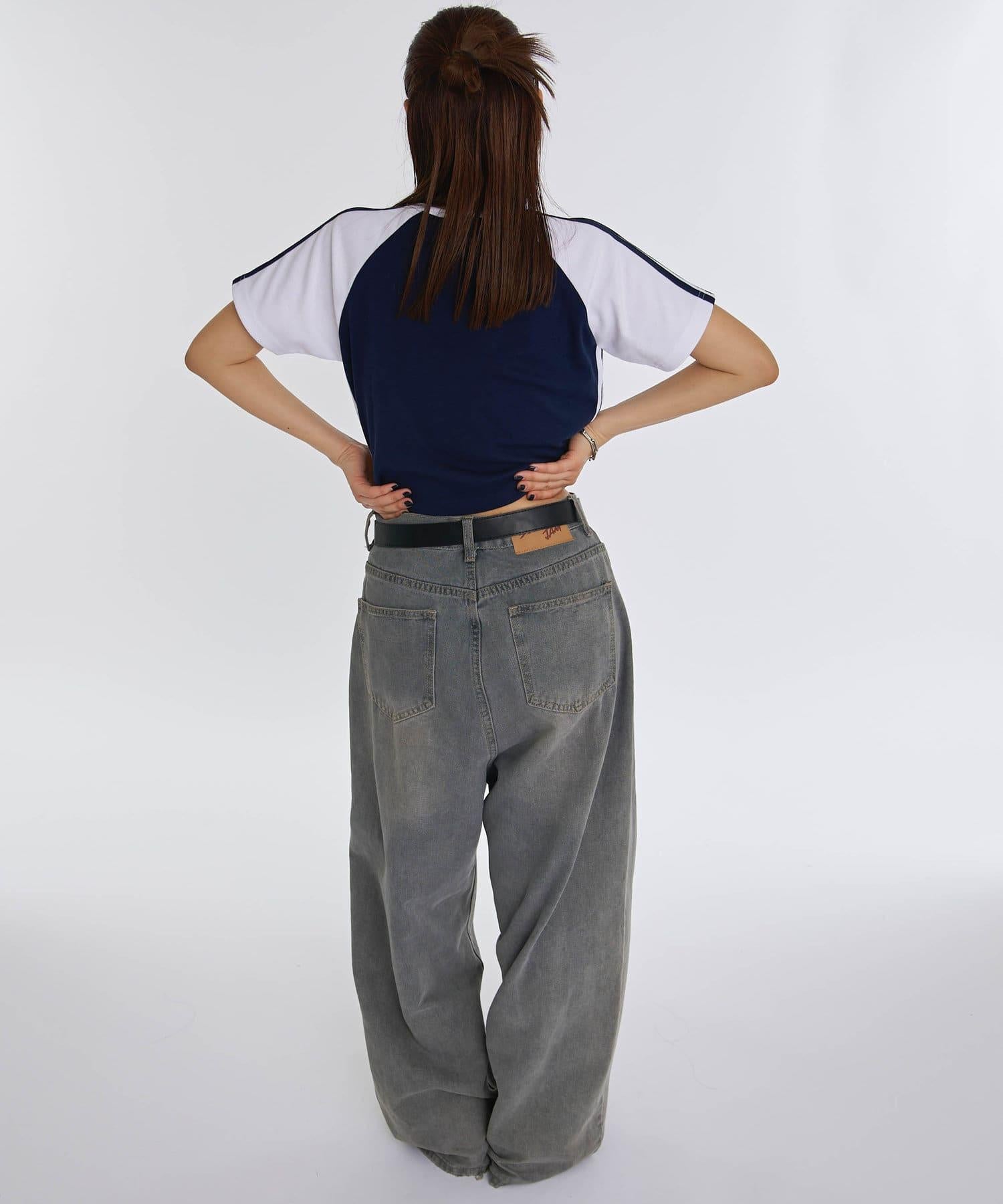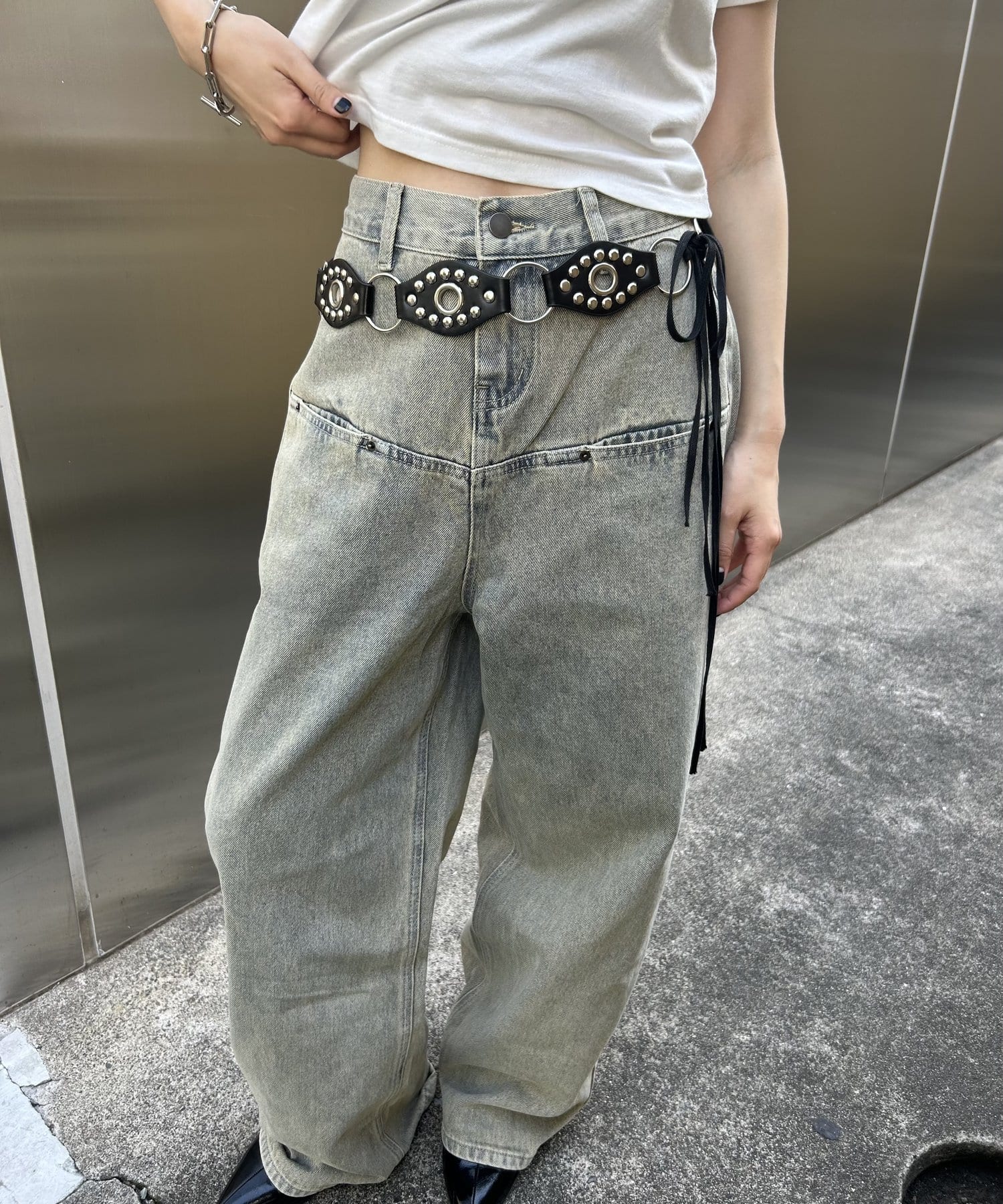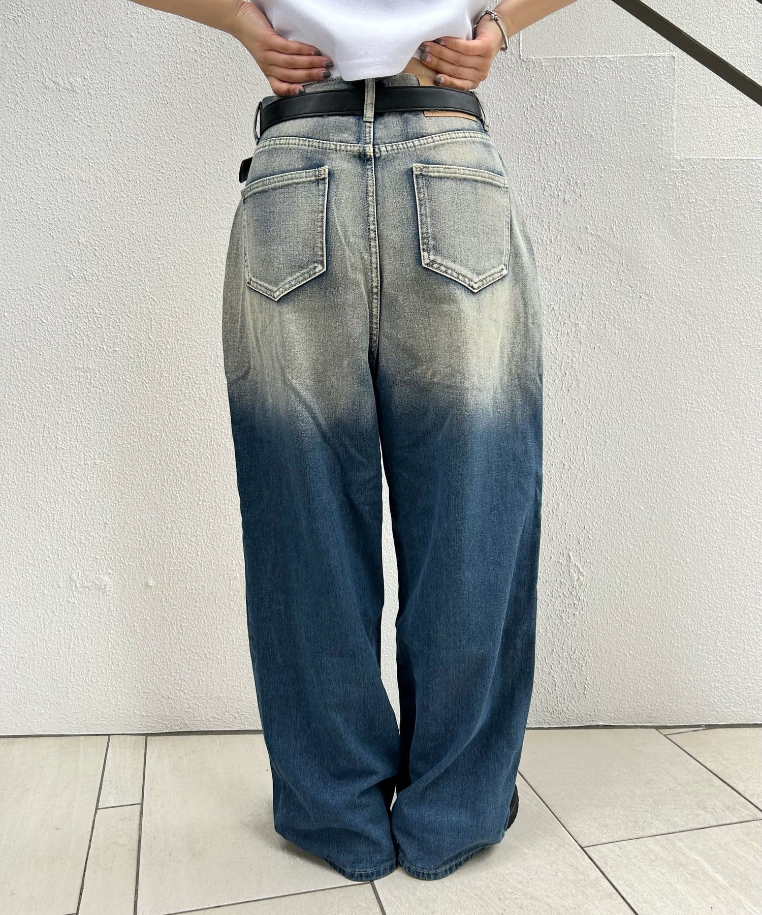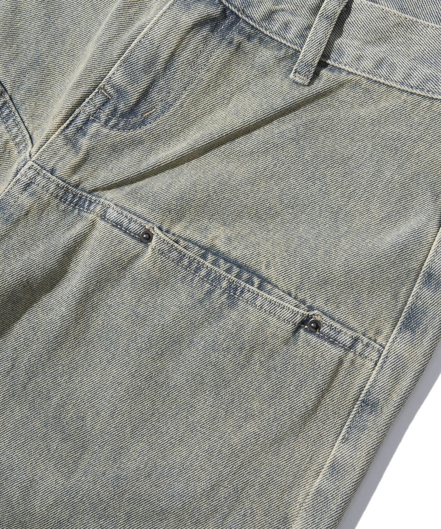 具有衝擊力的噴砂牛仔褲,給人以街頭的印象。