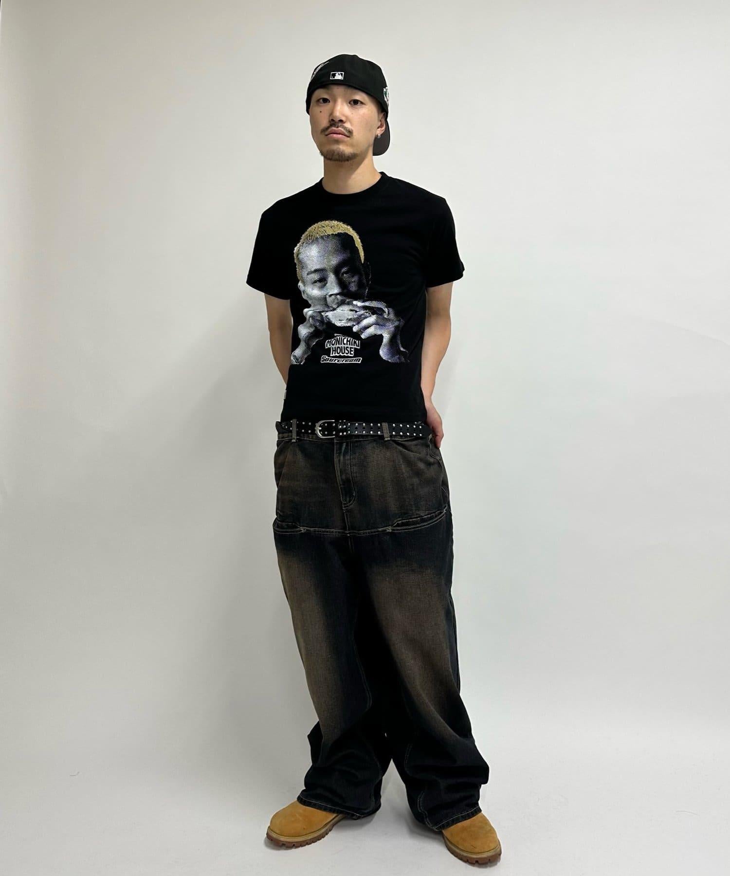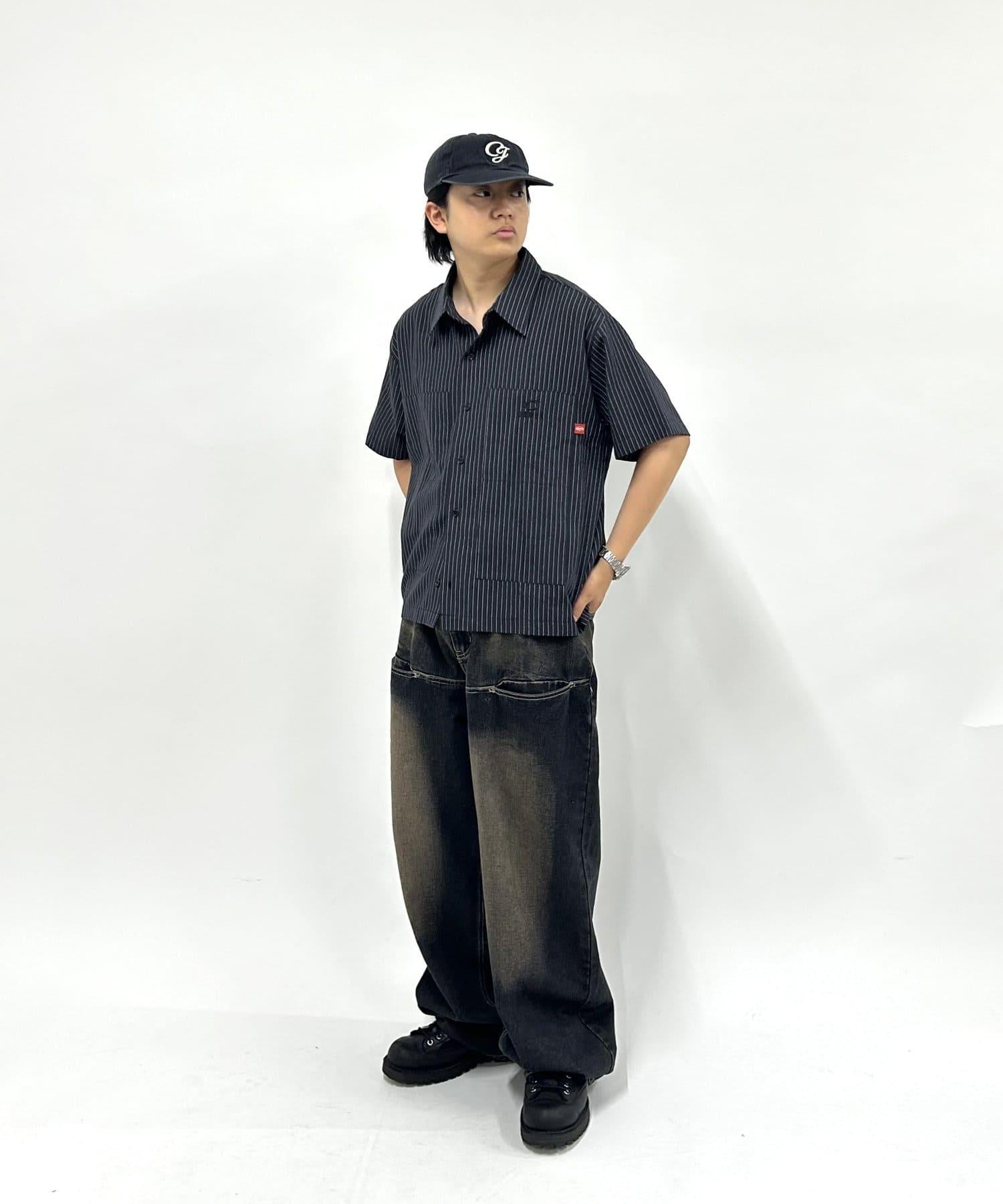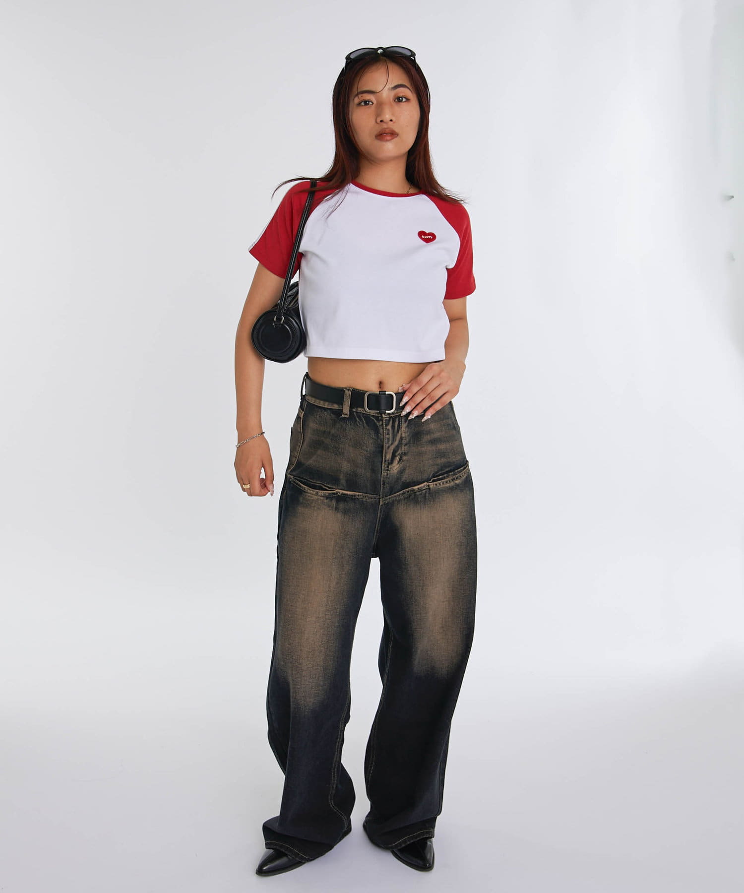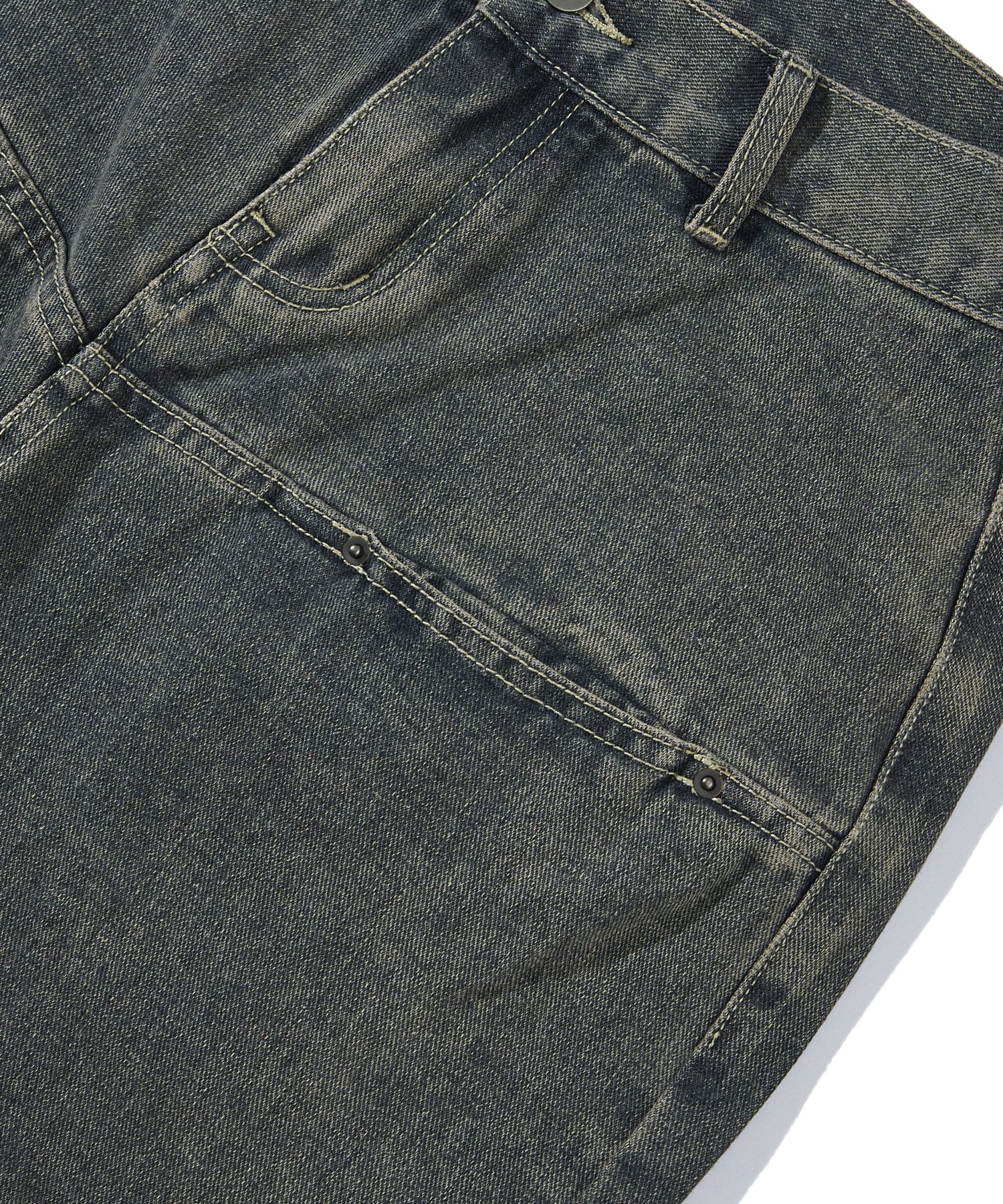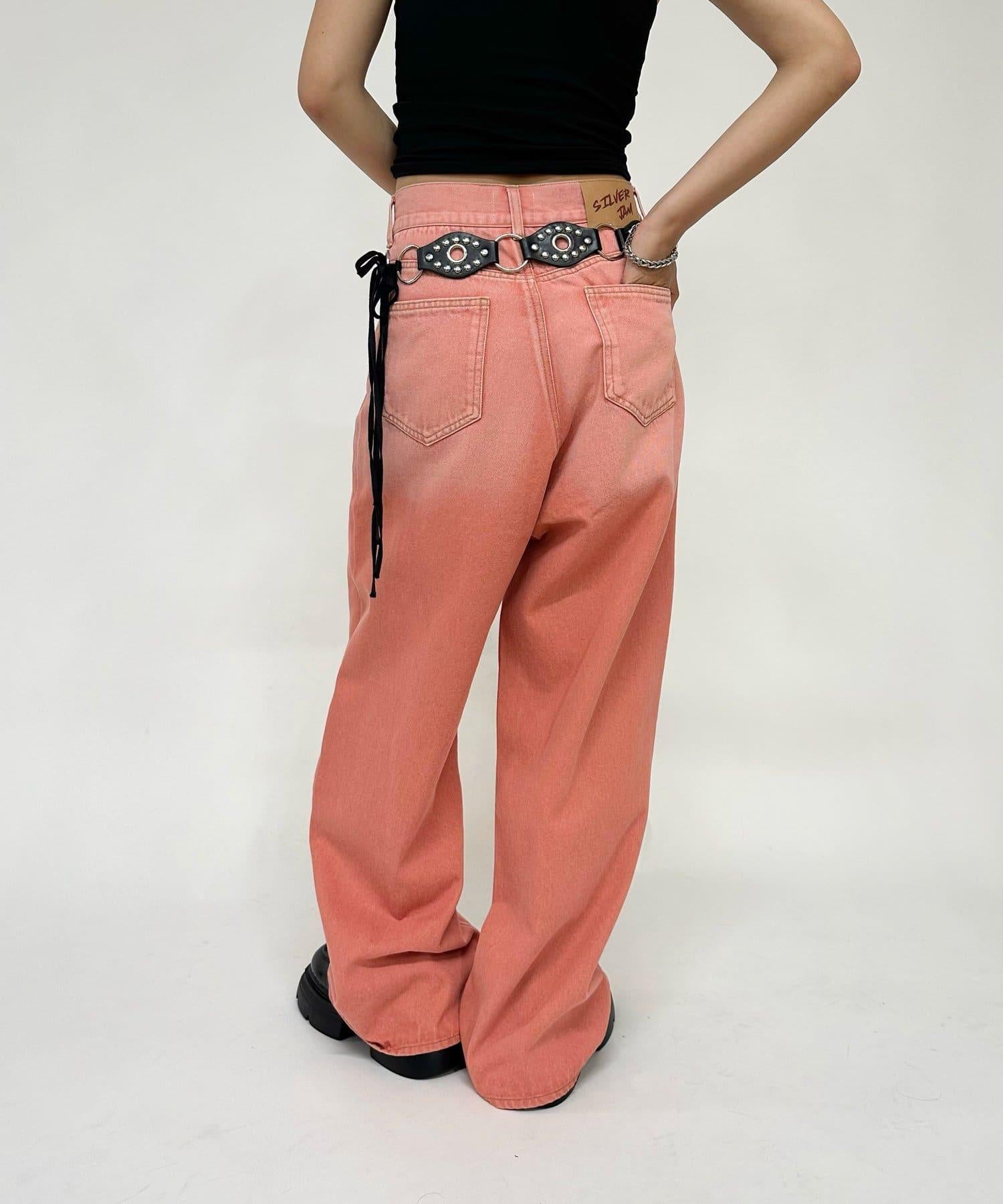 具有衝擊力的噴砂牛仔褲,給人以街頭的印象。