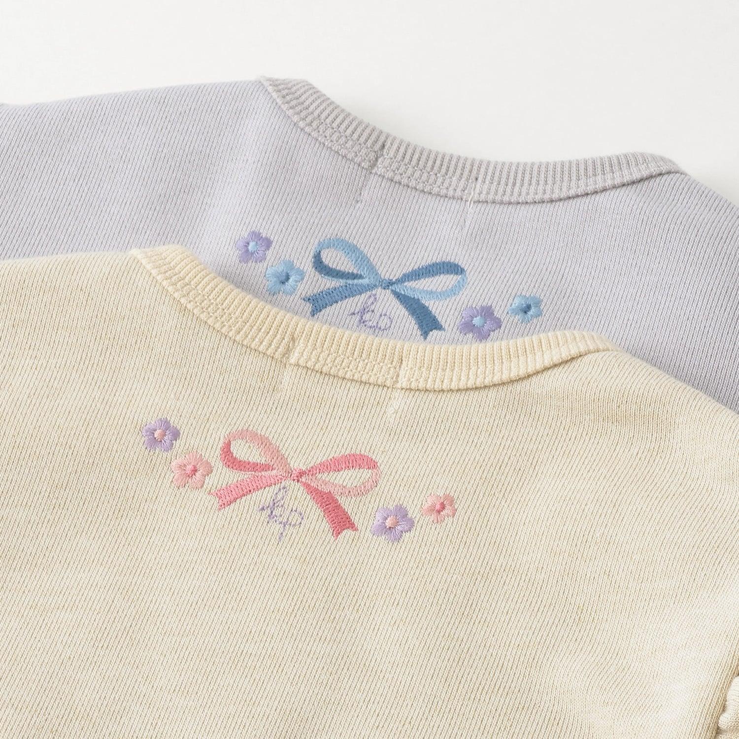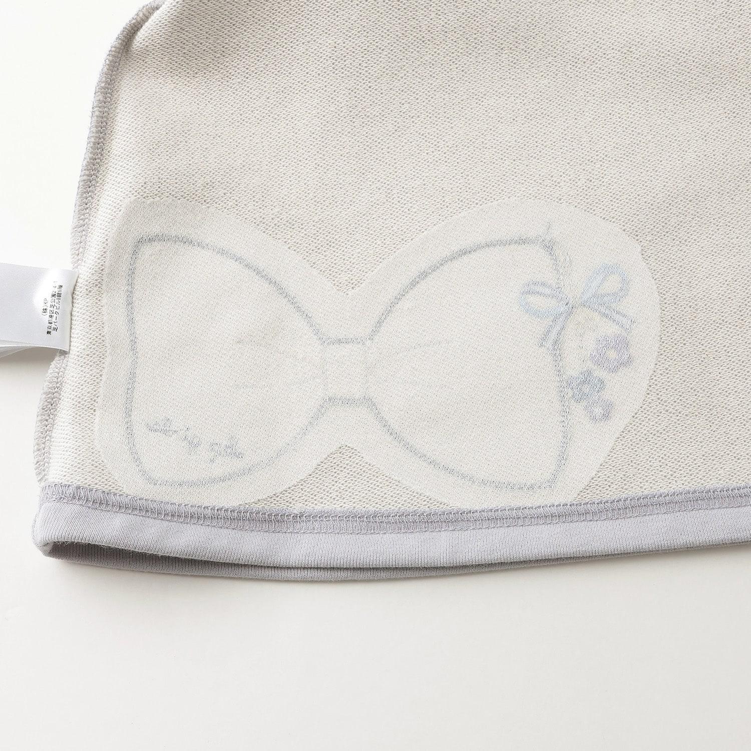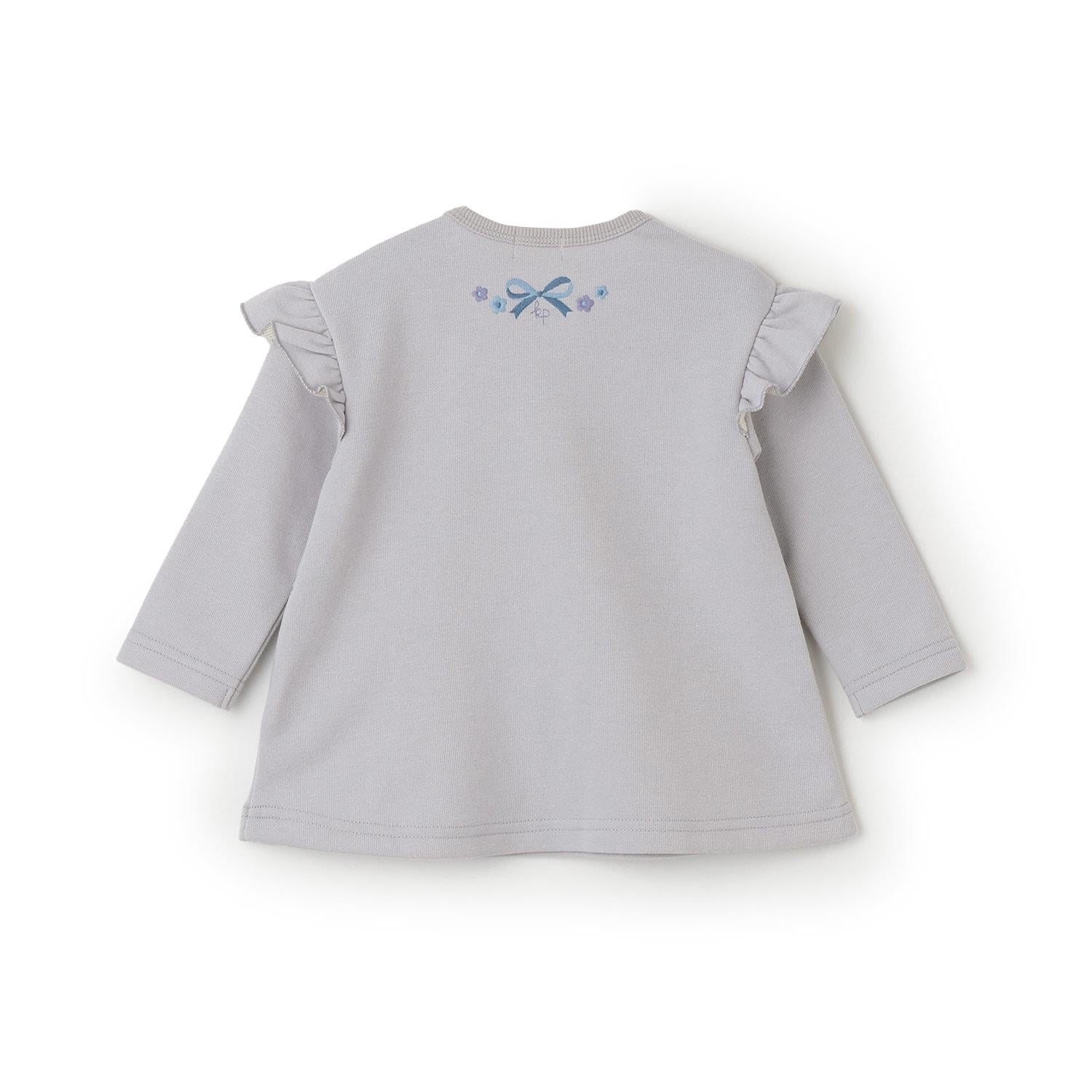 下垂的肩部飾有荷葉邊和緞帶袋式貼花。
