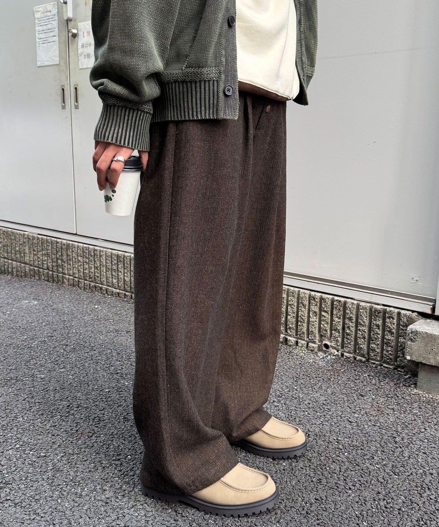 古典與現代交匯的粗花呢寬鬆休閒褲