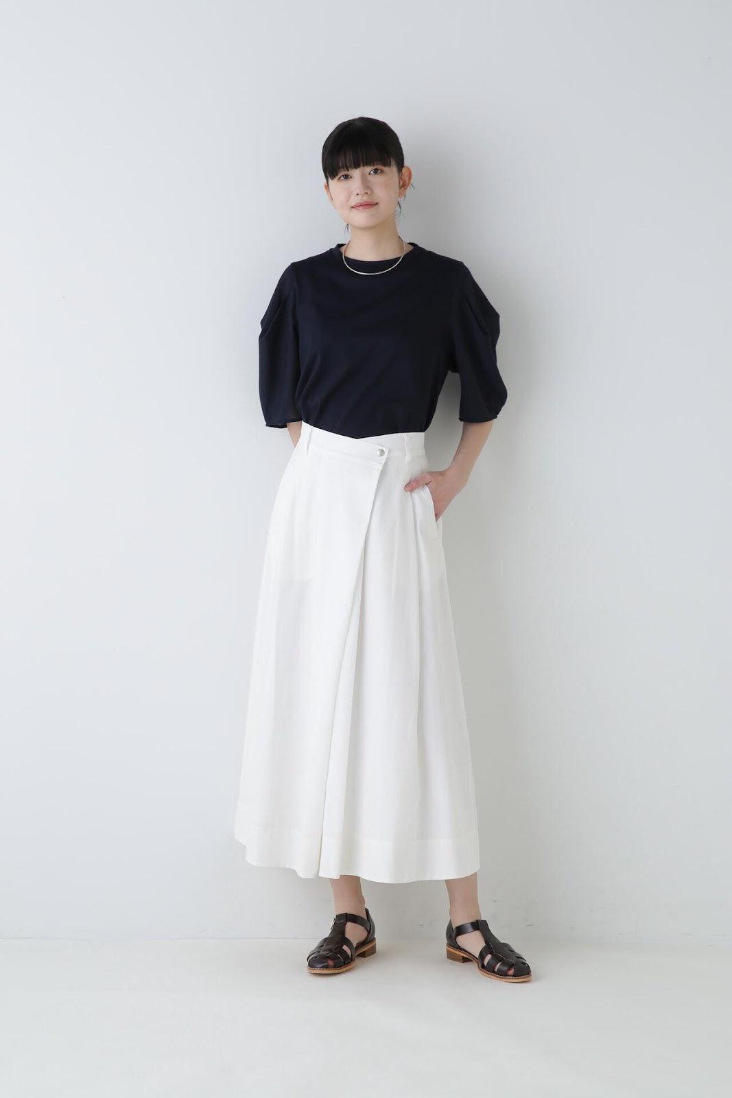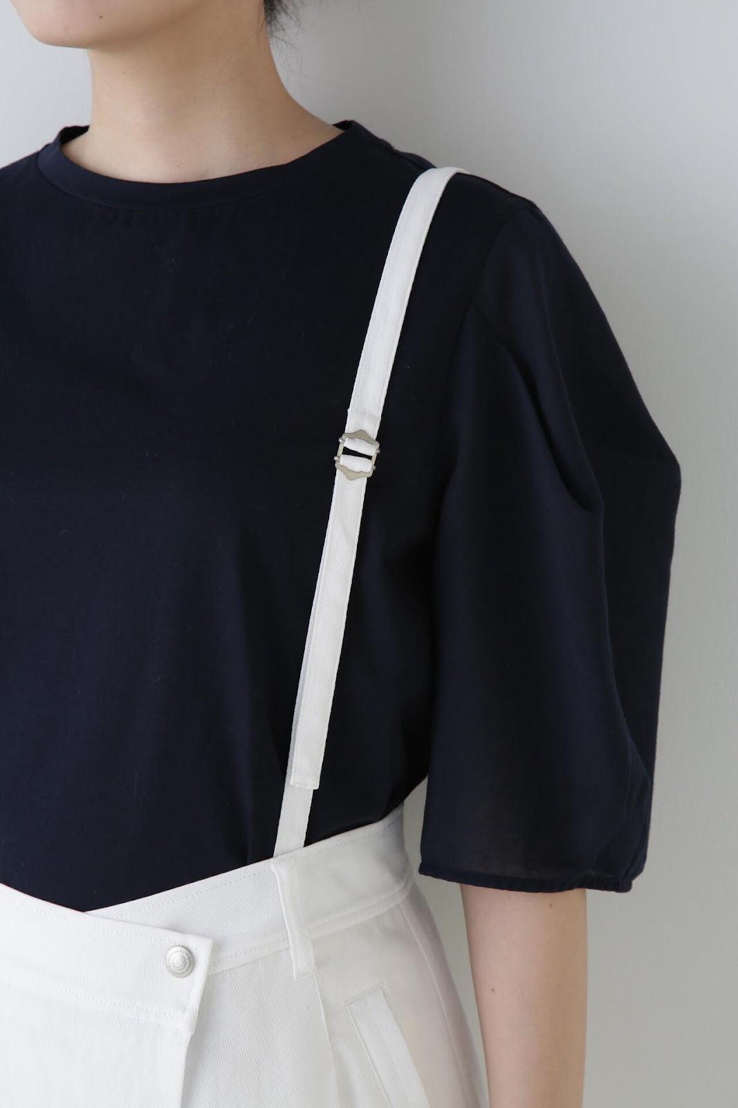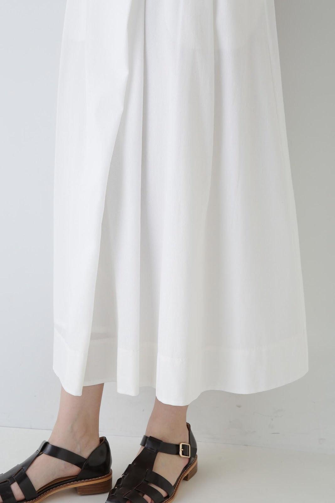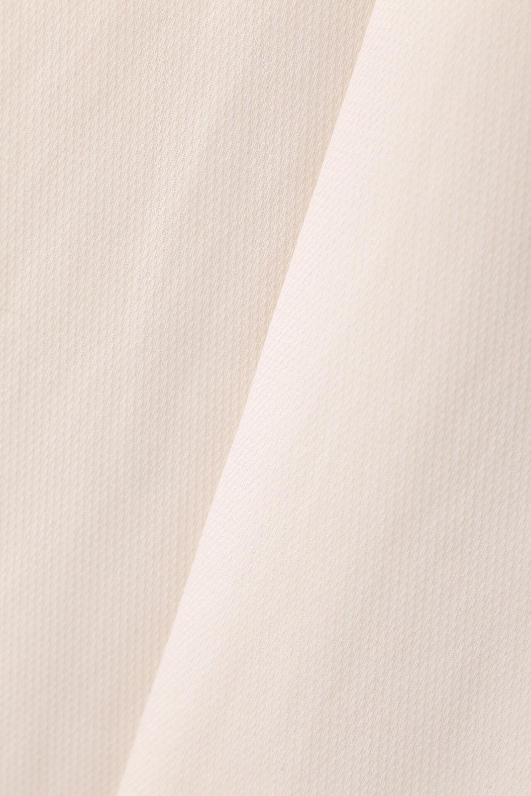懸掛式裙襬,輪廓分明 [設計要點] 這款懸掛式裙襬可展現隨意收起的裙襬。裙襬部分的開口處配有獨創的圓點紐扣。肩帶可拆卸,長度可調節。白色有內襯,穿起來不會有透明感。帶有精細花紋的多臂克斯面料經過後處理,具有防水性,水溶性汙漬耐髒且易於去除。裙襬也經過潑水處理,具有水溶性、抗汙性和易清洗性。根據內搭的不同,它可以長穿一季,拆下懸掛繩還可以當裙子穿,這樣就可以擴大服裝的搭配範圍。