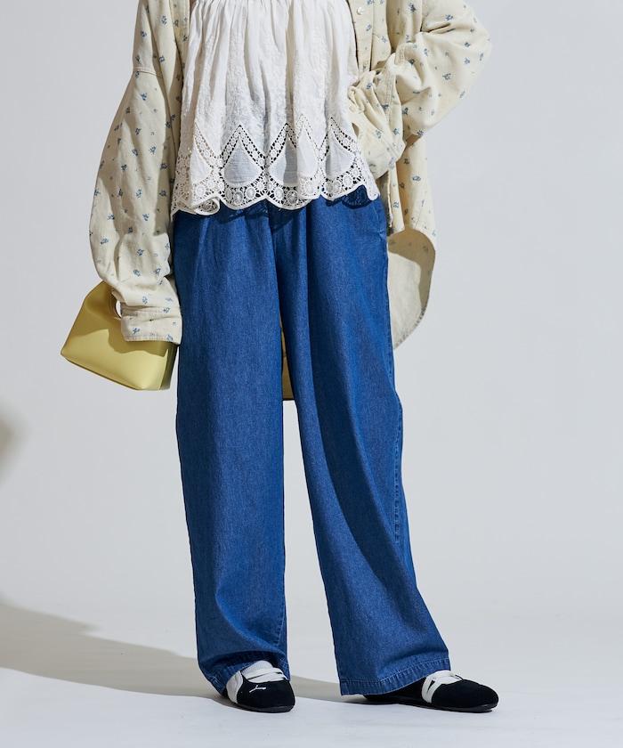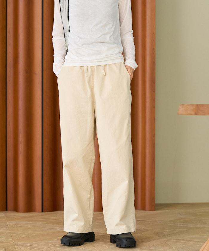 斜紋織物寬鬆直筒褲<可搭配套裝>