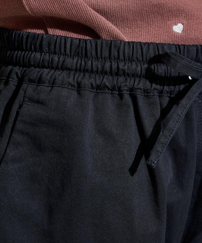 簡易長褲採用彈性適中的棉斜紋布製成。