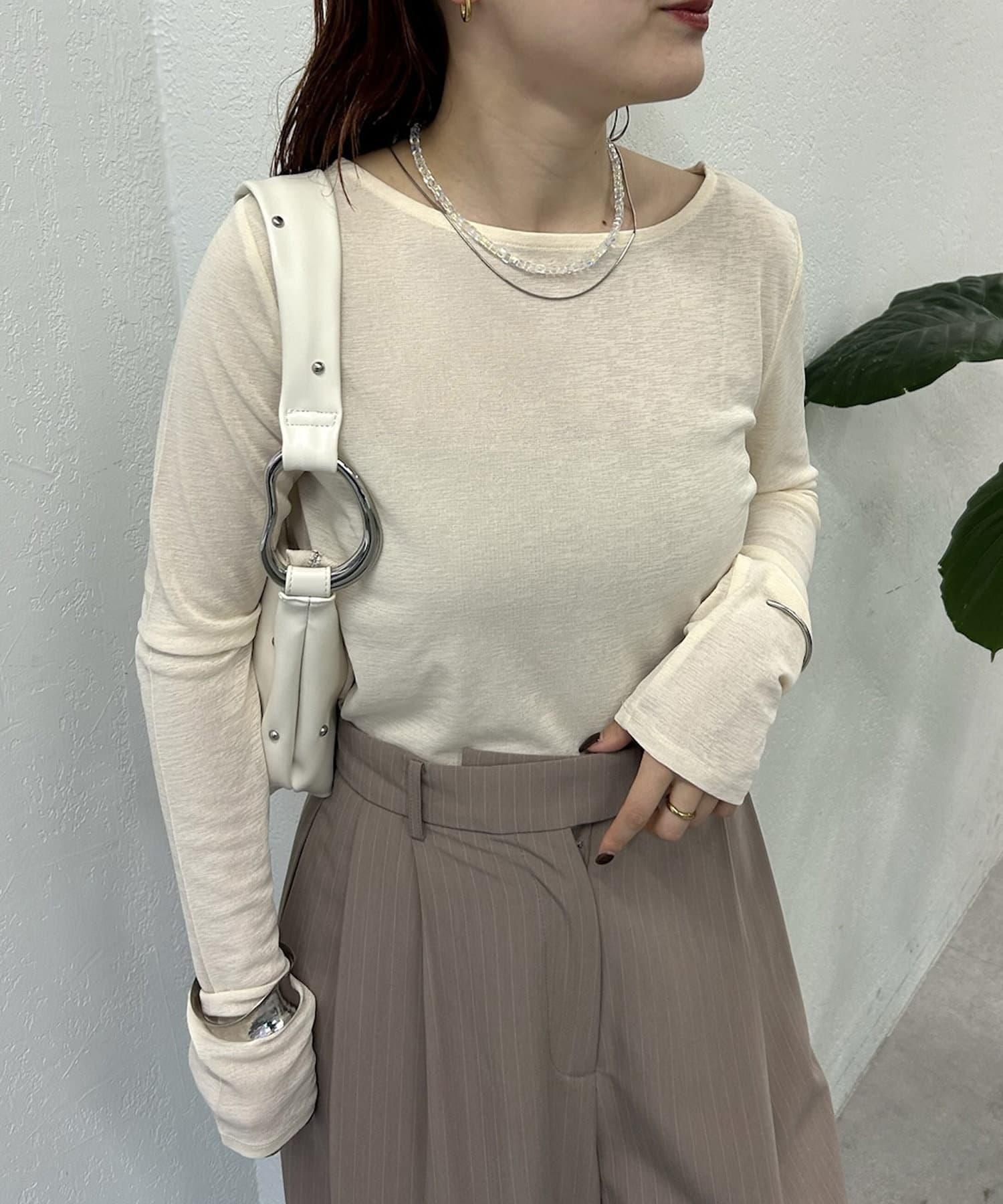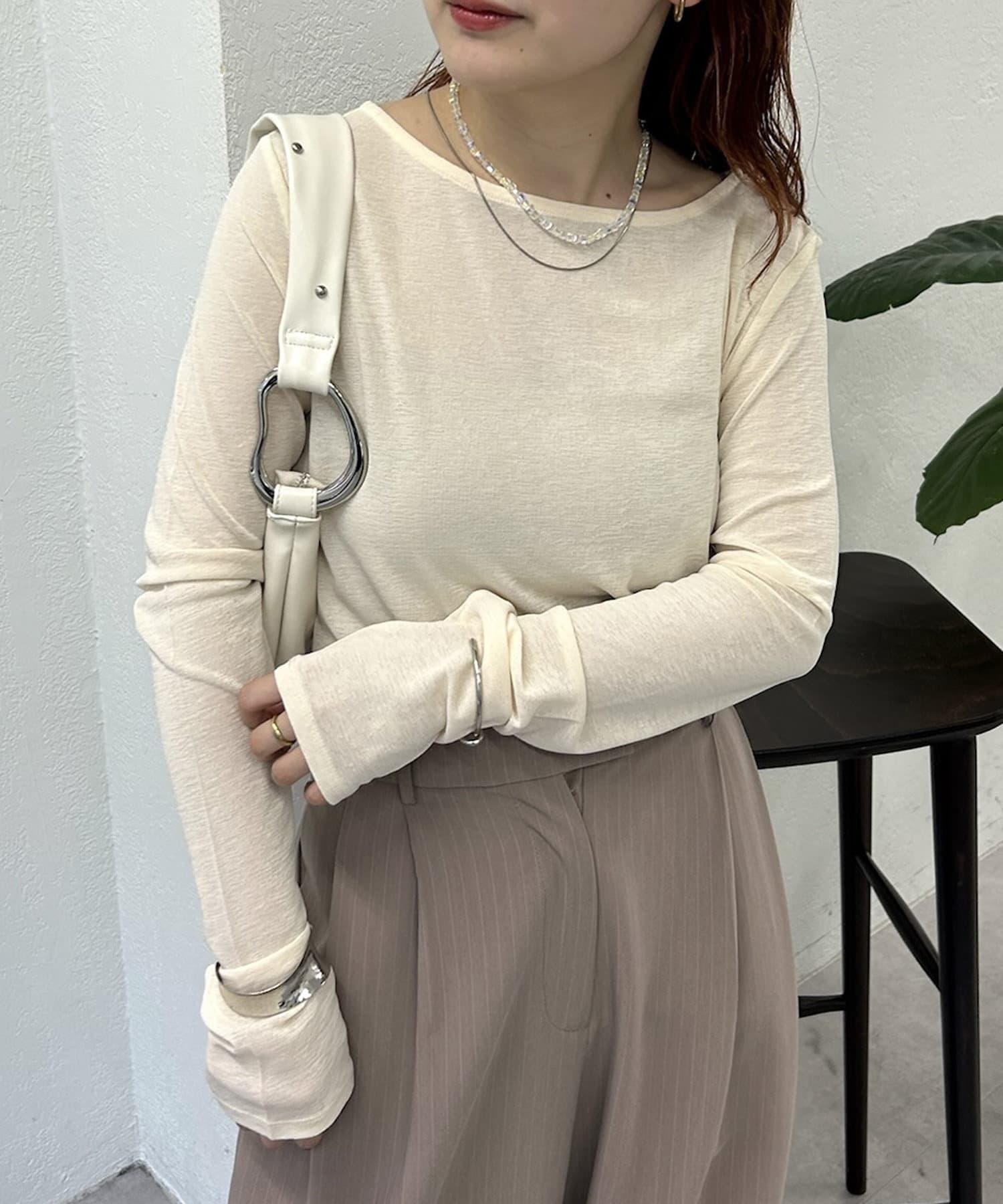 船領設計能很好地修飾肩部曲線,微微露出肌膚,營造出輕鬆的感覺。