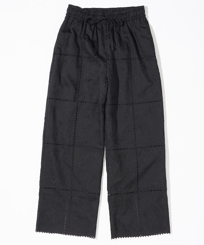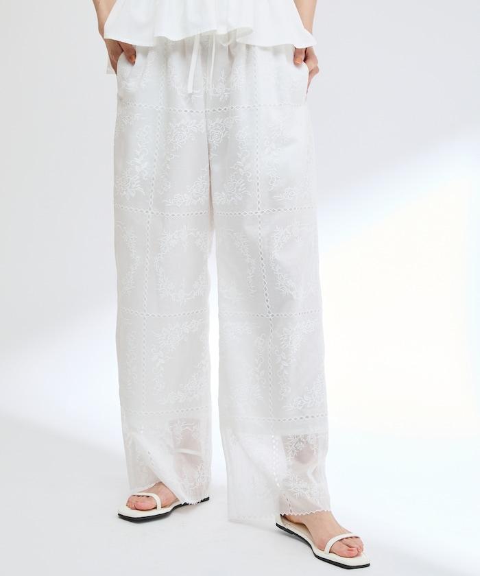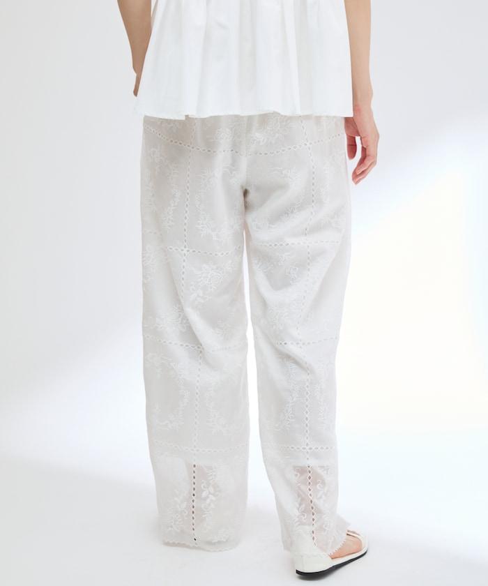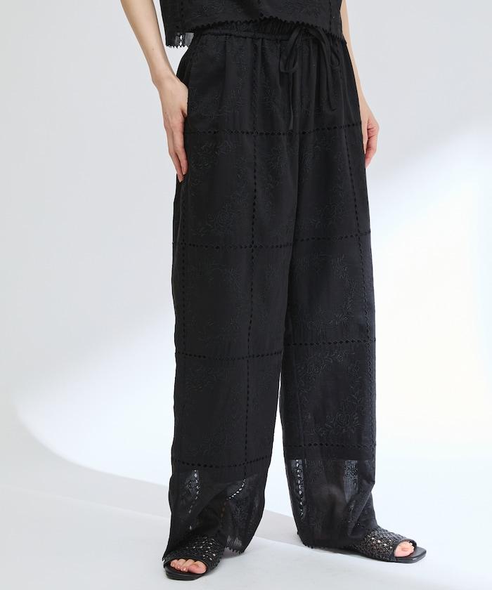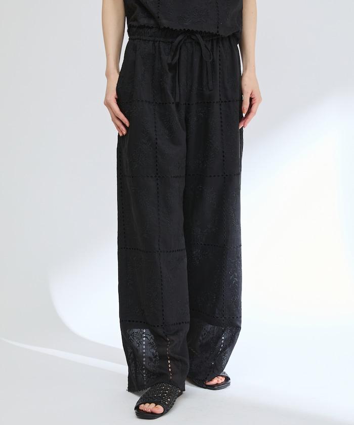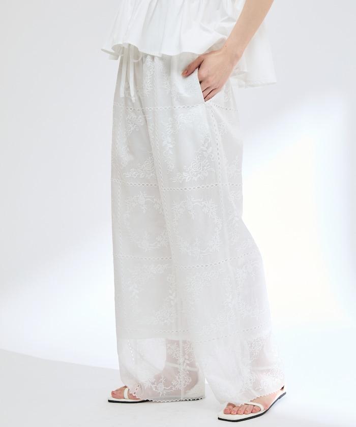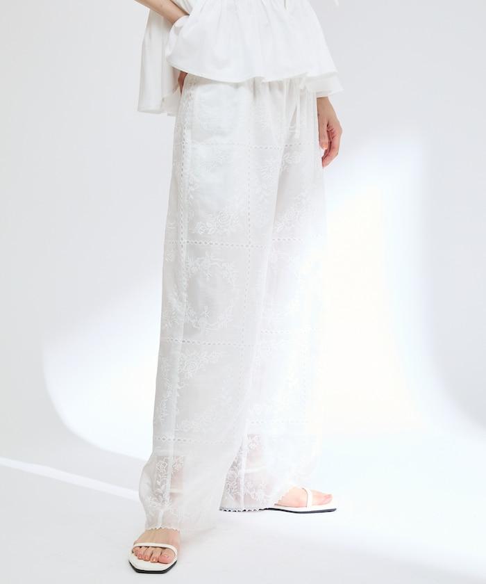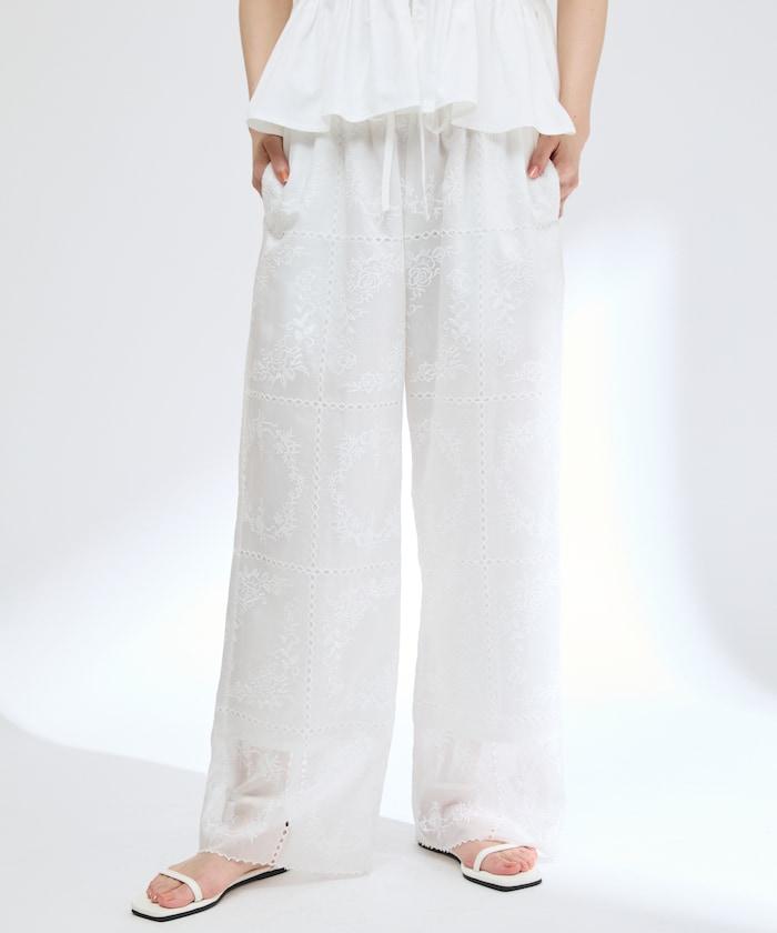 具有奢華感的寬鬆長褲,由帶有原創刺繡的薄紗面料製成。
