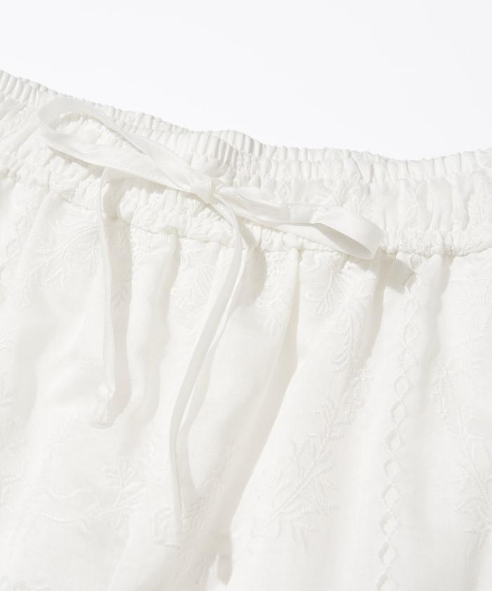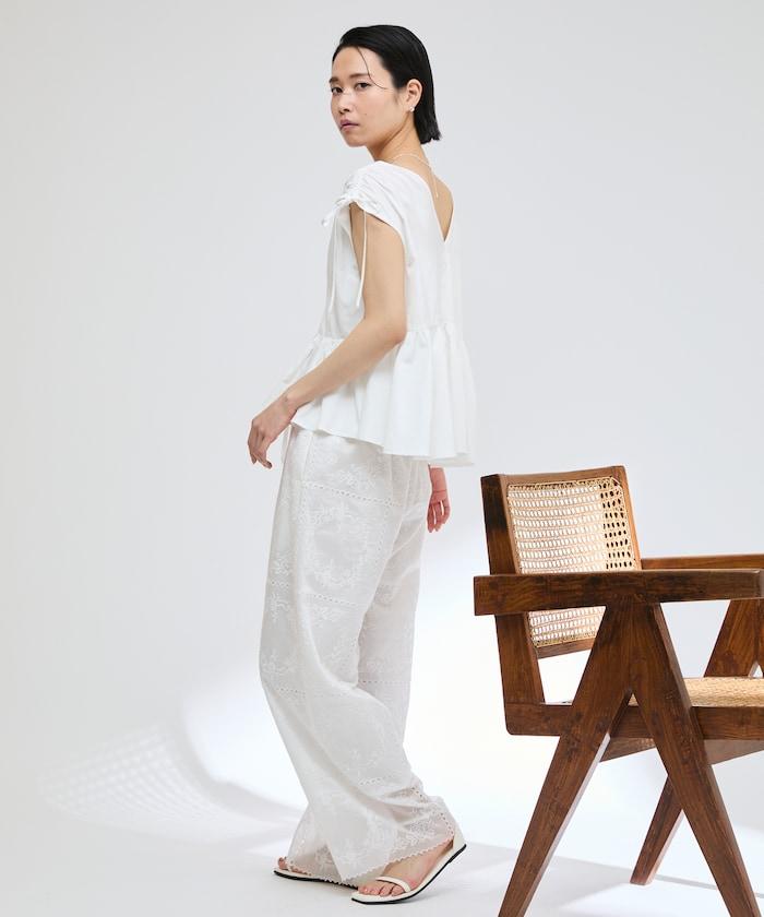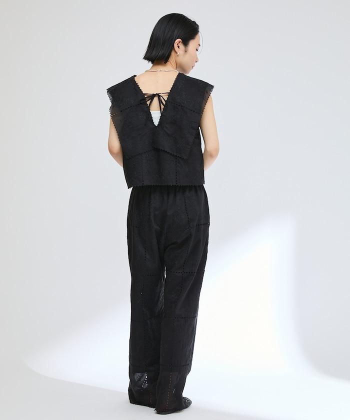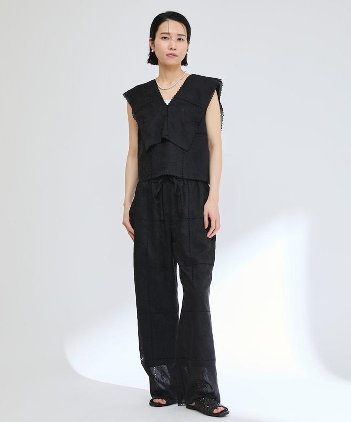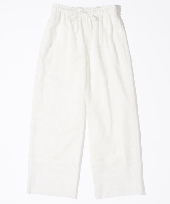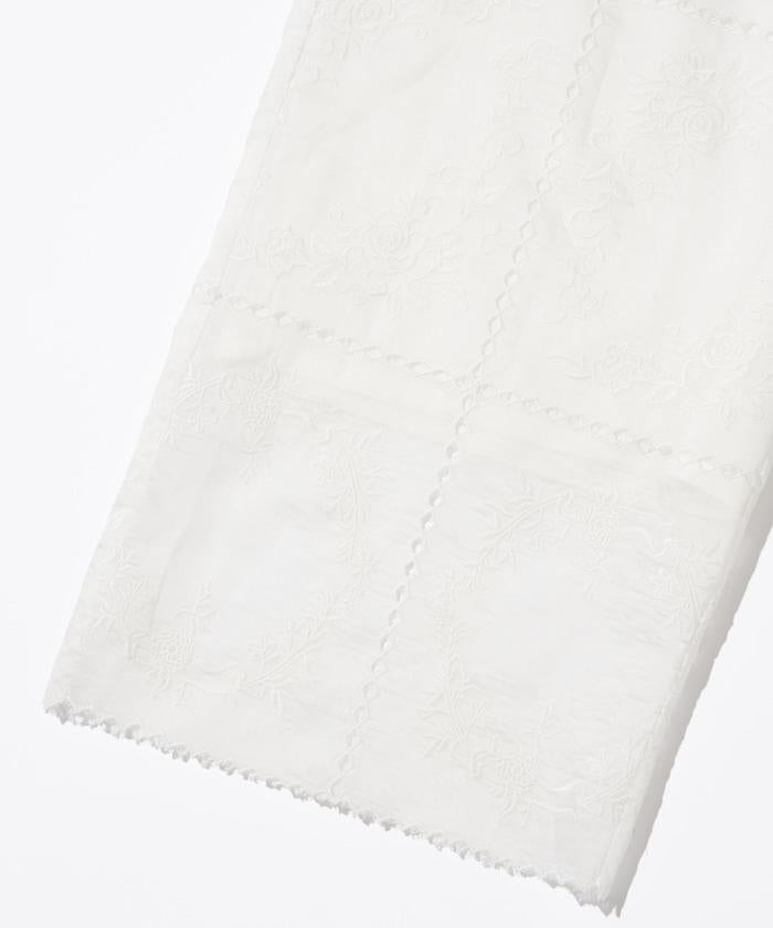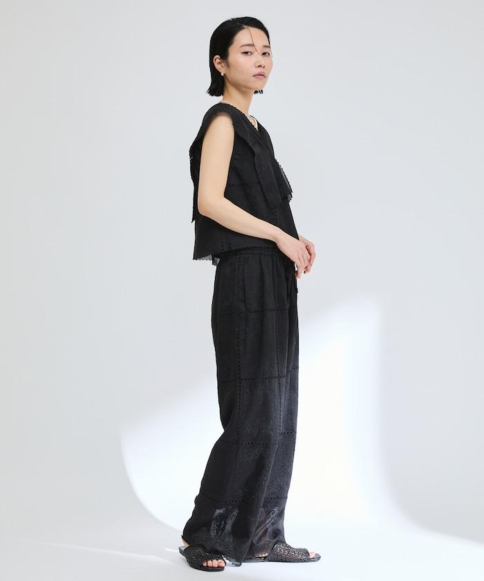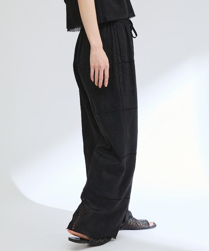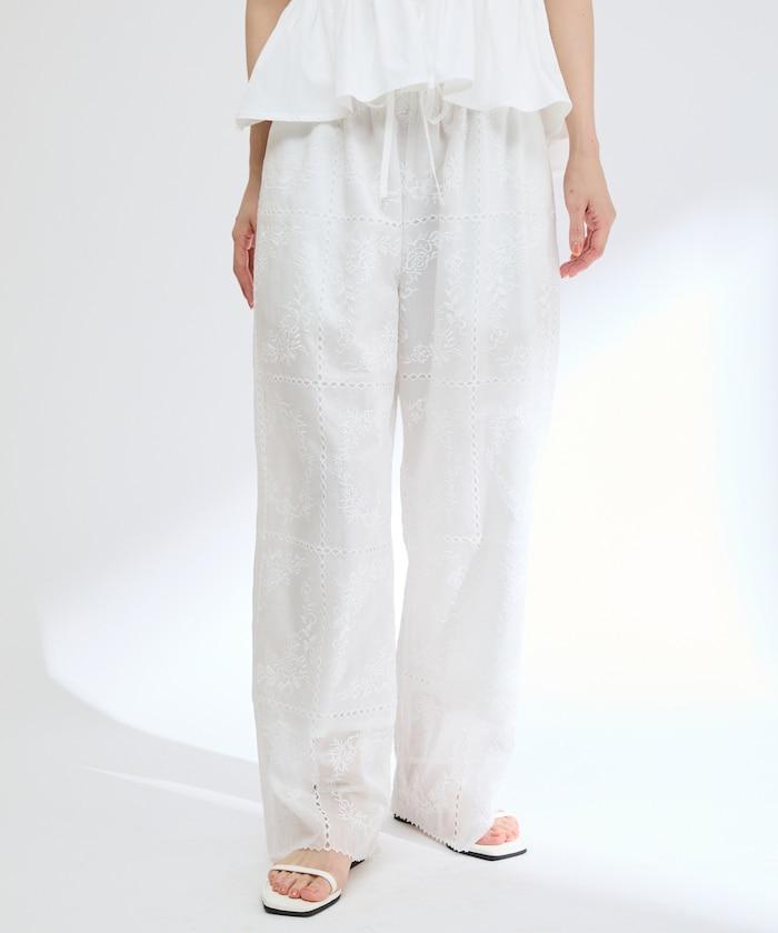 具有奢華感的寬鬆長褲,由帶有原創刺繡的薄紗面料製成。