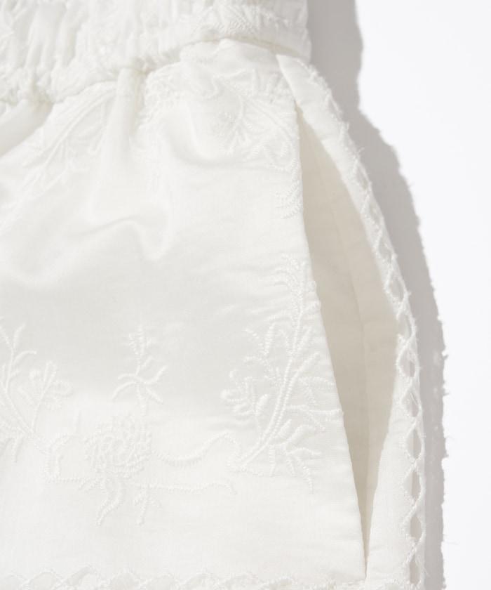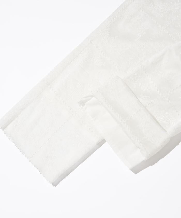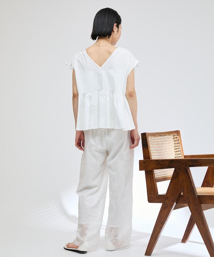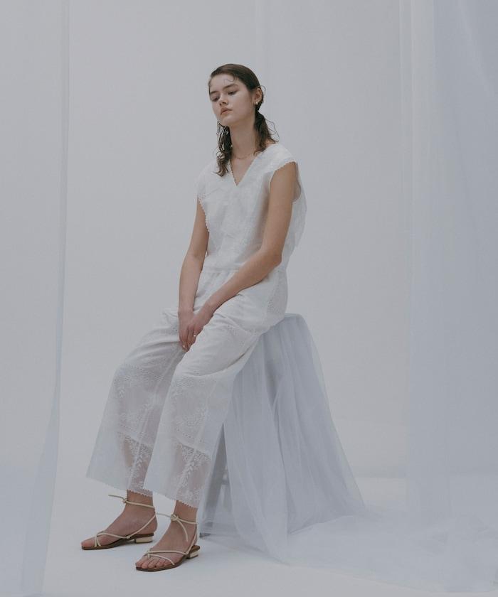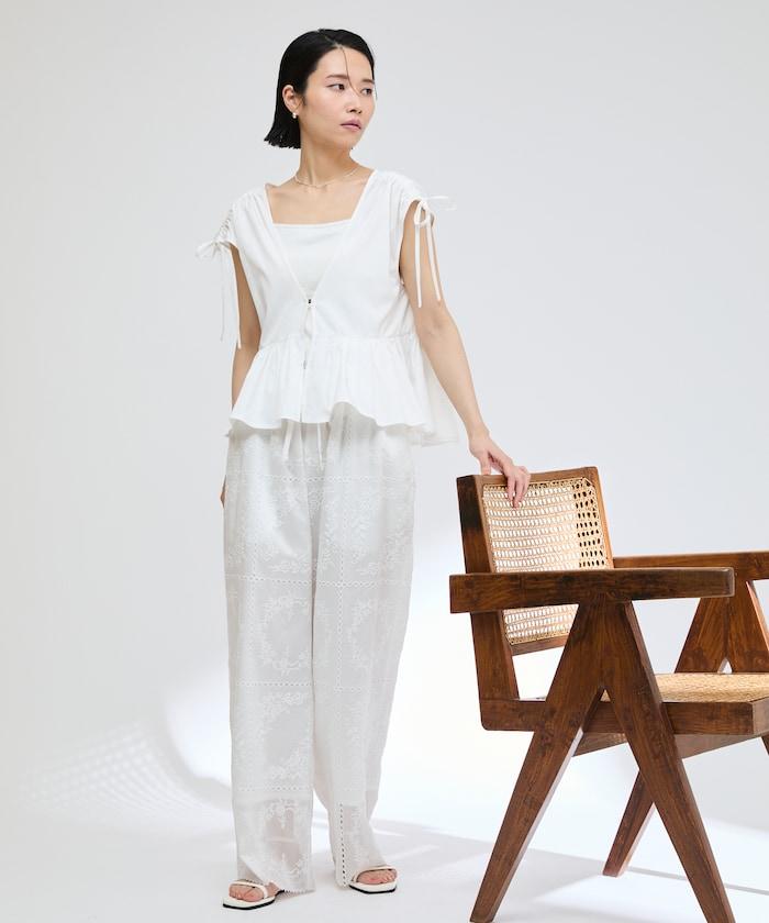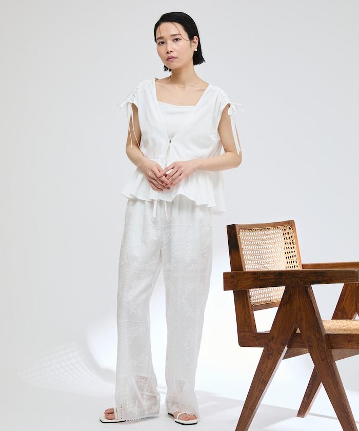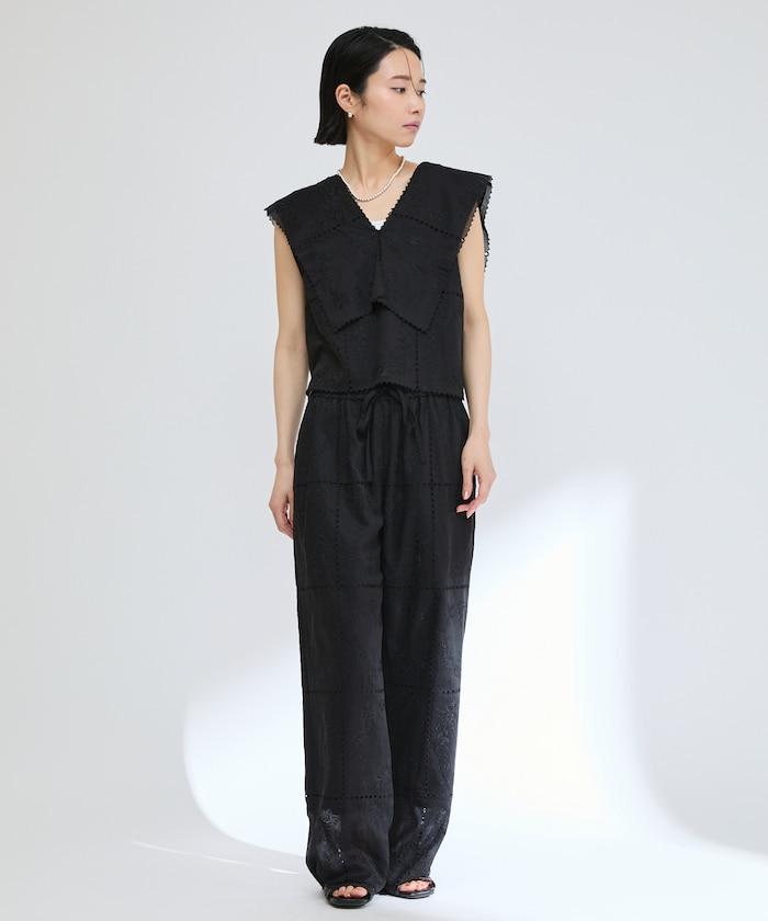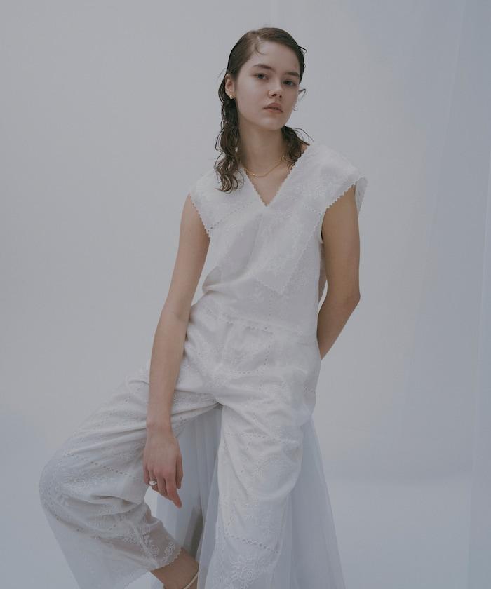 具有奢華感的寬鬆長褲,由帶有原創刺繡的薄紗面料製成。