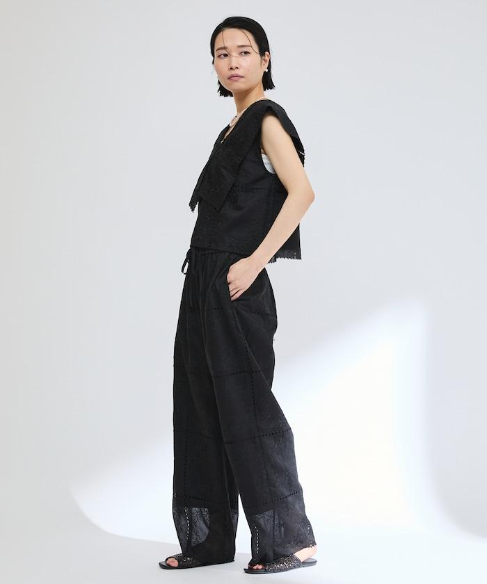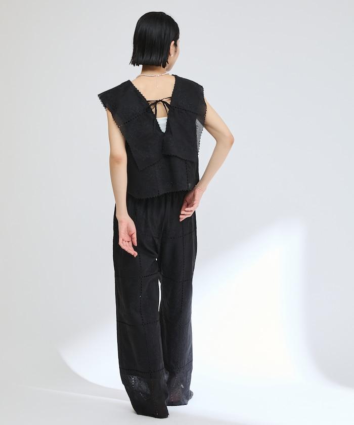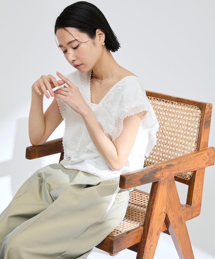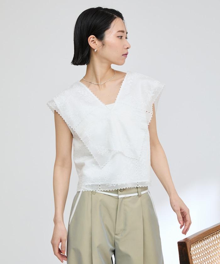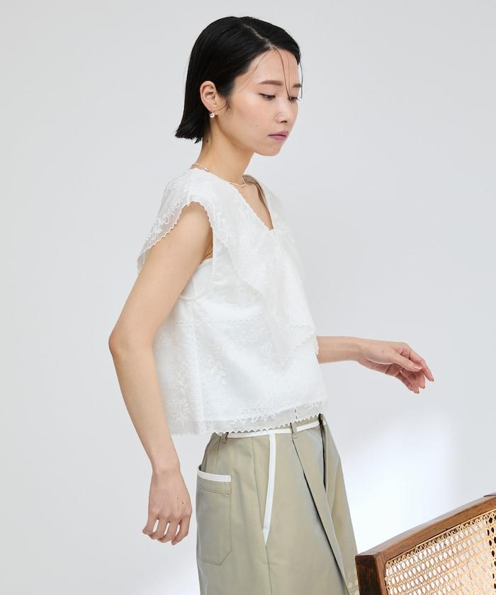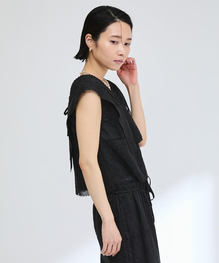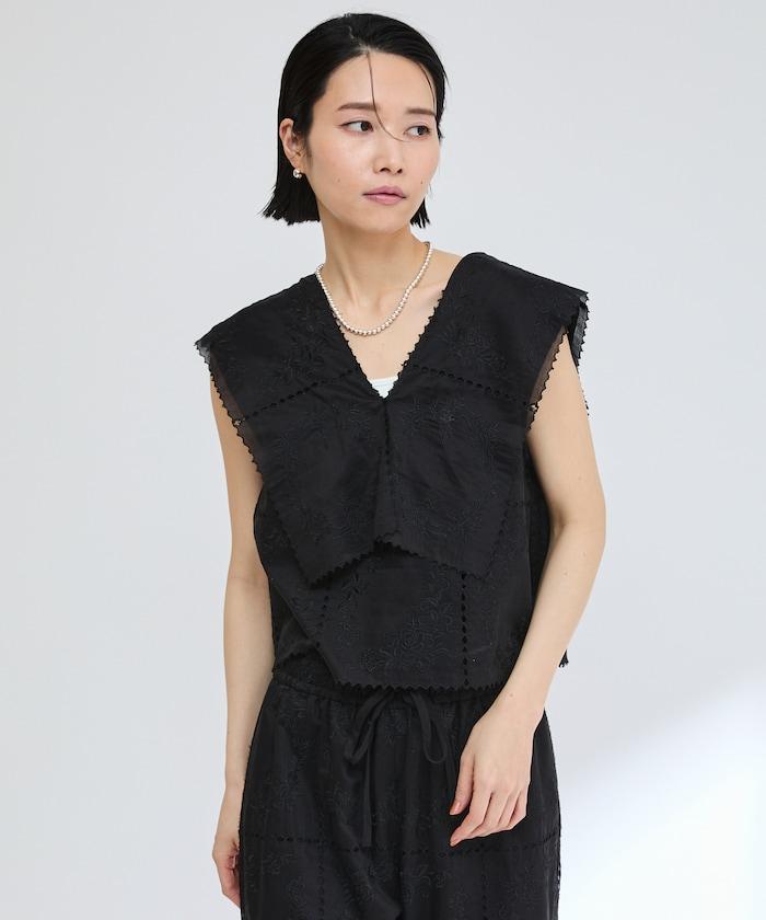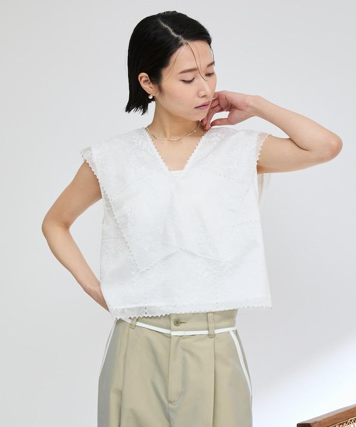 一款採用透視面料製成的奢華上衣,上面繡有獨具匠心的刺繡。