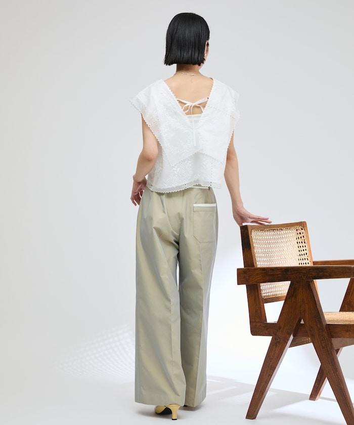 由於背部的絲帶規格設計,肩部不會下垂,而大 V 形開口則將肩部的美感展現得淋漓盡致。