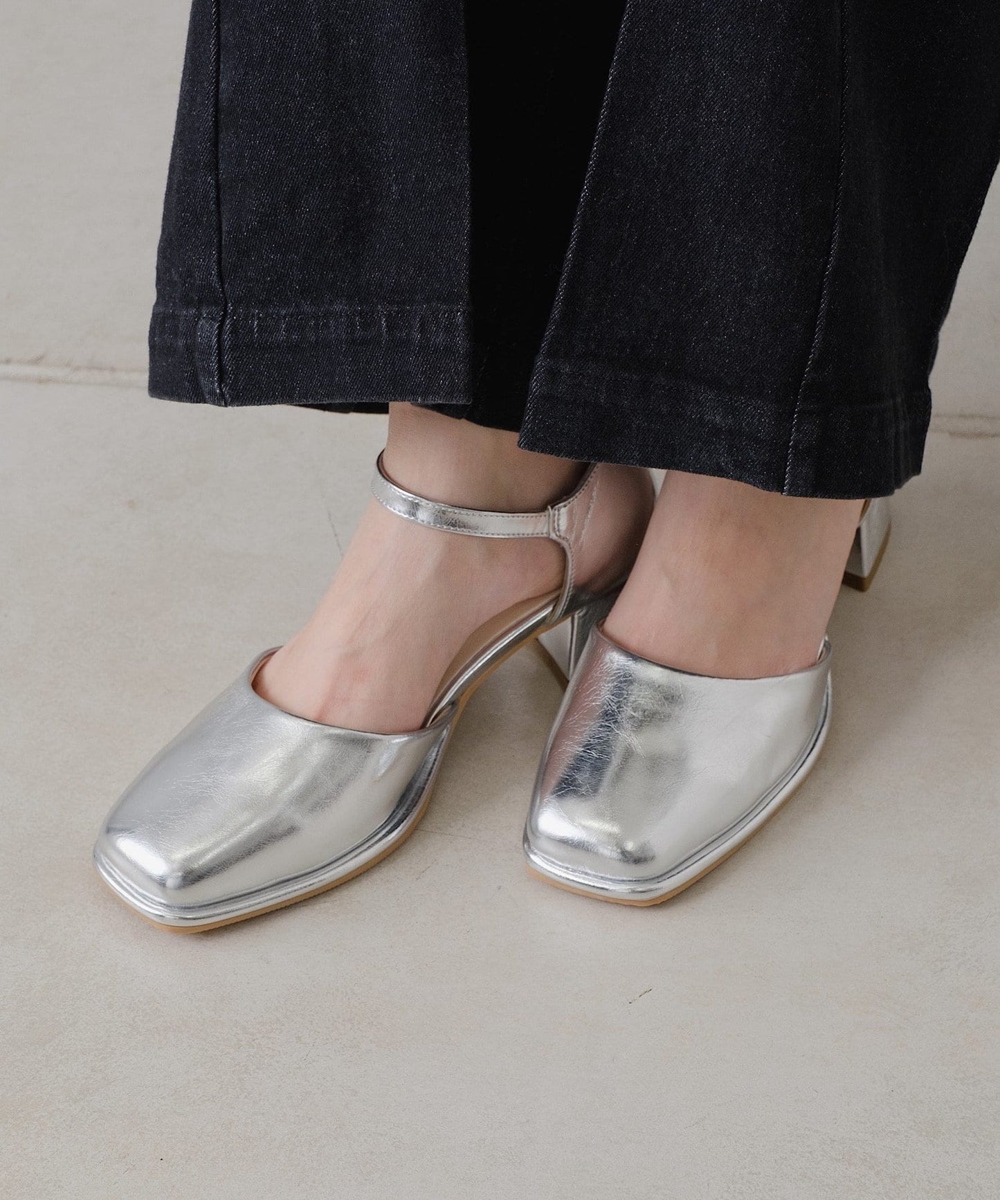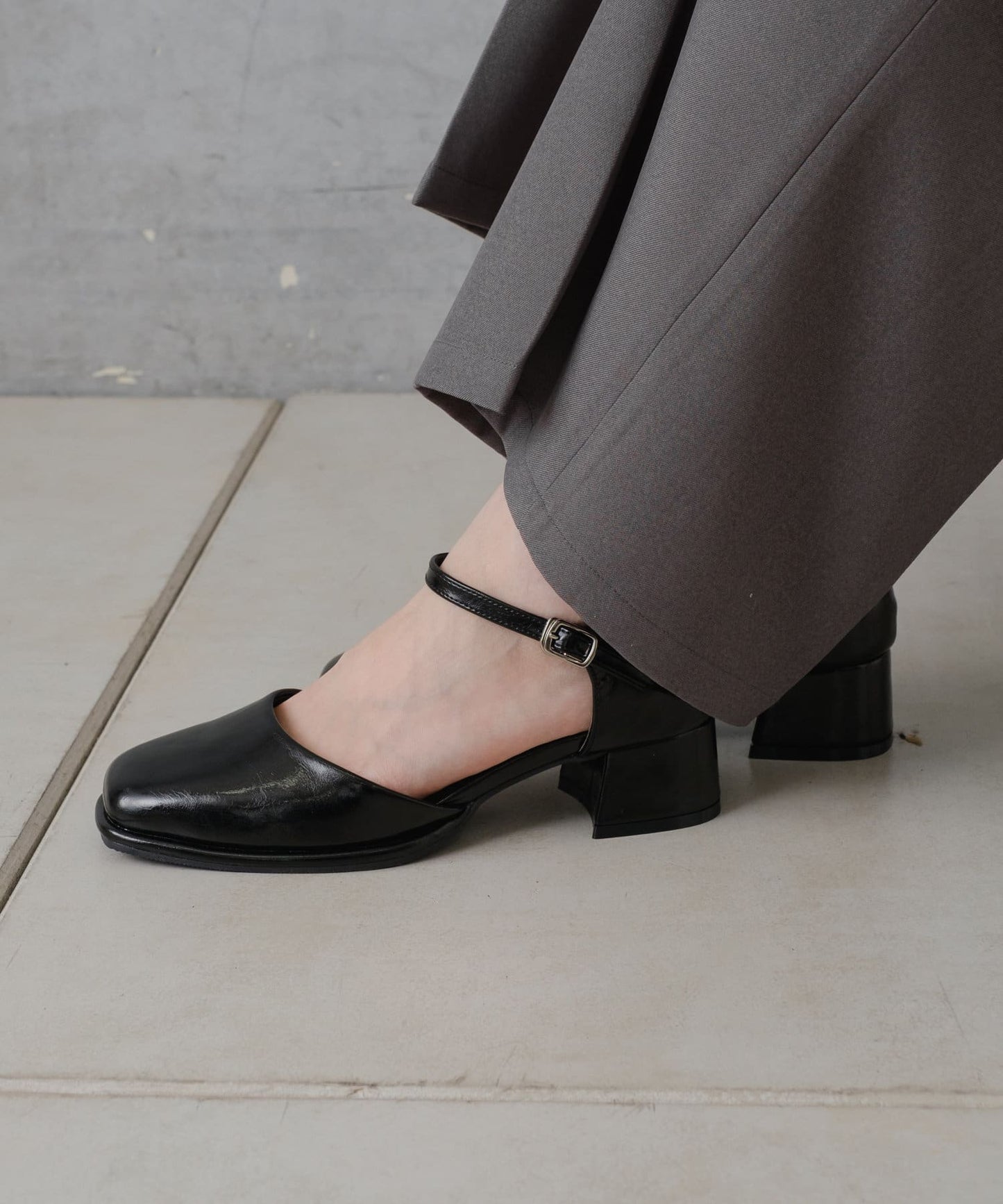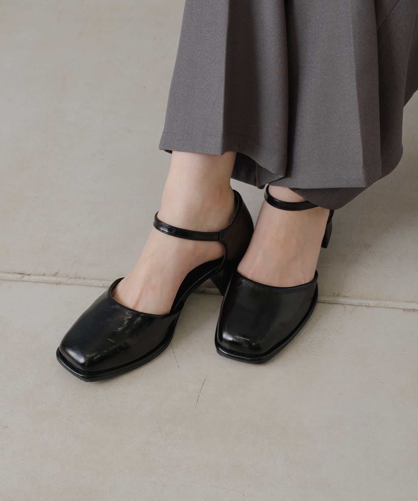 方形的鞋頭和纖細的綁帶使這款高跟鞋看起來非常高挑。